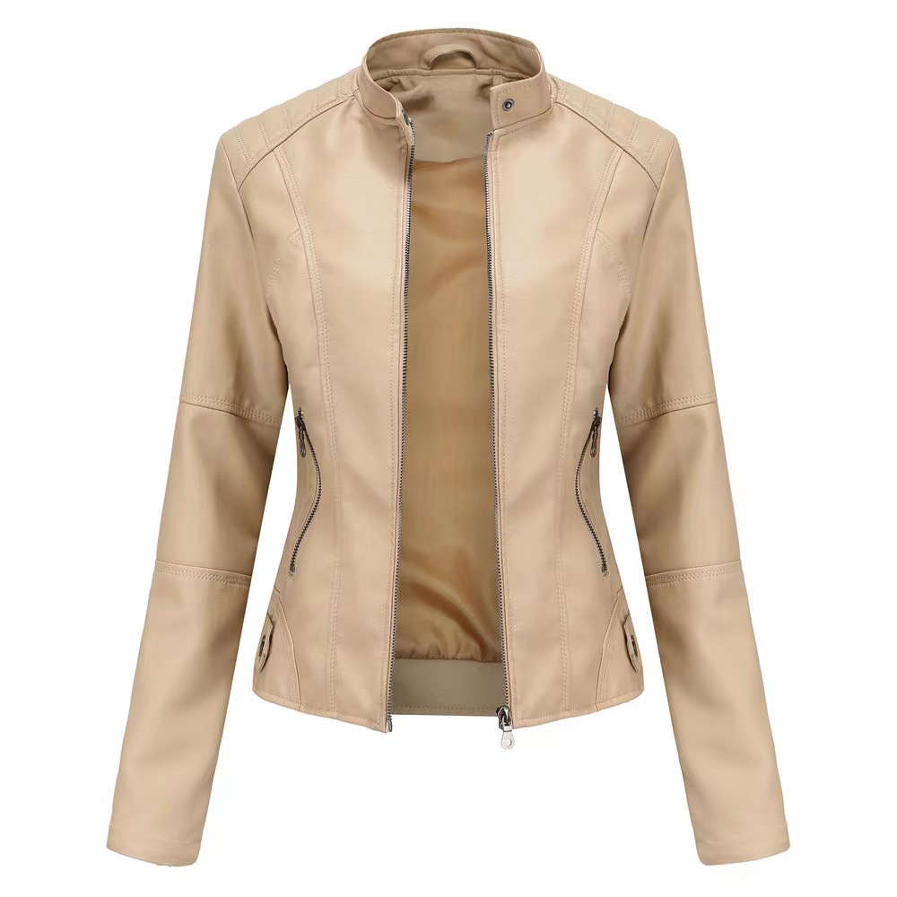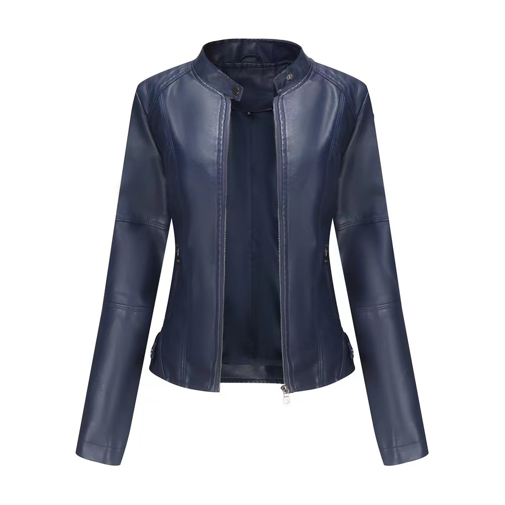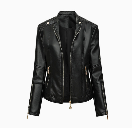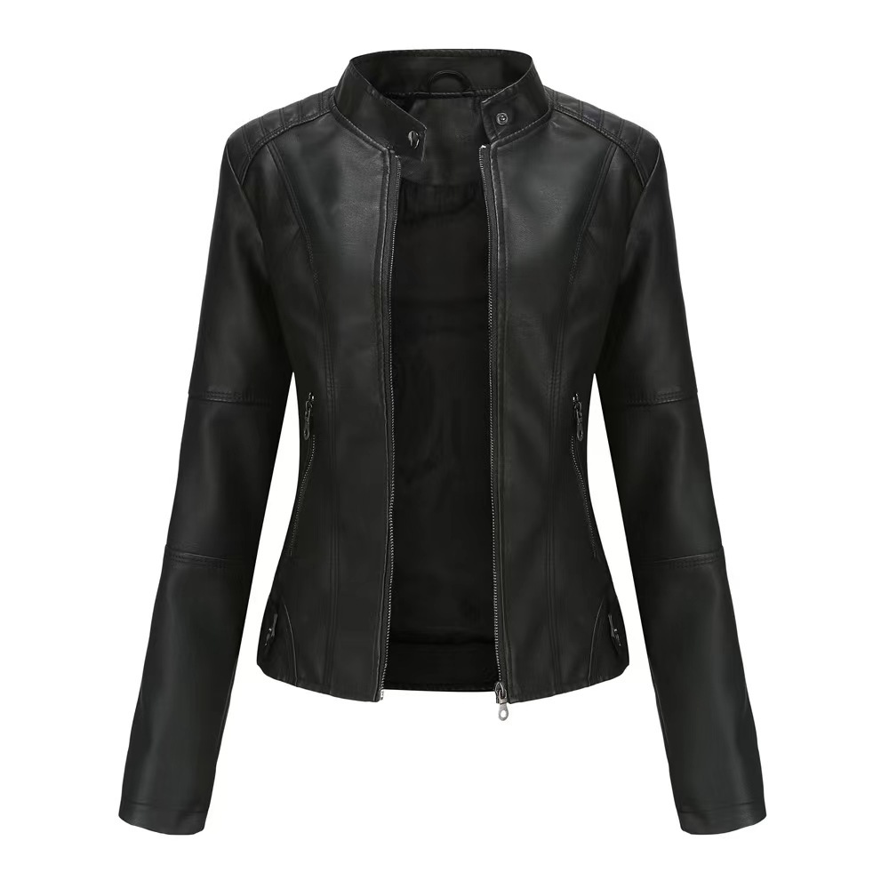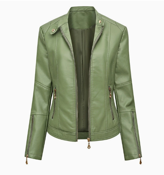 국경 독점 새로운 유럽과 미국 여성의 슬림 오토바이 얇은 봄과 가을 플러스 사이즈 스탠드 칼라 가죽 코트 재킷