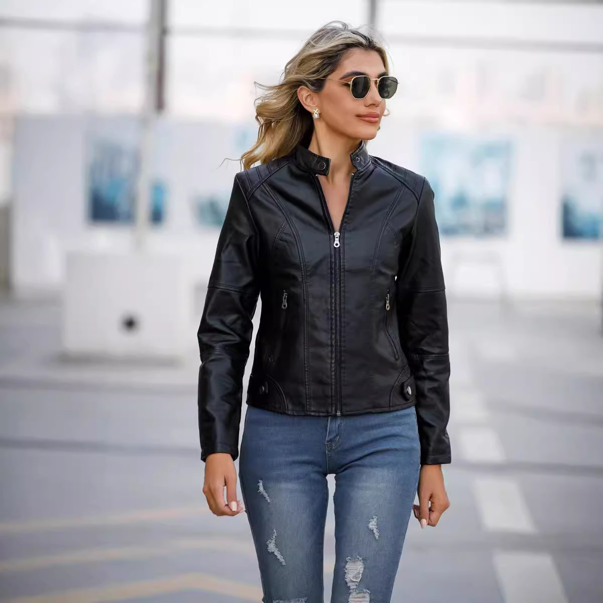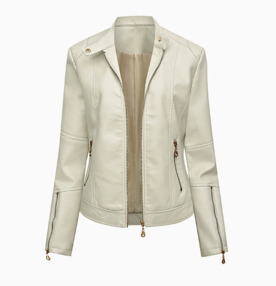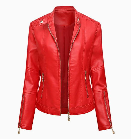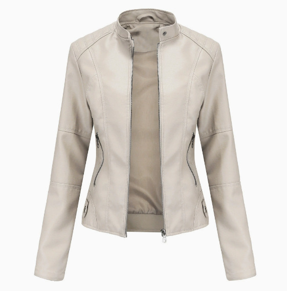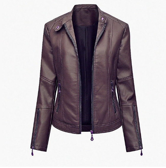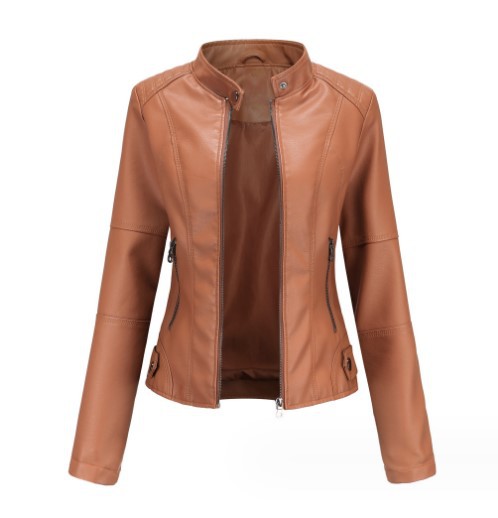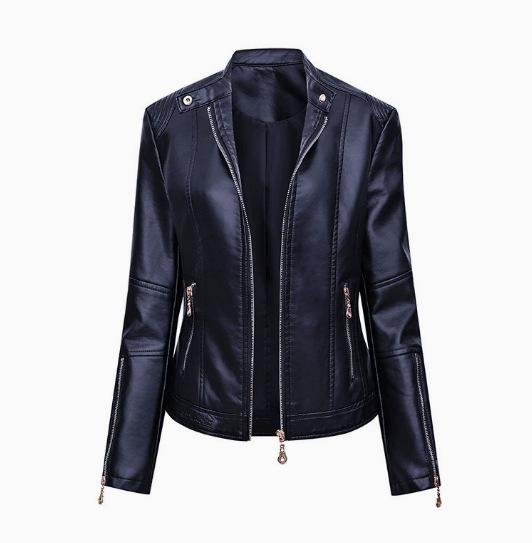 국경 독점 새로운 유럽과 미국 여성의 슬림 오토바이 얇은 봄과 가을 플러스 사이즈 스탠드 칼라 가죽 코트 재킷