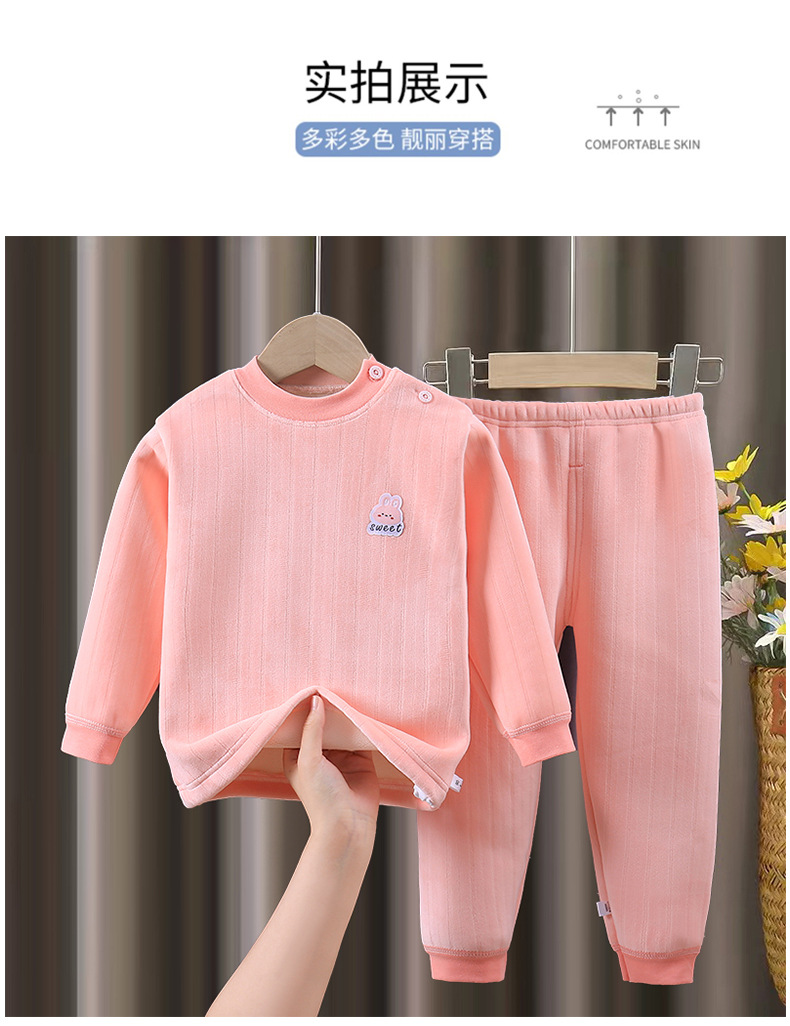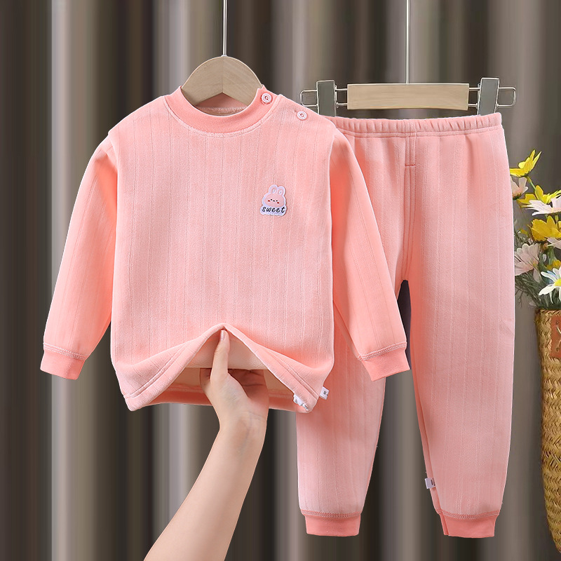 어린이 가을 겨울 보온 내의 세트, 벨벳 안감과 두꺼운 긴팔 상의와 하의, 남아 여아용 두꺼운 보온복