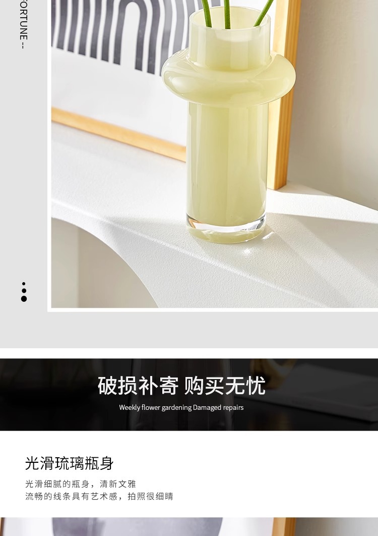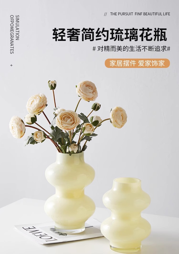 현대 간단한 크림 스타일 유리 중간 고대 고급 감각 꽃병 가정용 수경 꽃 배열 스타일의 고가 장식품스토어 가기