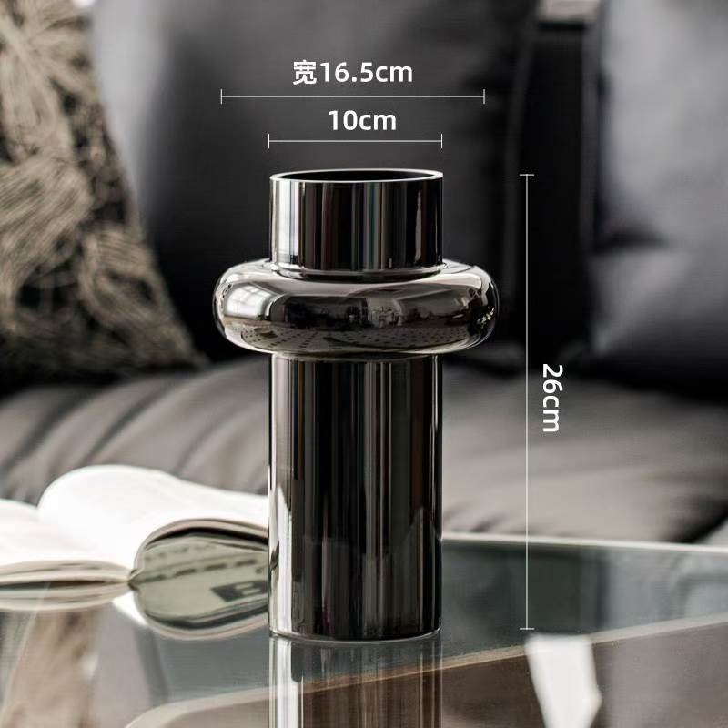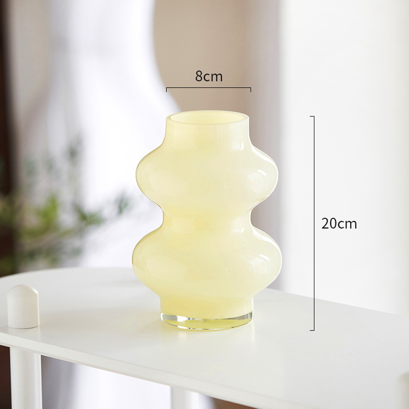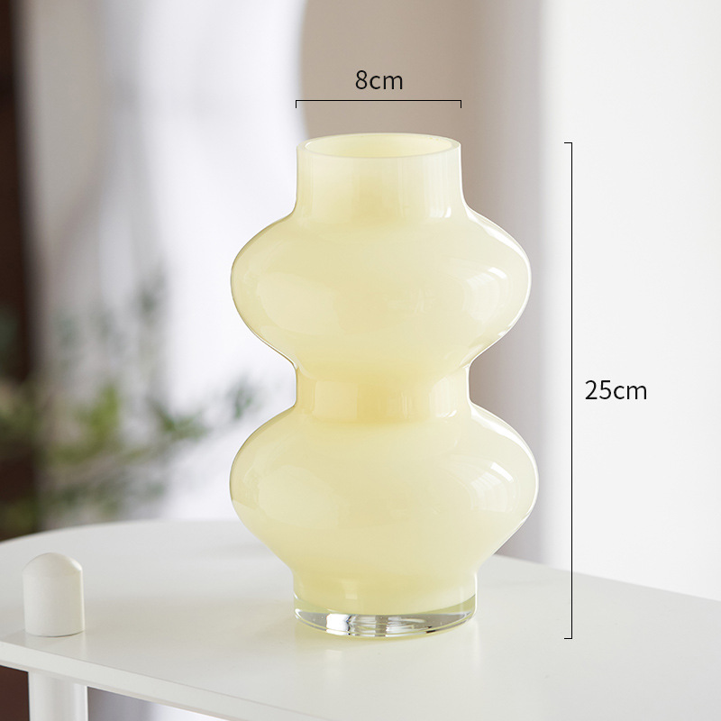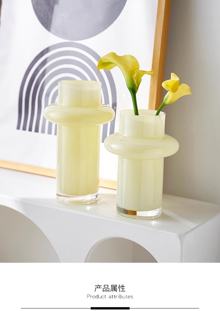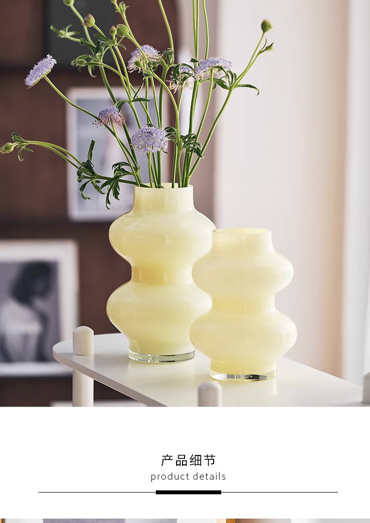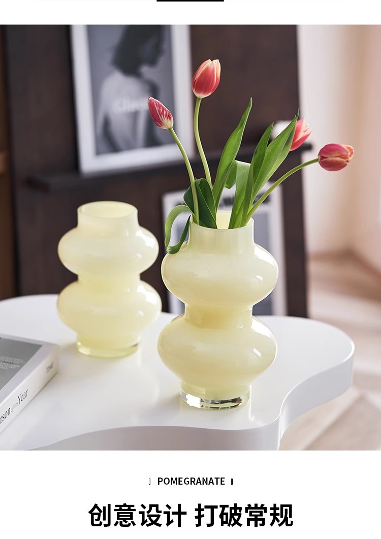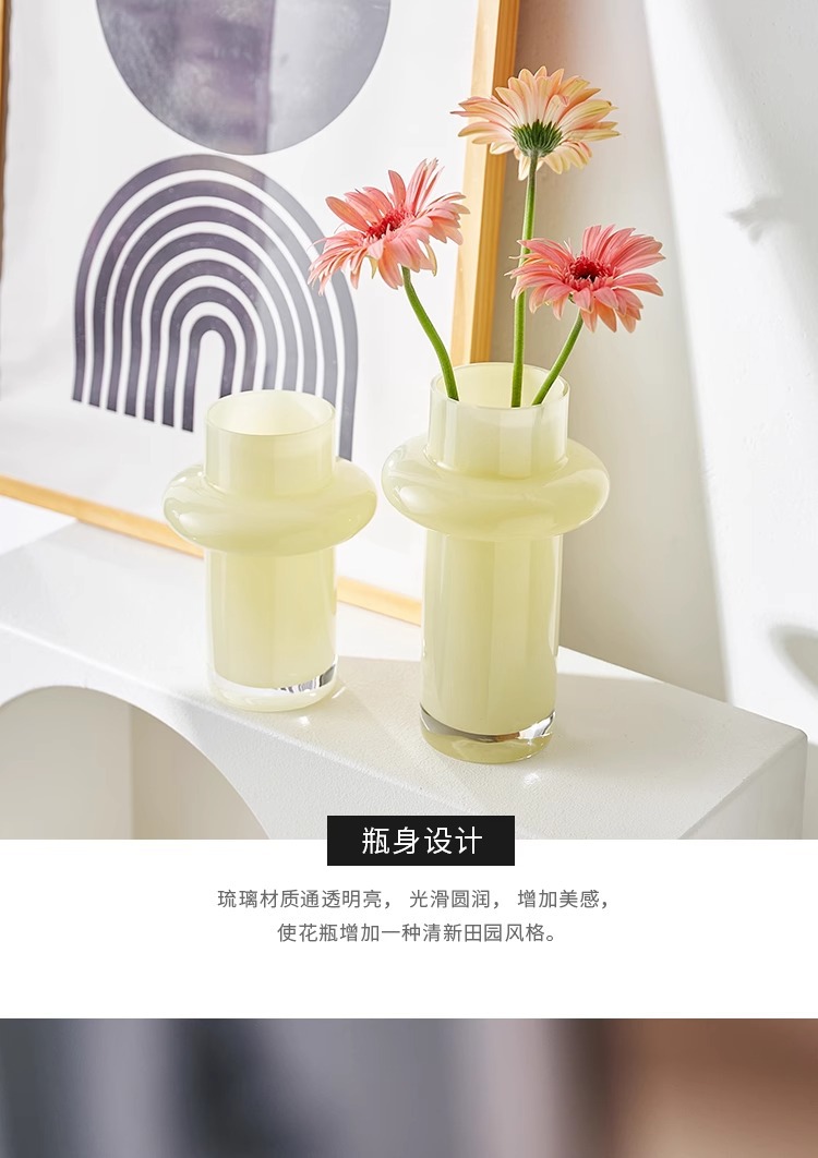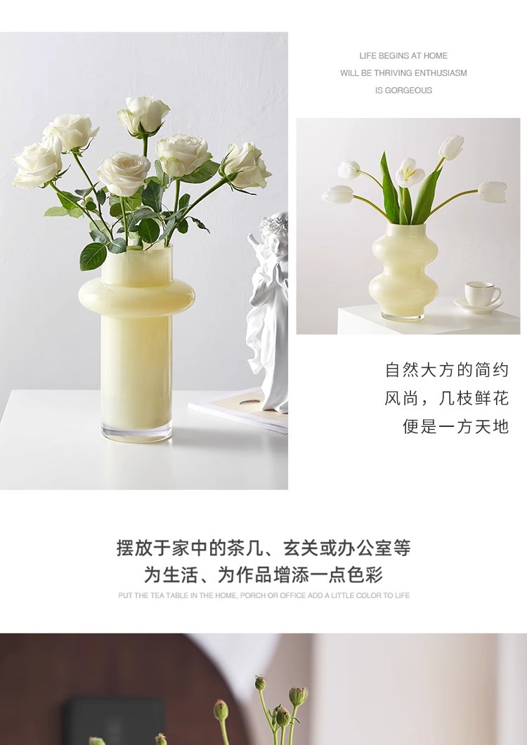 현대 간단한 크림 스타일 유리 중간 고대 고급 감각 꽃병 가정용 수경 꽃 배열 스타일의 고가 장식품