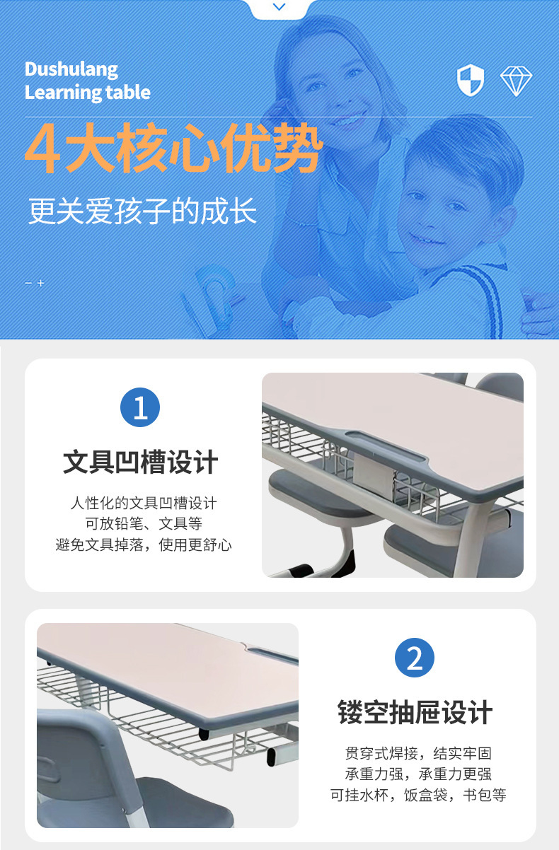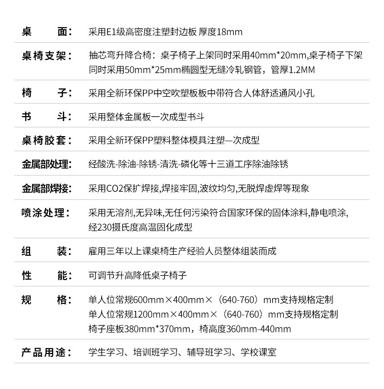 공장 맞춤형 코어 당김 베이 고정 이중 당김 없는 책상과 의자 벼락치기 학교 책상과 의자 학생 책상과 의자