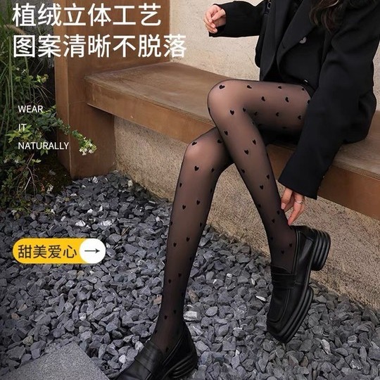블랙 실크 스타킹 여자의 가을과 겨울 기모 가벼운 다리 유물 웨이브 포인트 사랑 레깅스 검은 피부 가짜 고기 팬티 스타킹 인터넷 인기