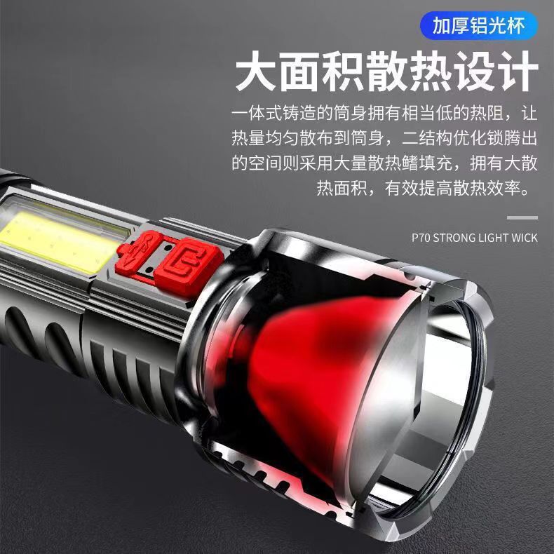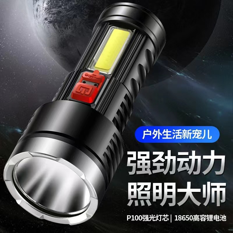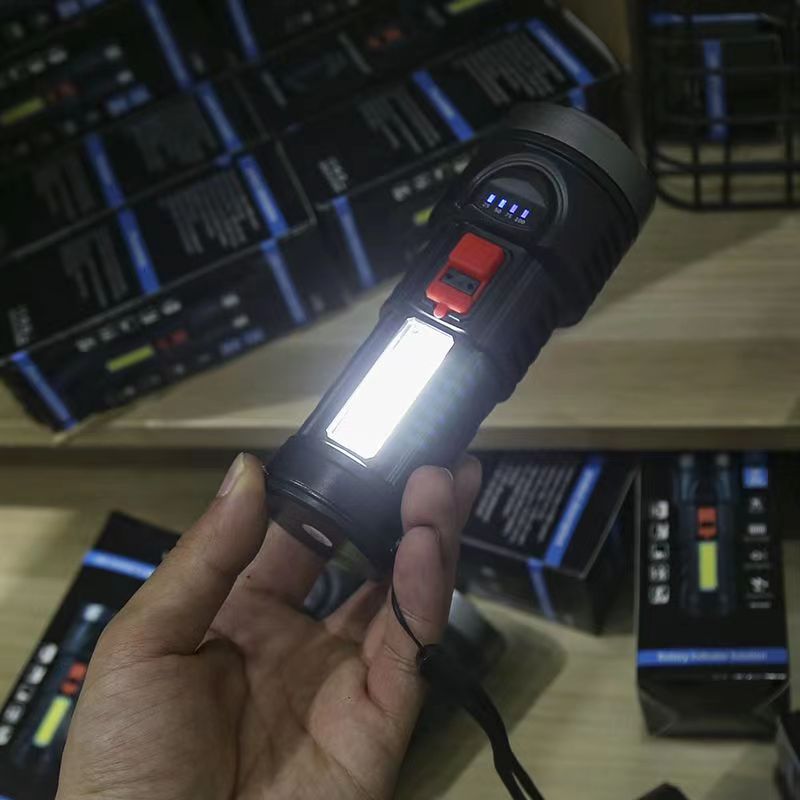 손전등 다기능 충전식 휴대용 가정용 비상 내구성 야외 COB 작업 램프 작은 손전등