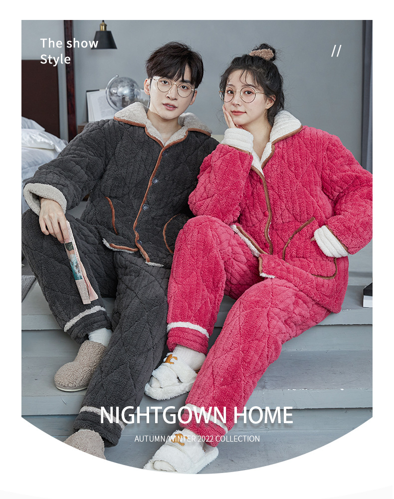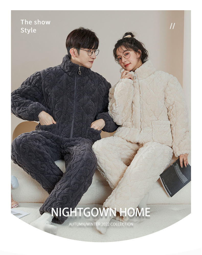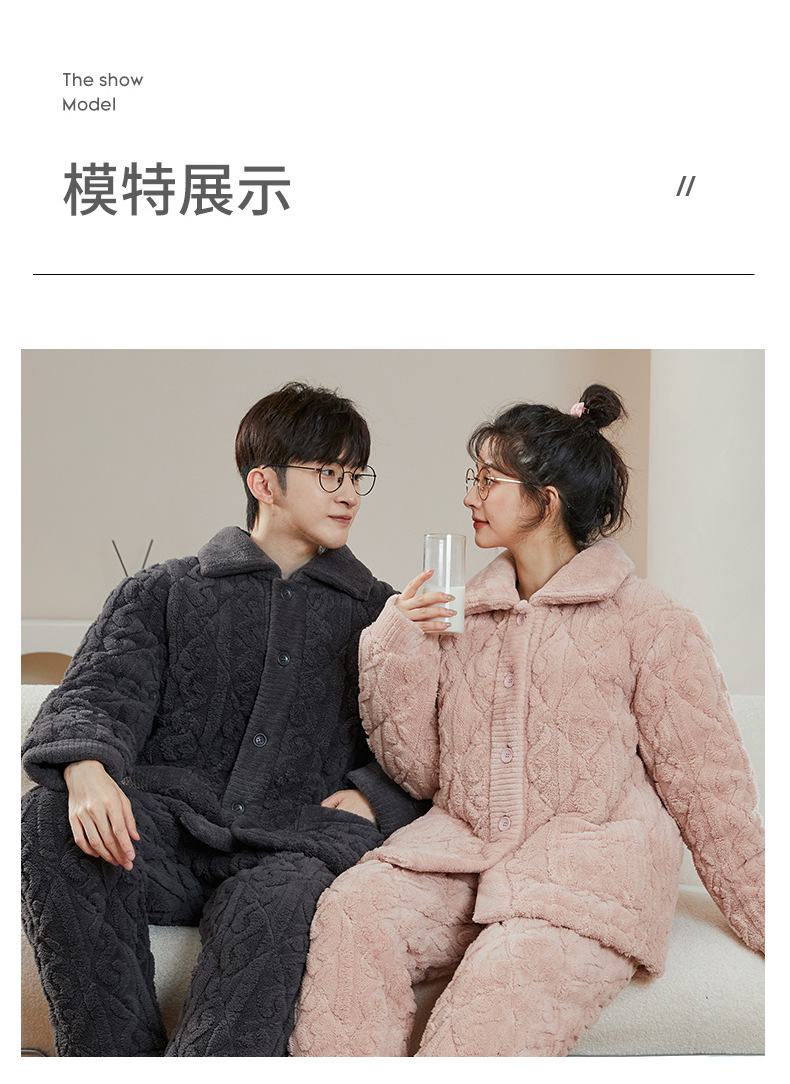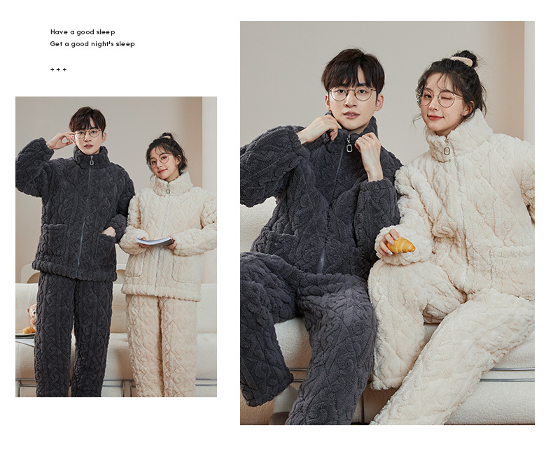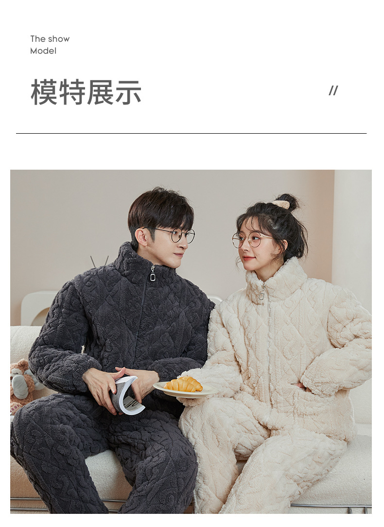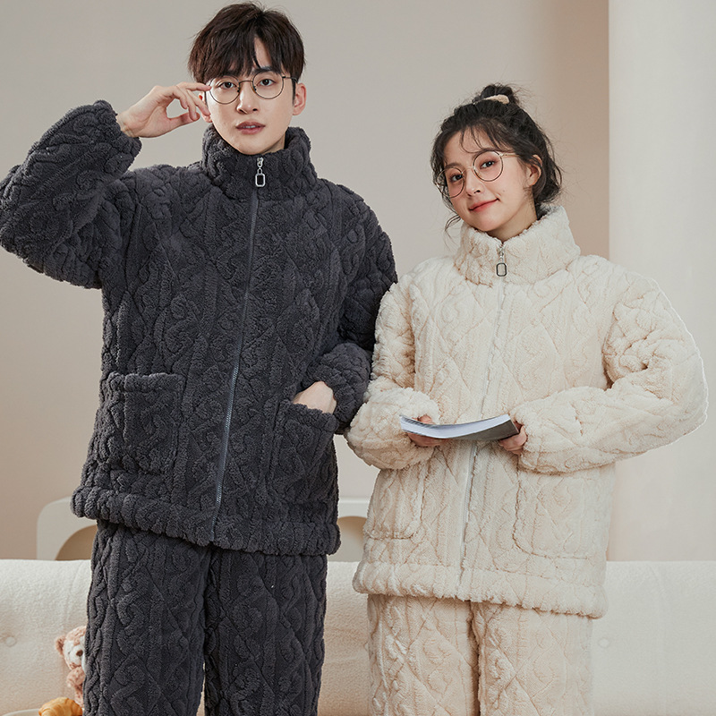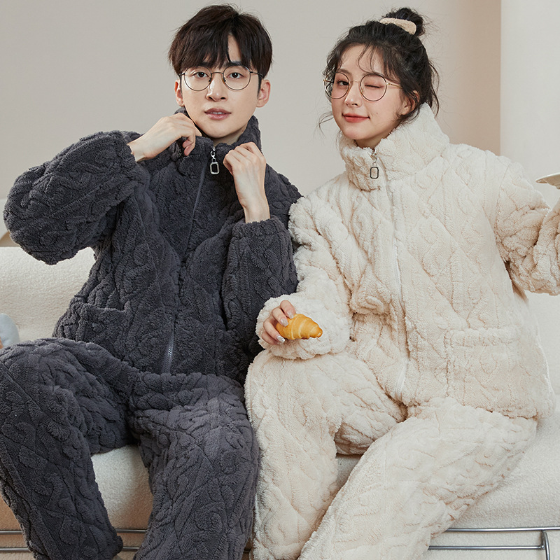 세트 잠옷 여자와 남자의 가을과 겨울 플란넬 3 층 두꺼운 칼라 지퍼 산호 양털 커플 가정 의류스토어 가기