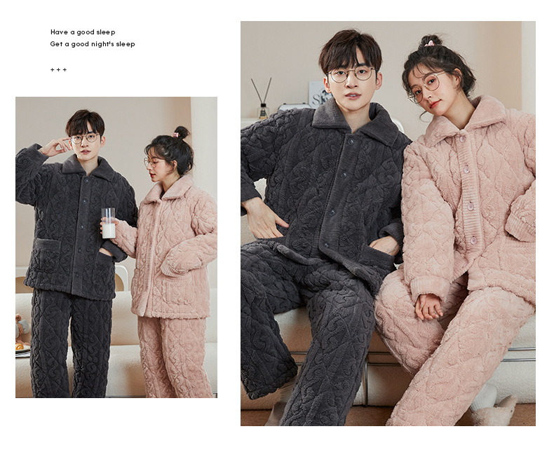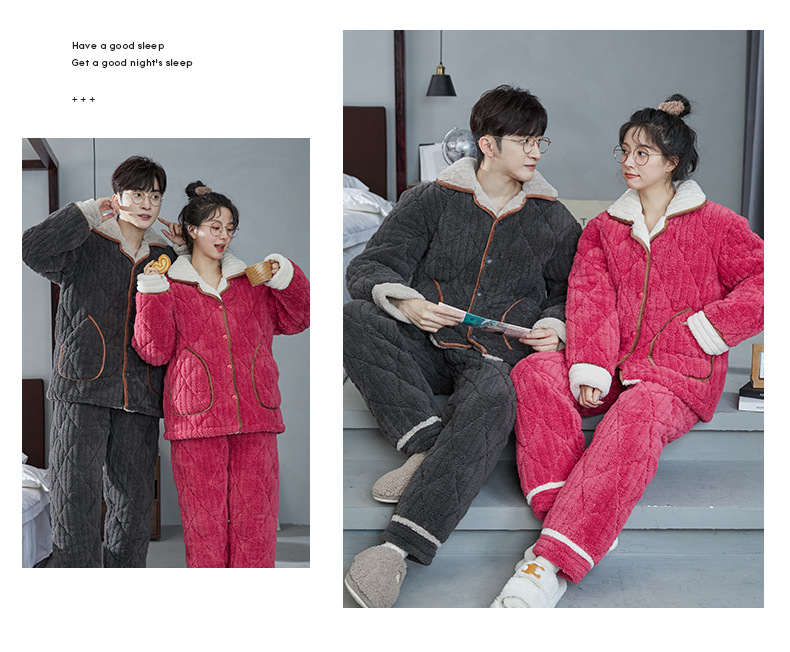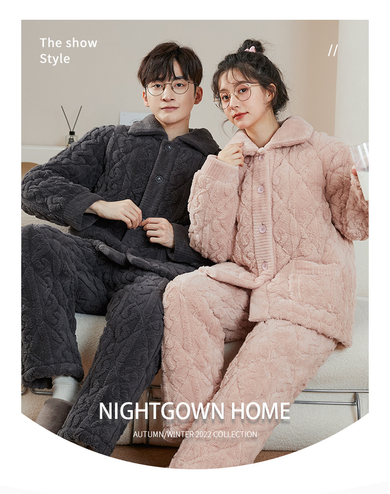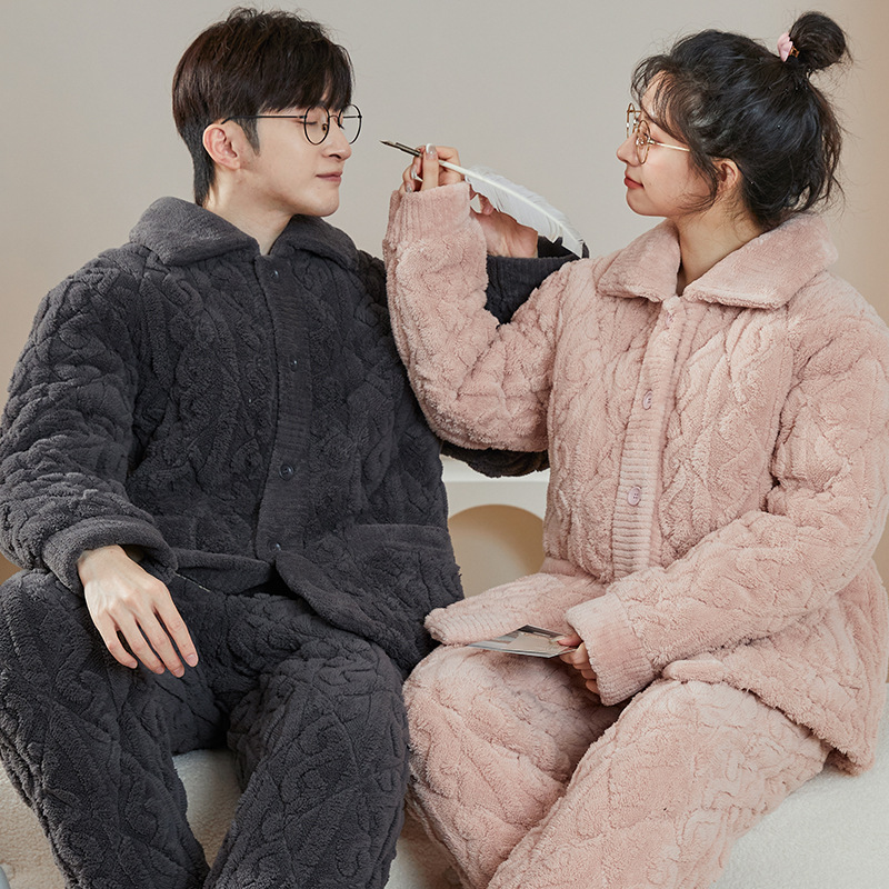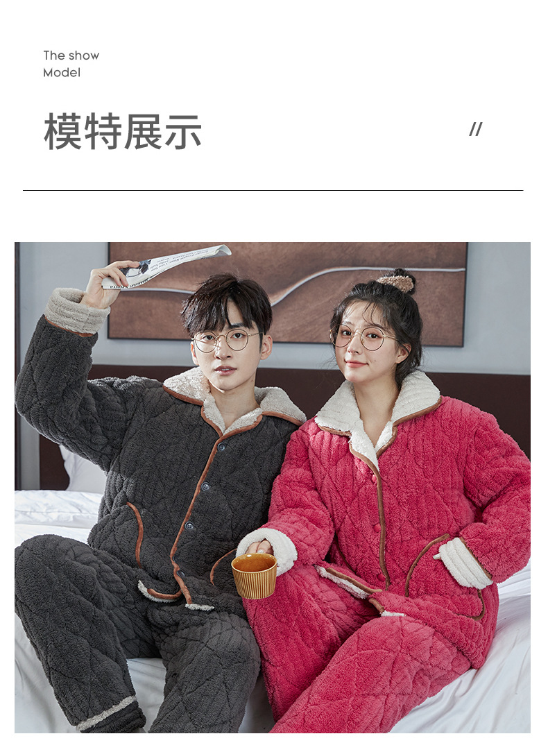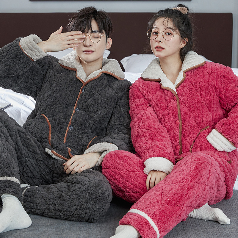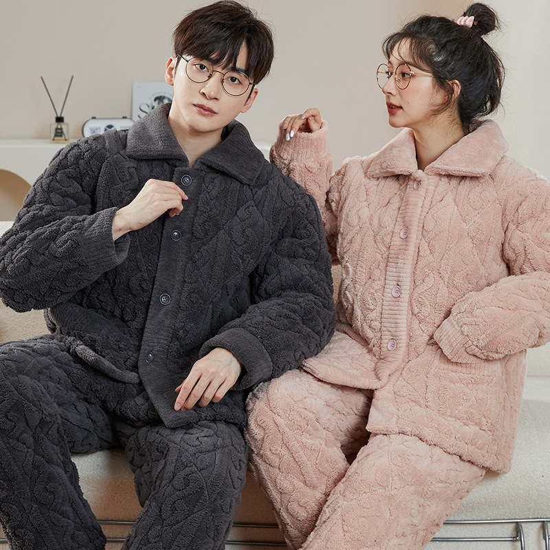 세트 잠옷 여자와 남자의 가을과 겨울 플란넬 3 층 두꺼운 칼라 지퍼 산호 양털 커플 가정 의류스토어 가기