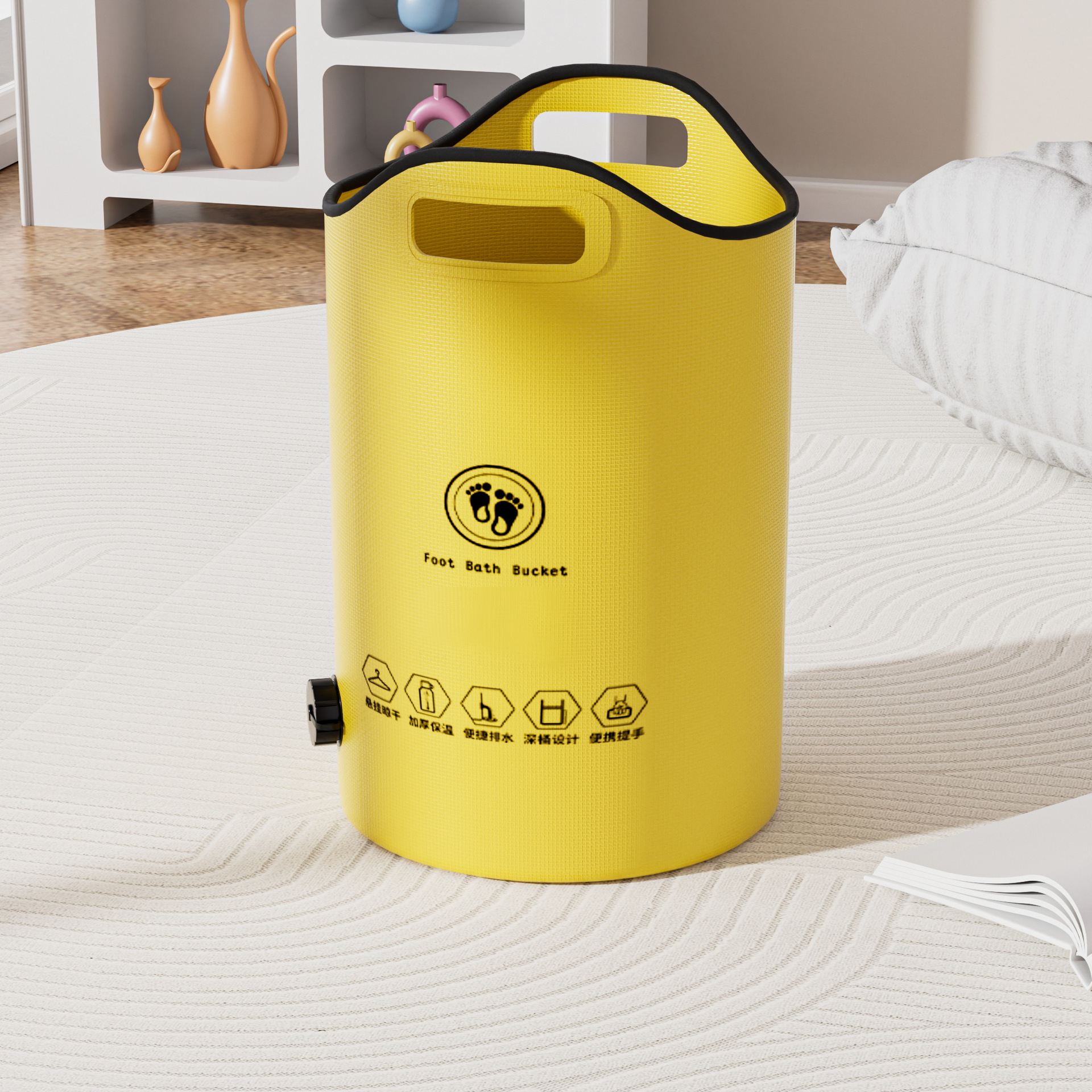 홈 여행 접이식 높이 난방 발 양동이 뚜껑 알루미늄 필름 발 양동이 휴대용 다기능 발 양동이