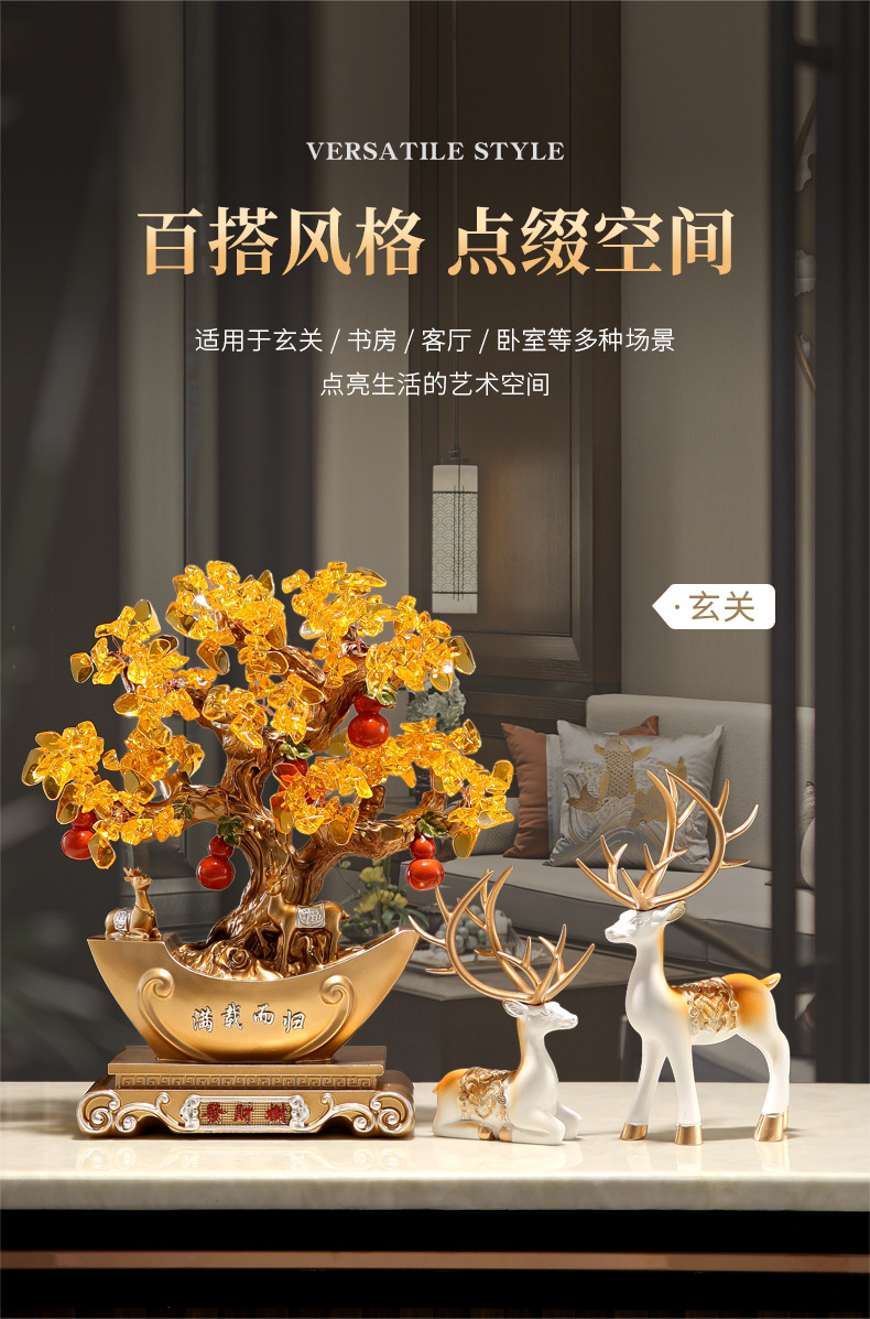 전체 부하로 반환 현금 나무 사슴 장식품 오프닝 선물 크리스탈 포춘 트리 홈 거실 와인 캐비닛 장식스토어 가기