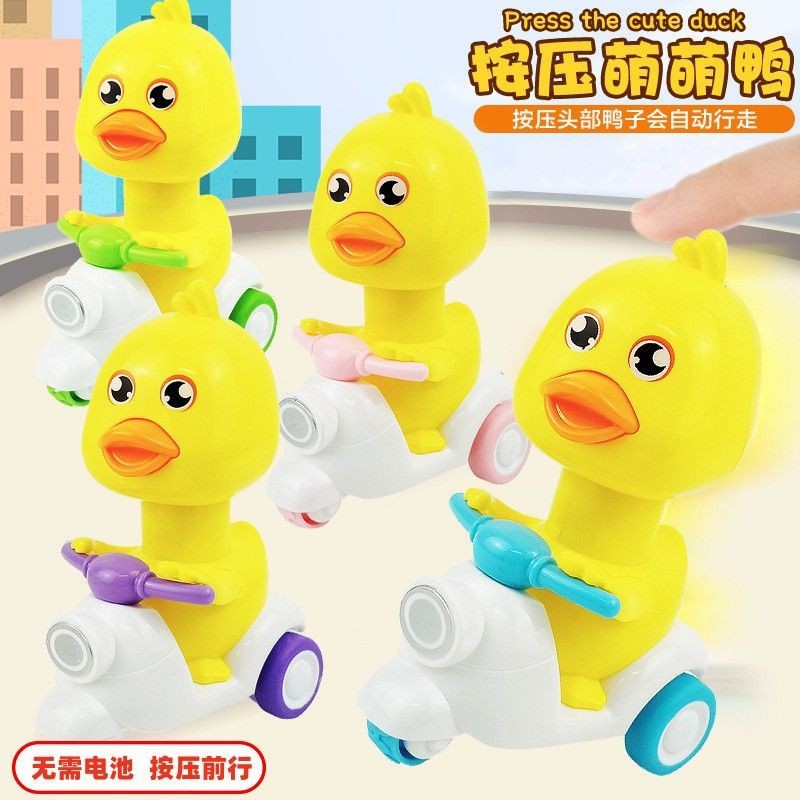 틱톡에서 본 것처럼, 누르면 백으로 돌아가는 인기 있는 작은 오리 장난감 자동차, 만화 캐릭터의 귀여운 오리 오토바이, 어린이 장난감스토어 가기