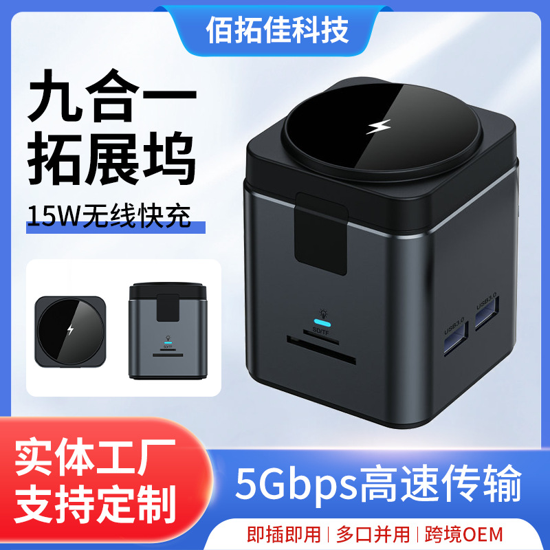 확장 도크 Typec 도킹 스테이션 usb15W 자기 무선 충전기 HUB 외부 휴대 전화 컴퓨터 스플리터