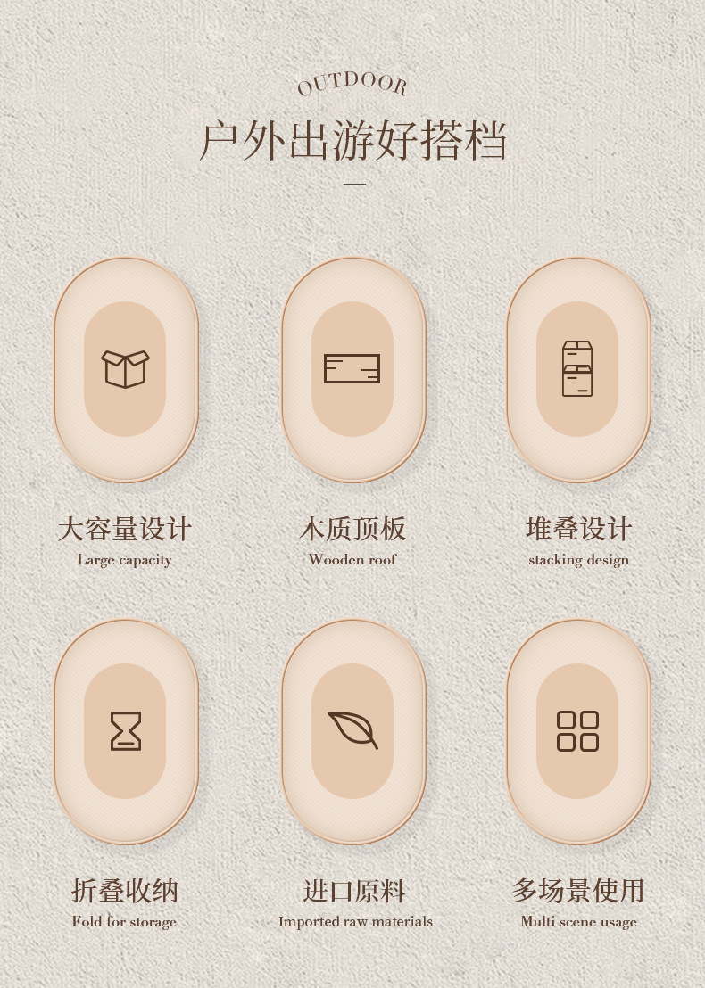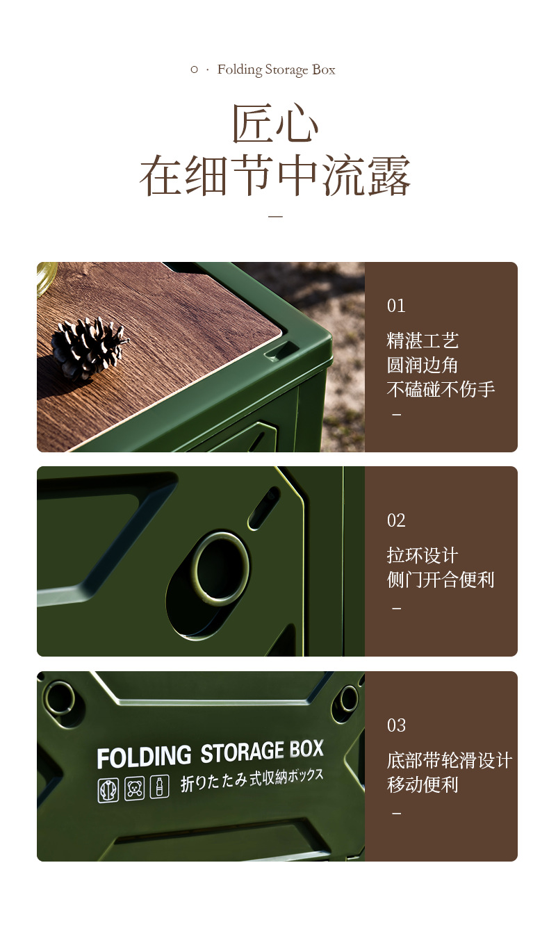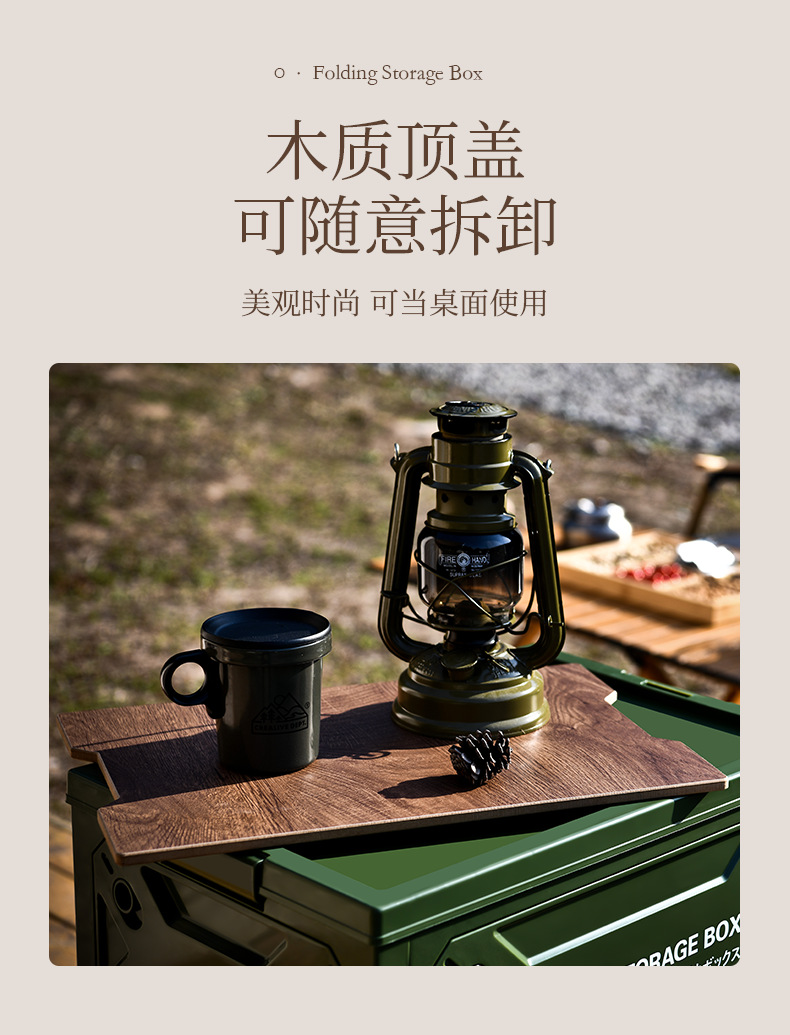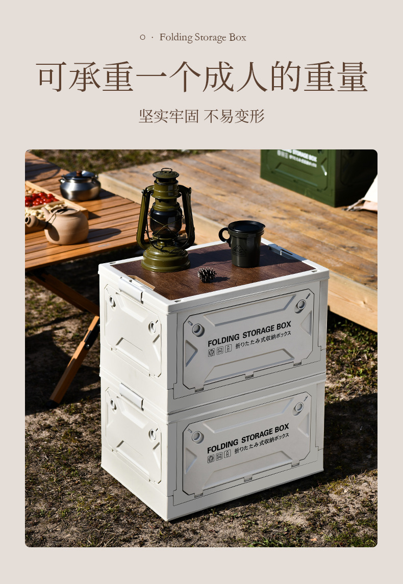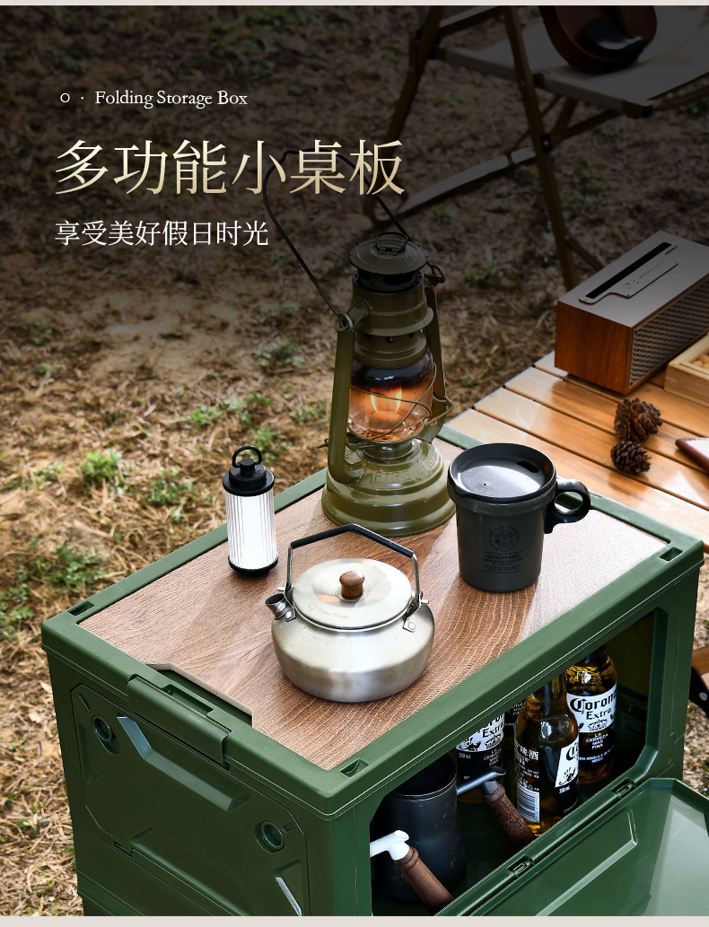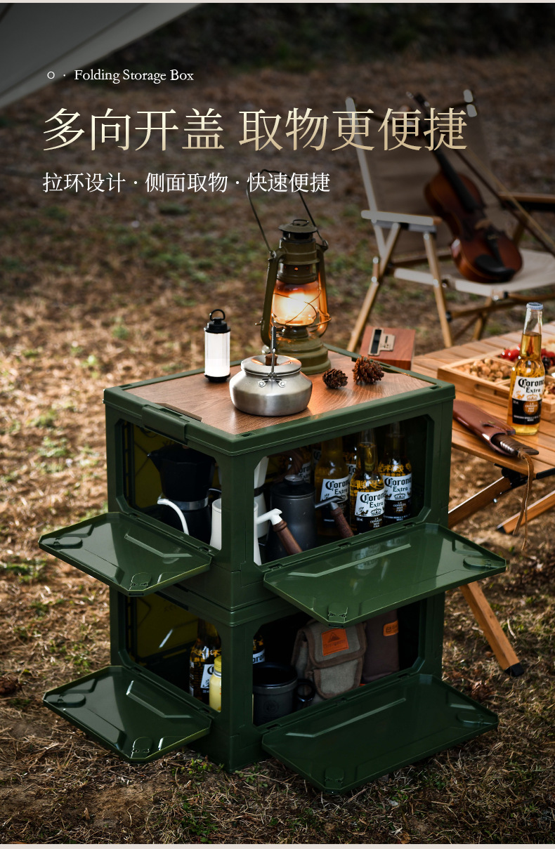 저장 상자 야외 접이식 캠핑 상자 56 리터 큰 용량 5 도어 나무 뚜껑 마감 상자 자동차 저장 상자