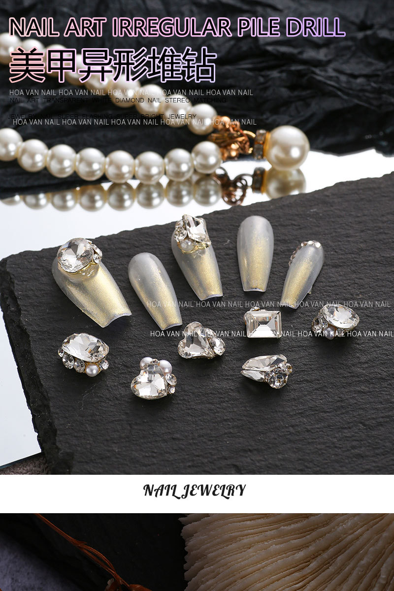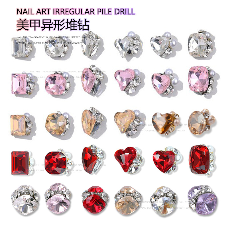 인터넷 축하 폭발적인 럭셔리 네일 아트 쥬얼리 스택 드릴 2023 새로운 완제품 스택 드릴 슈퍼 플래시 도끼 사랑 네일 다이아몬드