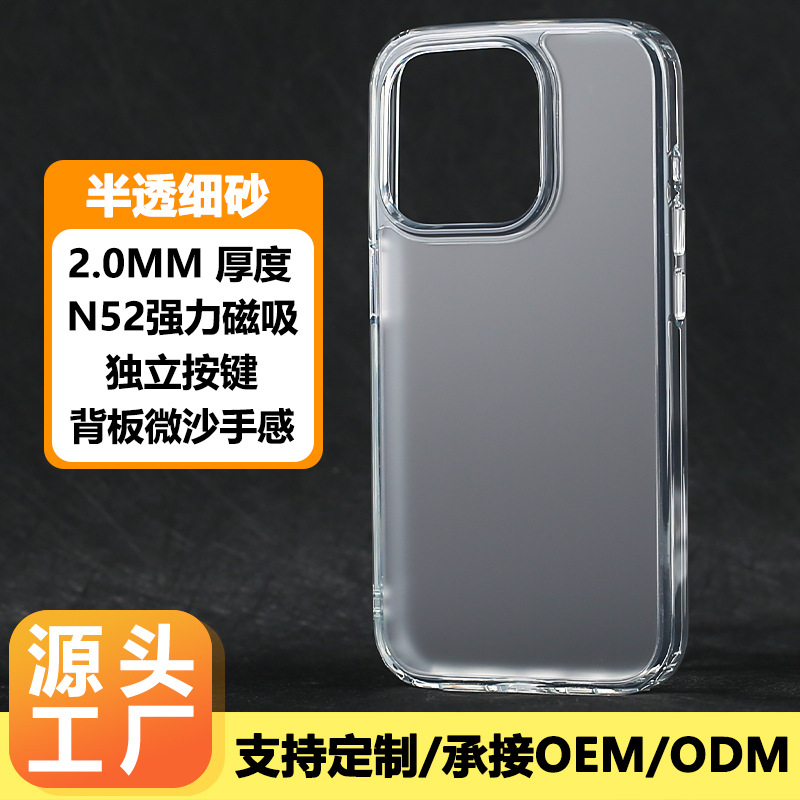 IPhone에 적합 15 투명 휴대 전화 케이스 두꺼운 강한 자기 흡수 젖빛 투인원 소프트 에지 하드 바닥 14 보호 케이스스토어 가기