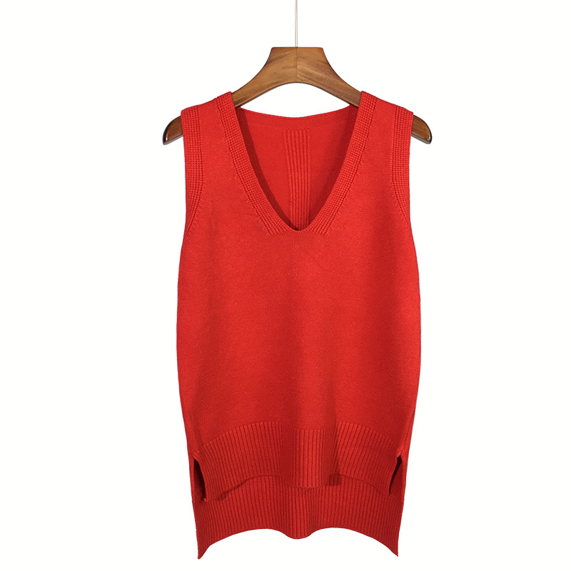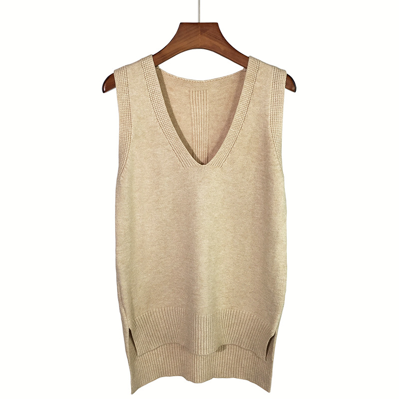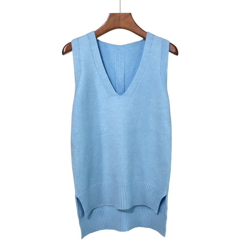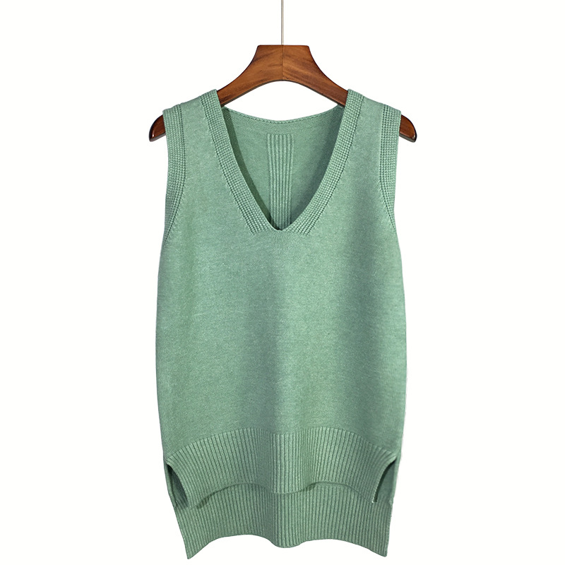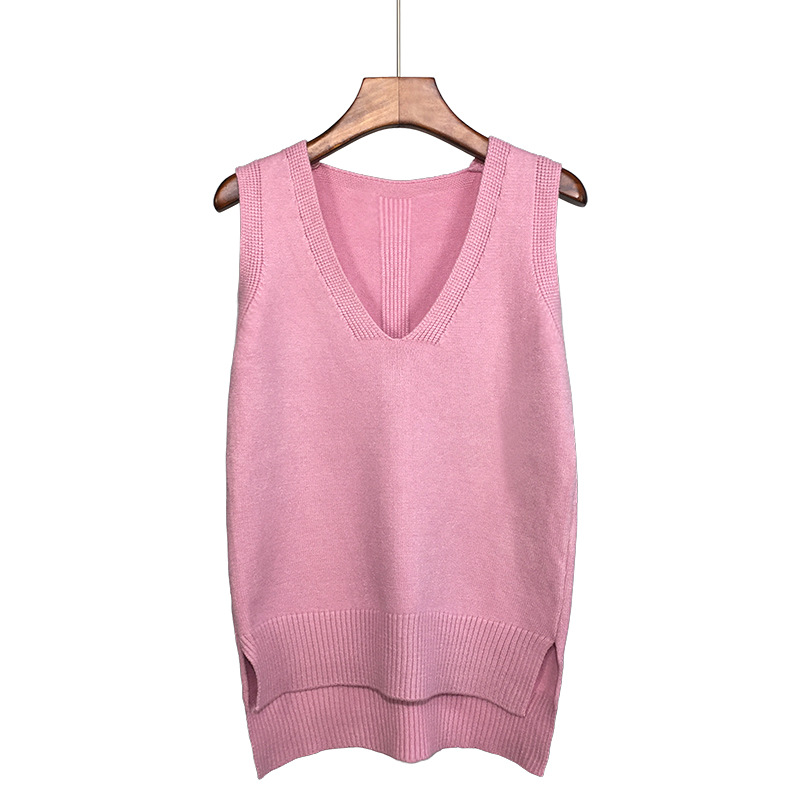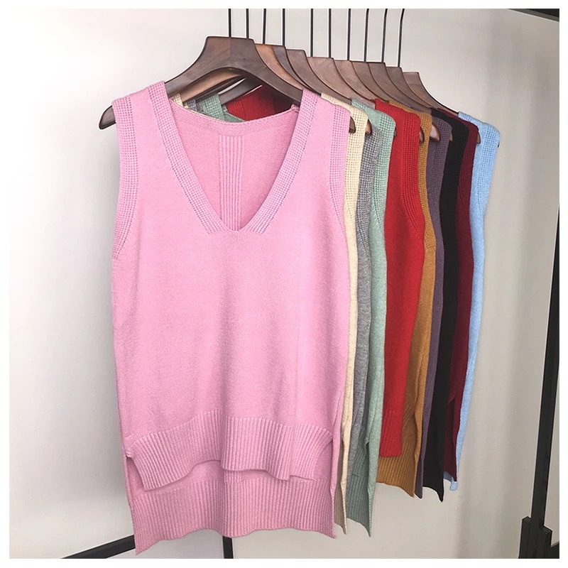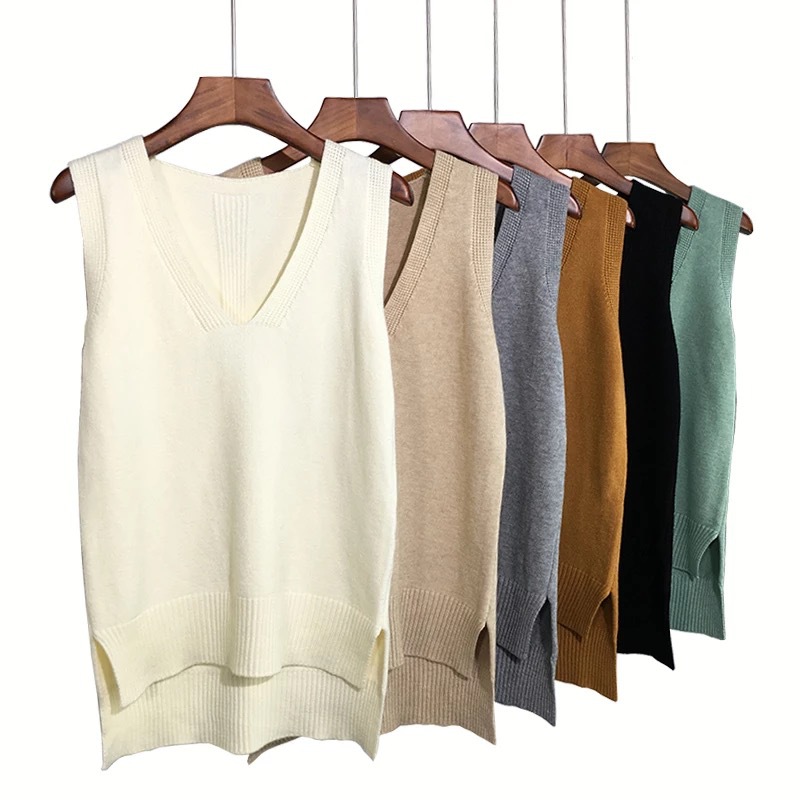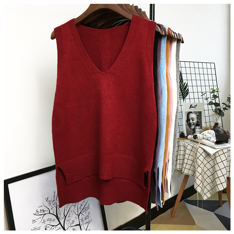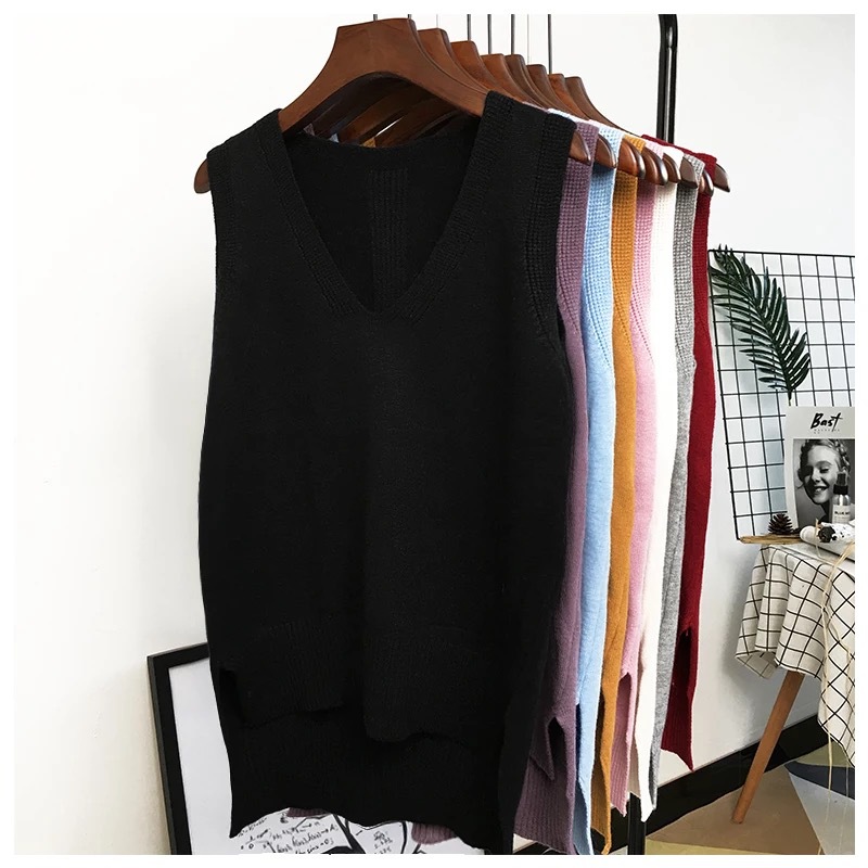 한국 스타일 V-넥 플러스 사이즈 니트 조끼 여자의 모든 매치 느슨한 스웨터 조끼 대학 스타일 풀오버 민소매 베이스스토어 가기