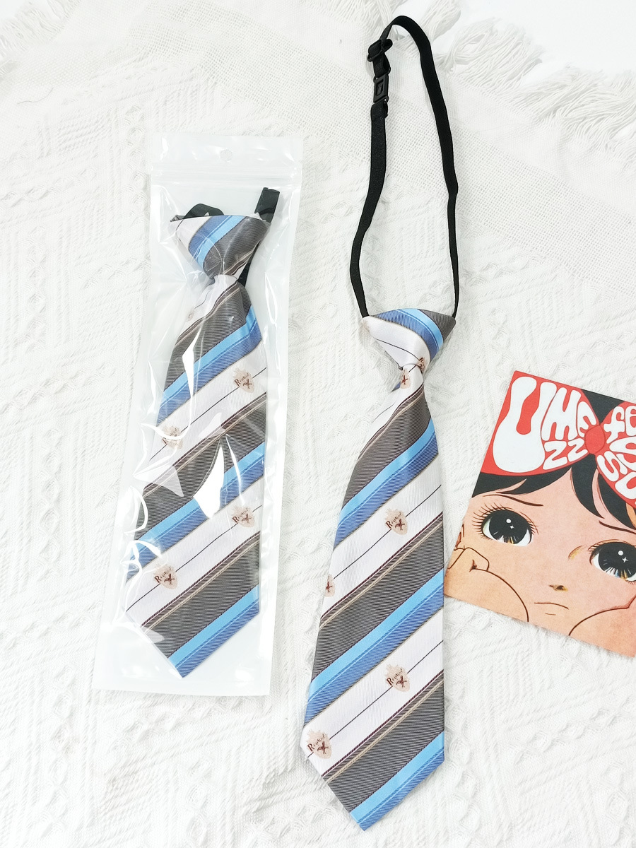 아카데미 스타일 넥타이 여성 짧은 학생의 작은 액세서리 블루 화이트 배지 노 히트 조정 가능한 폴리에스터 자카드 고밀도스토어 가기