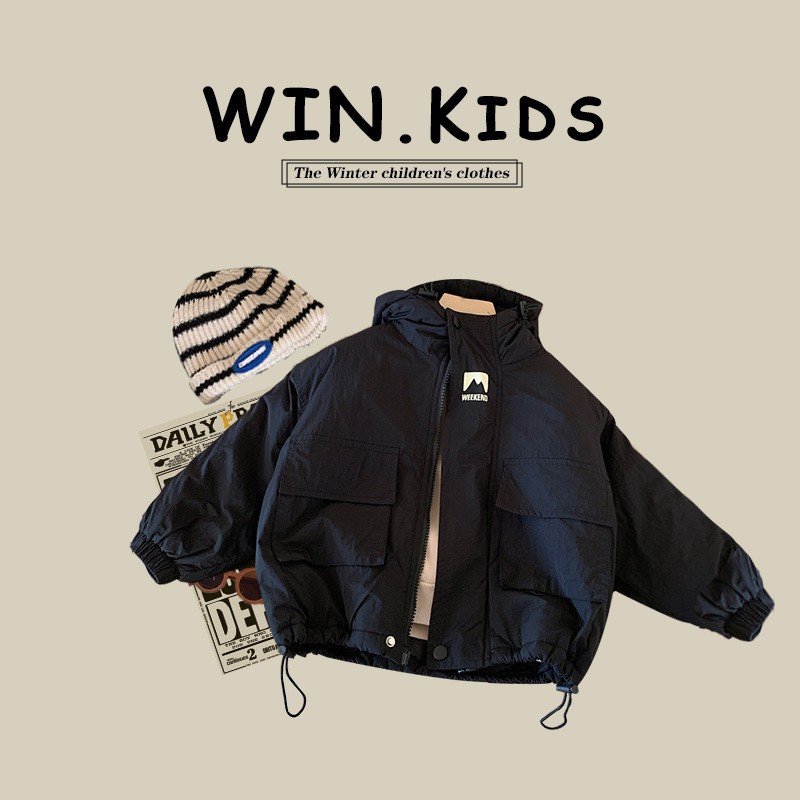 어린이 가을 겨울 누빔 재킷 2025 신상 한국 스타일 남아 후드 윈드브레이커 아기용 플리스 안감 재킷스토어 가기