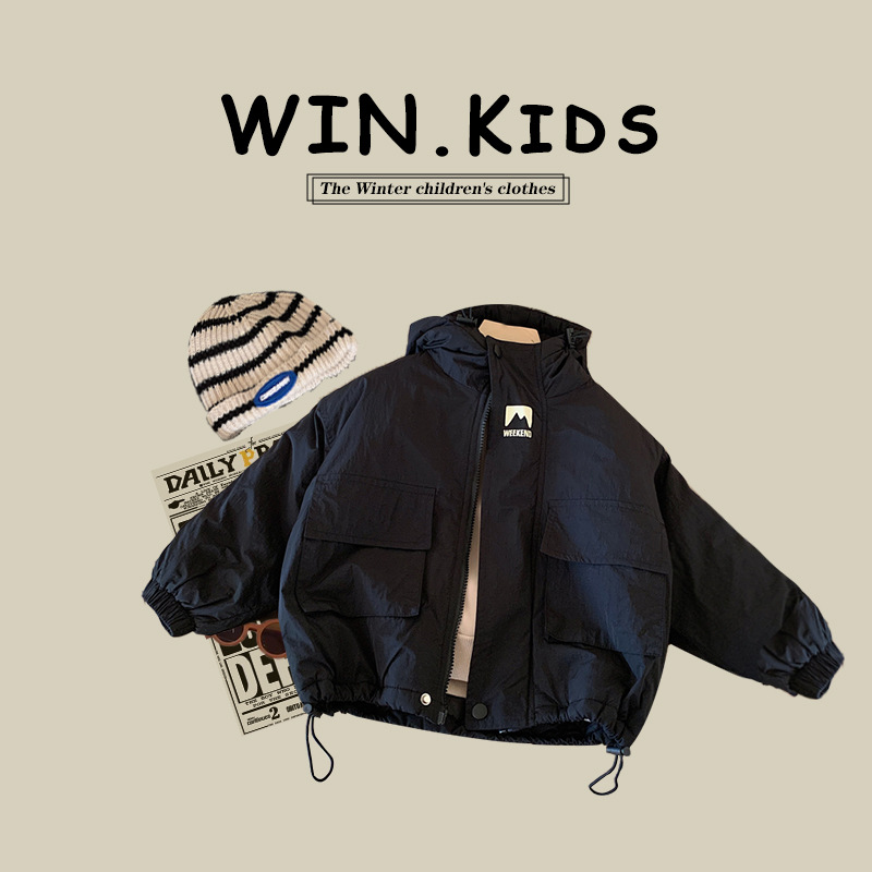 어린이 가을 겨울 누빔 재킷 2025 신상 한국 스타일 남아 후드 윈드브레이커 아기 작업복 재킷