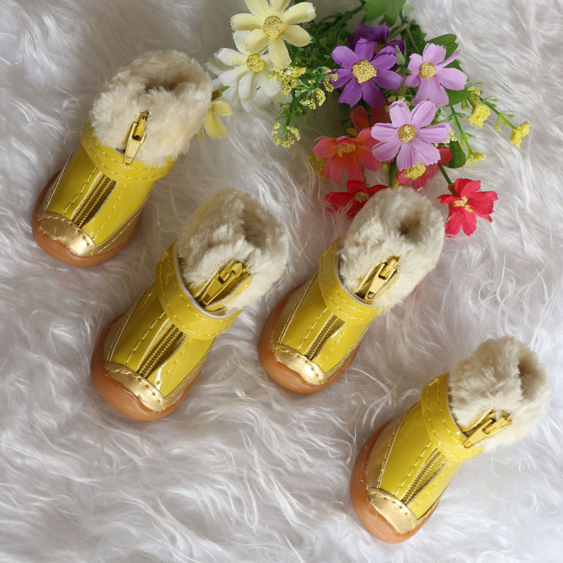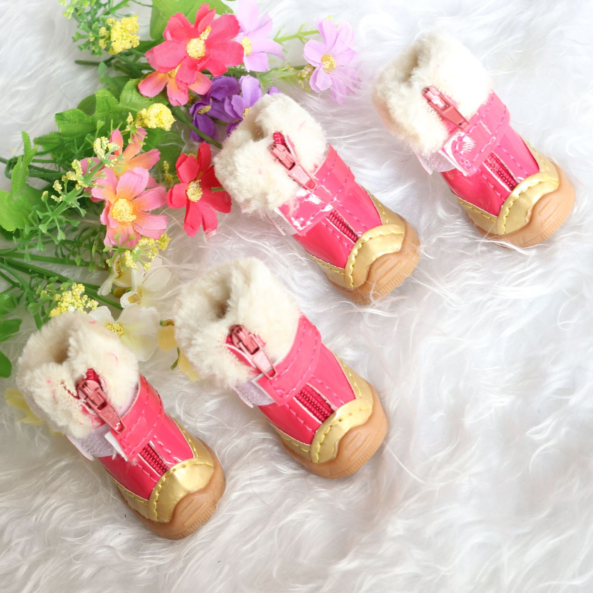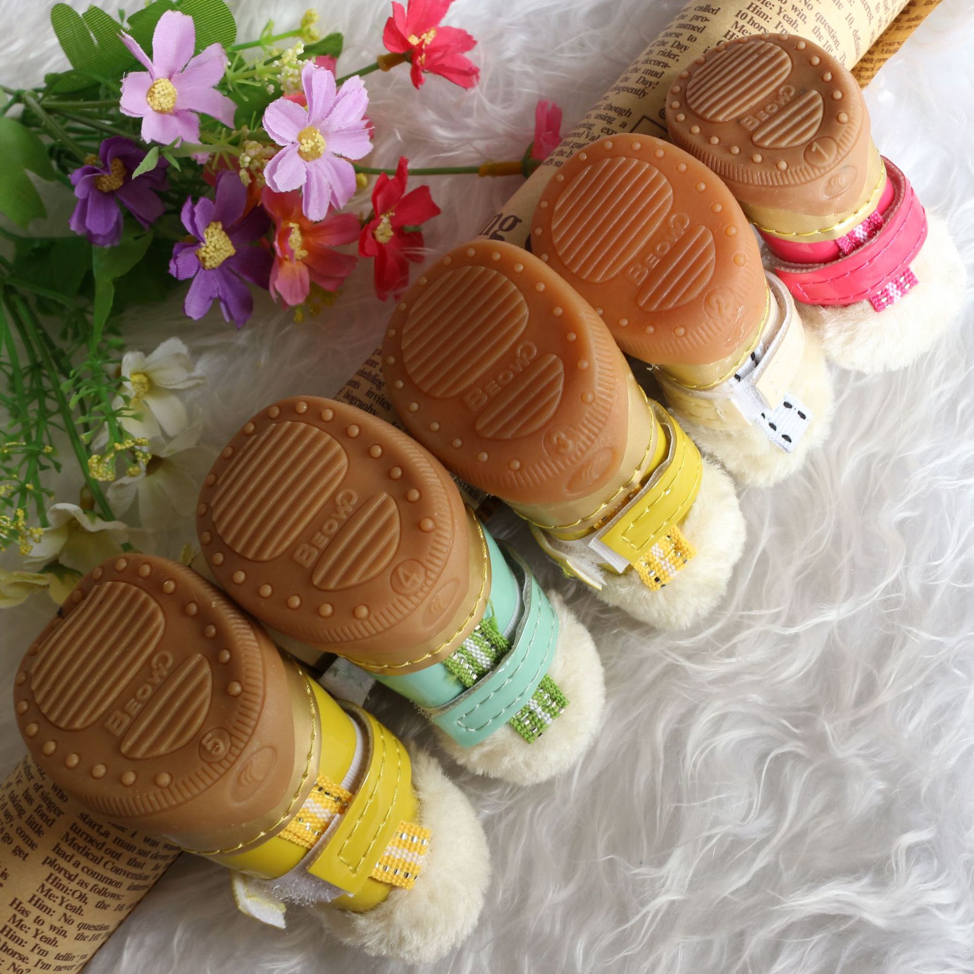 2023 새로운 기능 애완 동물 신발 PU 러플 젤리 신발 따뜻한 미끄럼 방지 테디 애완 동물 개 신발