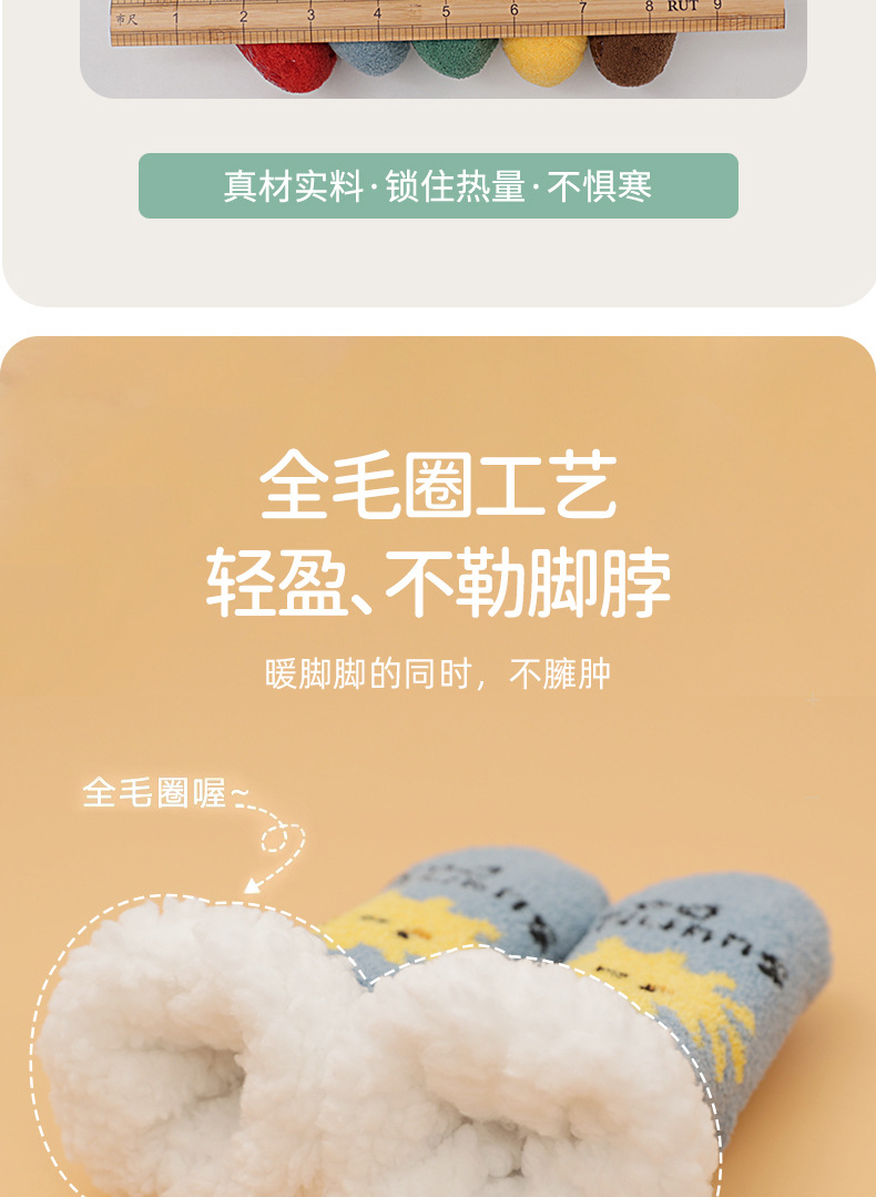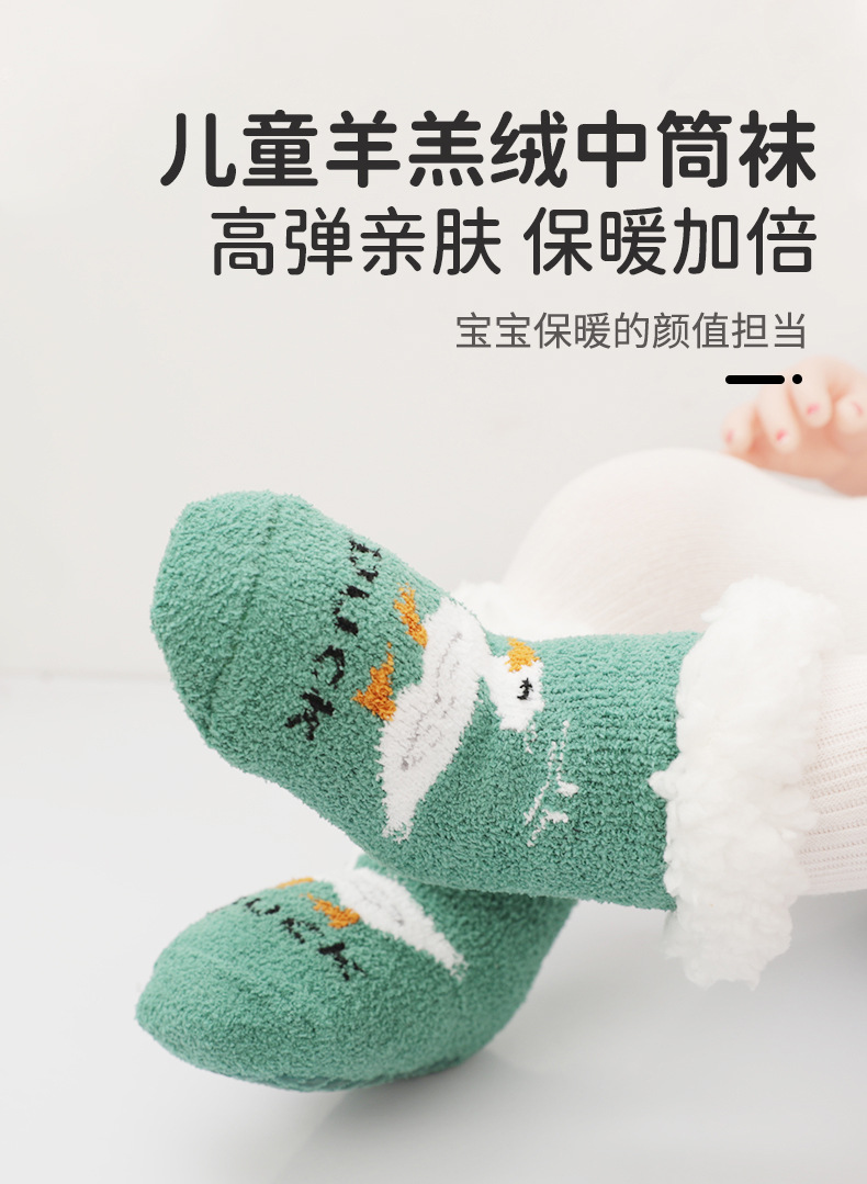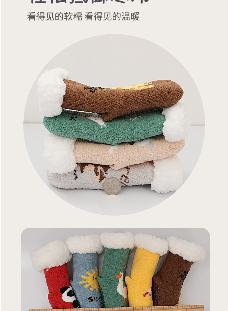 아기 양말 가을과 겨울 아기 기모 두꺼운 바닥 양말 소년과 소녀 면 양말 어린이 중간 스타킹 미끄럼 방지 양말