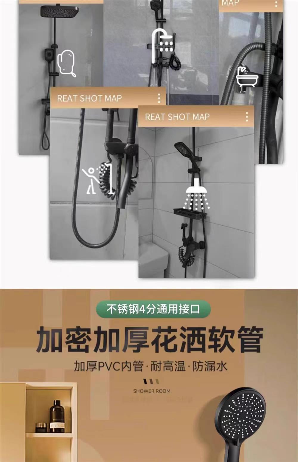 스테인레스 스틸 샤워 호스 샤워기 호스 방폭형 레인 샤워기 호스 블랙 메탈 호스 1.7m