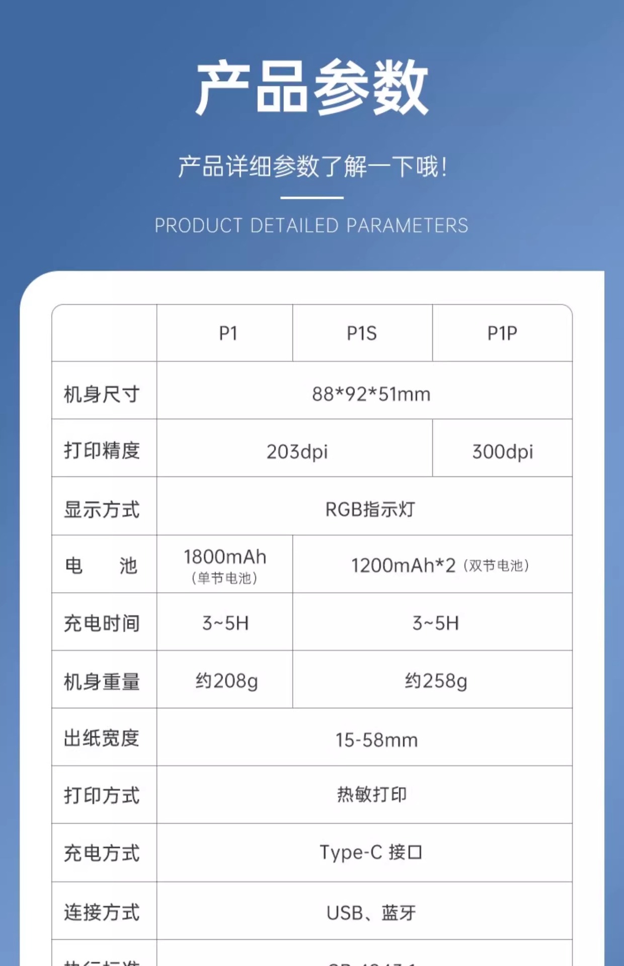 Detong P1 라벨 프린터 소형 접착 스티커 의류 태그 식품 생산 일자 가격 라벨기