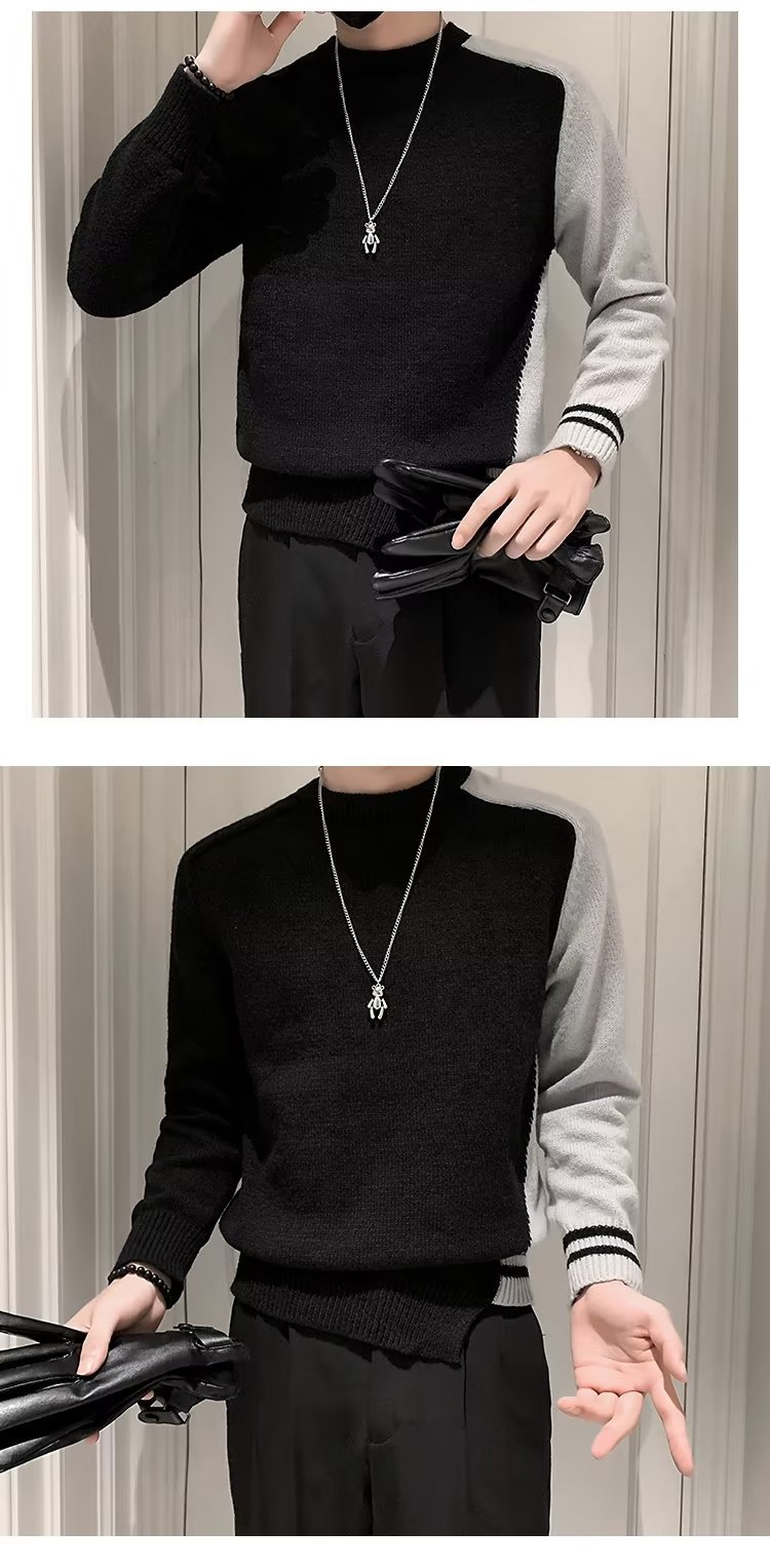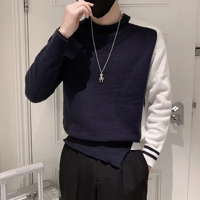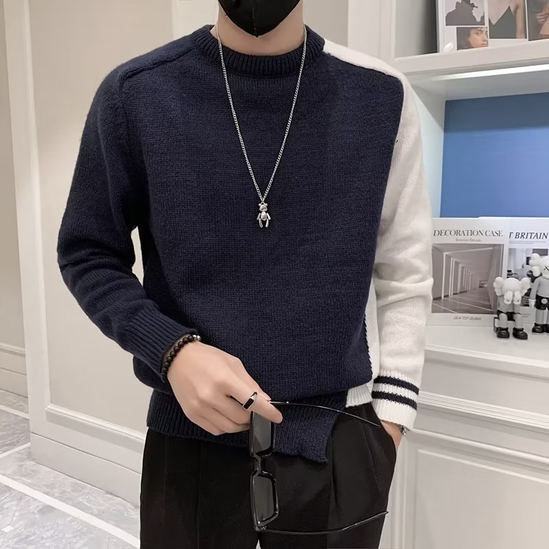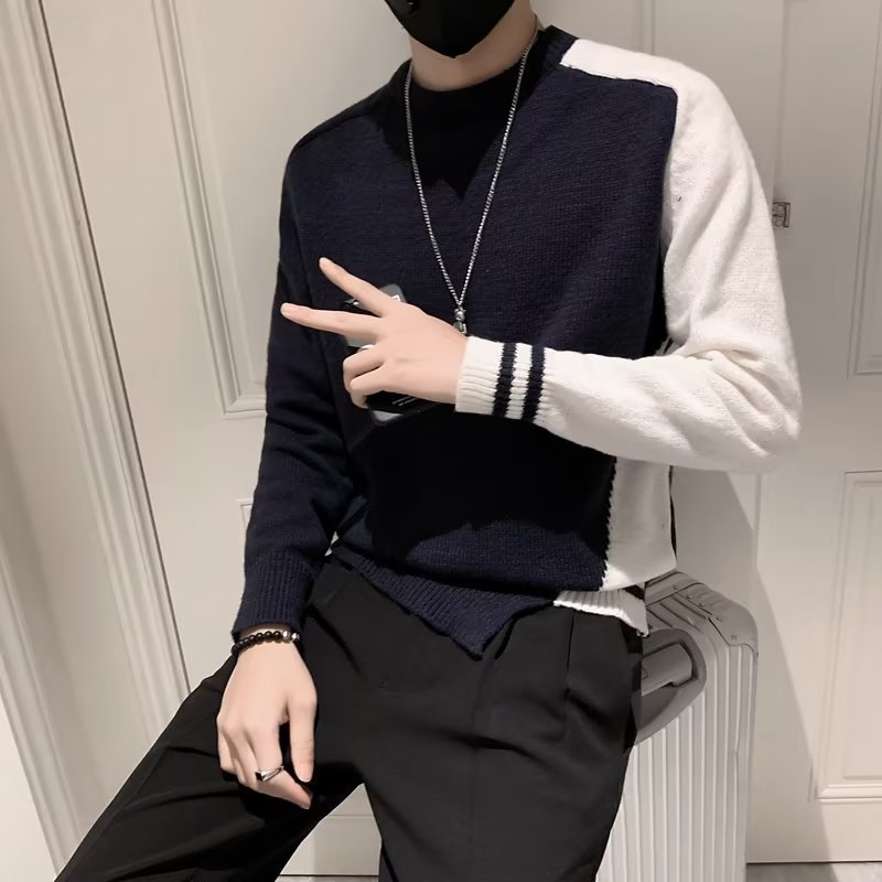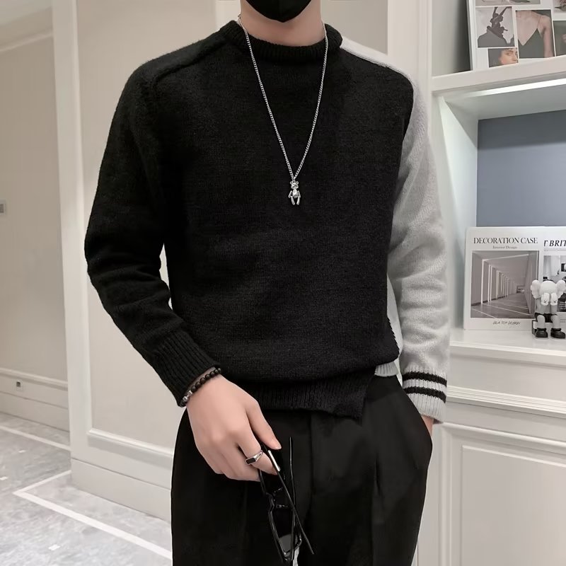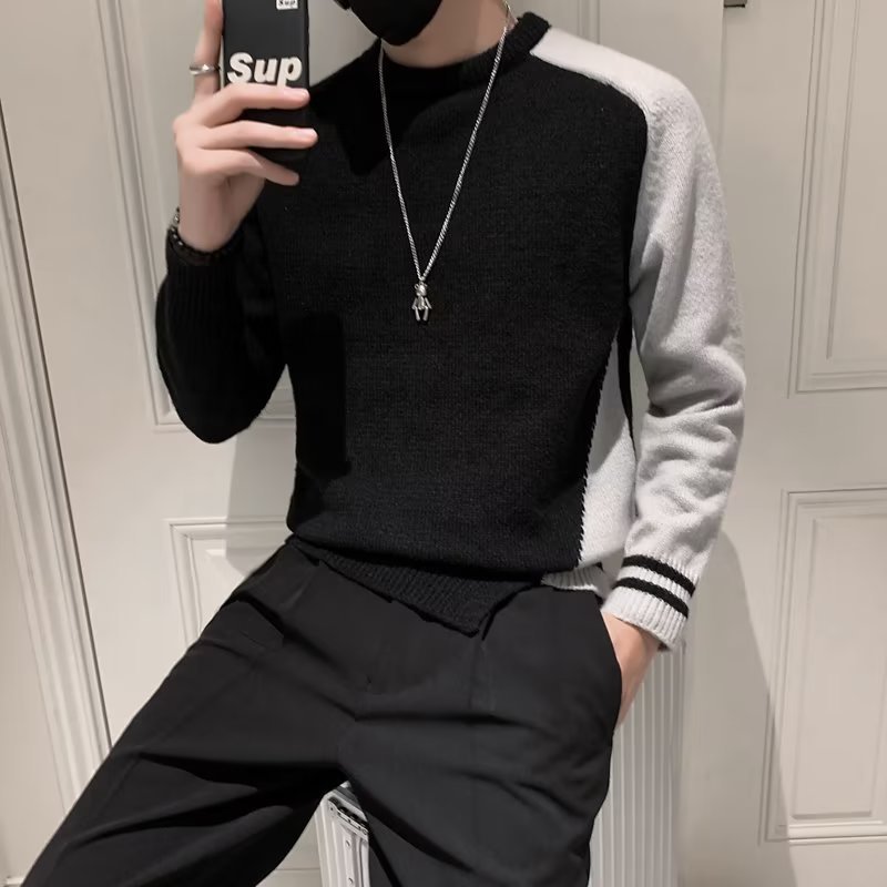 겨울 스웨터 남성용 트렌디한 개인화 된 모든 매치 더피 핸섬 니트 스웨터 남성용 슬림핏 십대 핸섬 베이스 스웨터