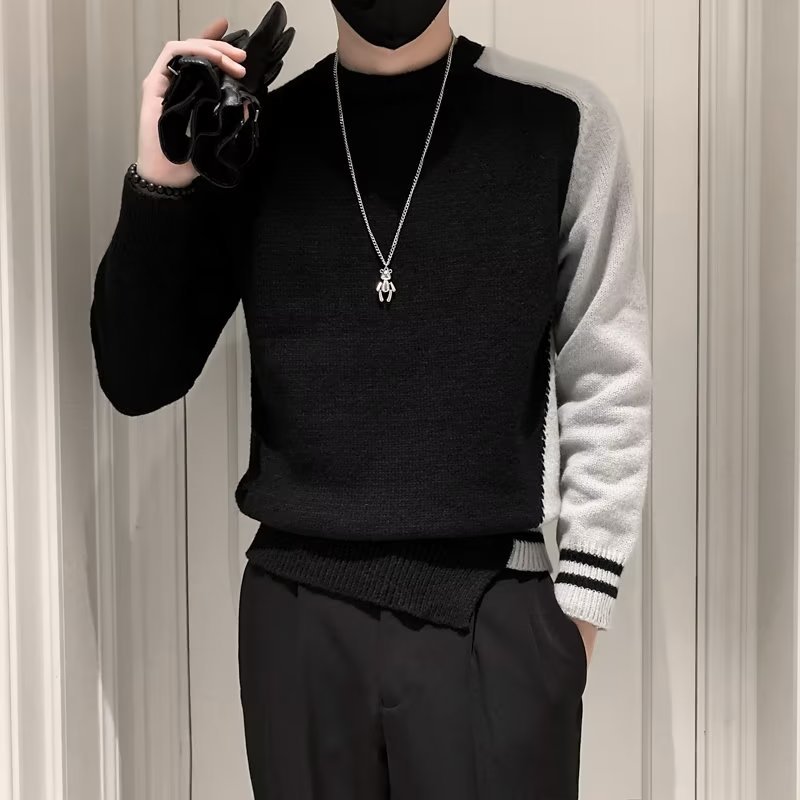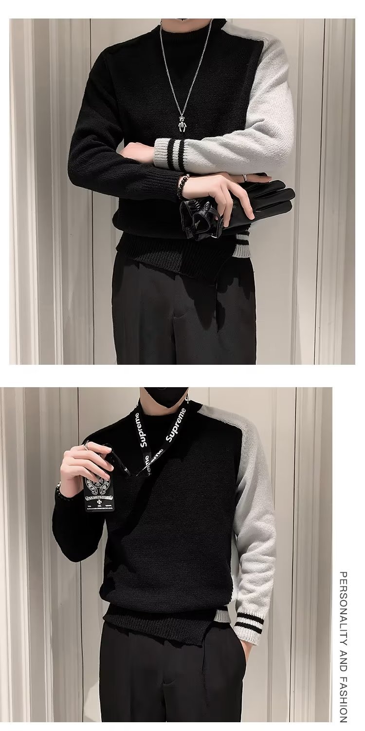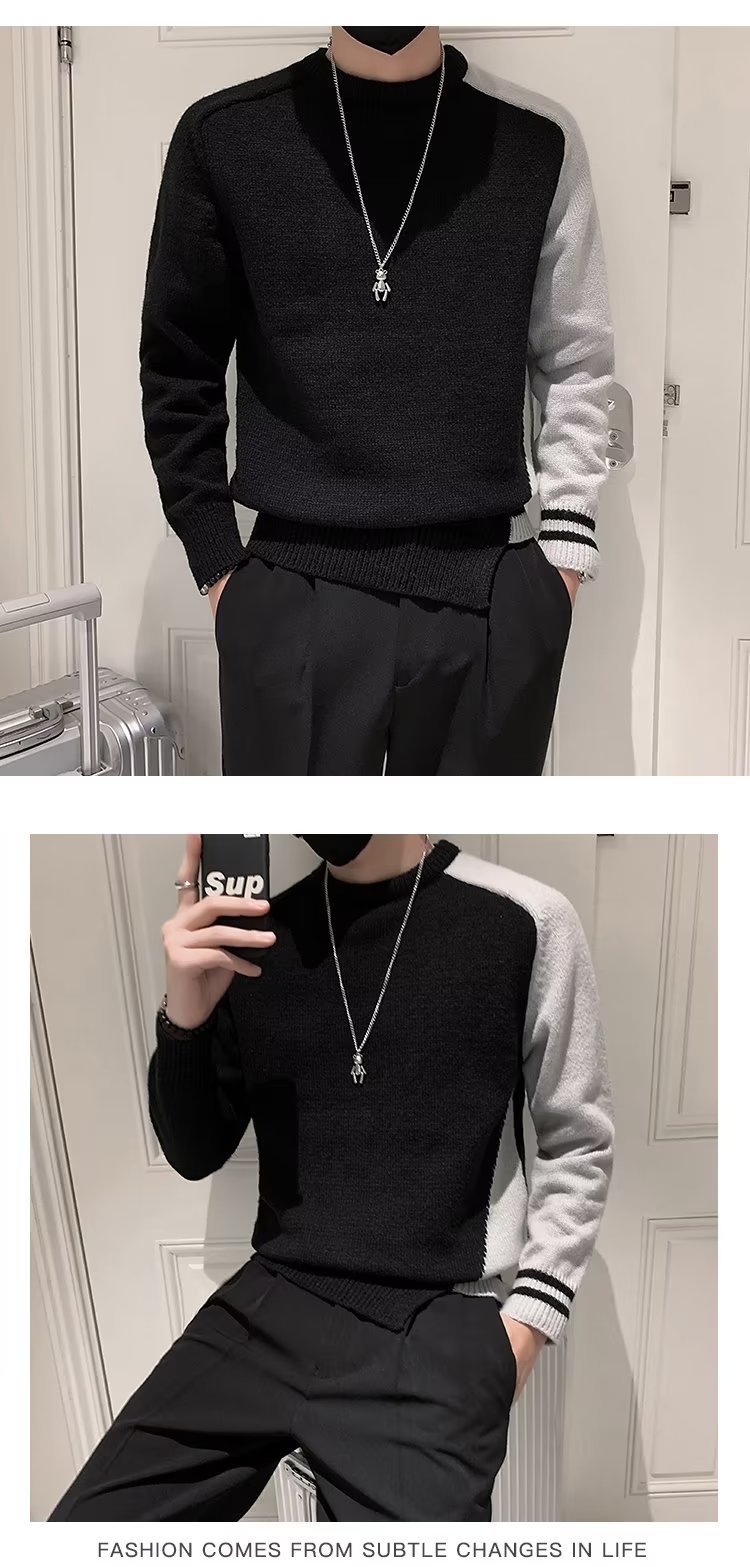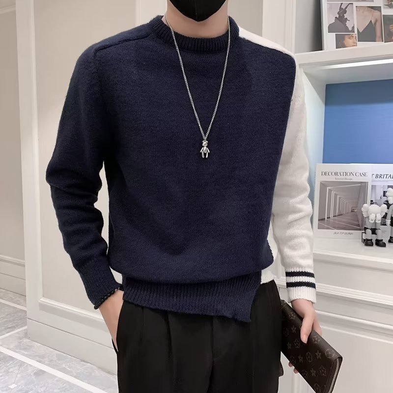 겨울 스웨터 남성용 트렌디한 개인화 된 모든 매치 더피 핸섬 니트 스웨터 남성용 슬림핏 십대 핸섬 베이스 스웨터