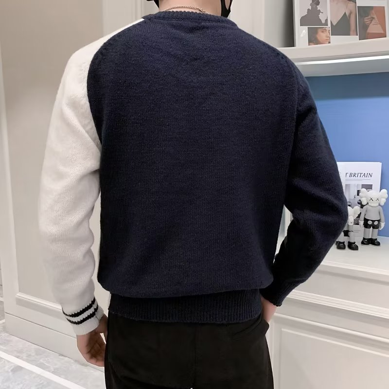 겨울 스웨터 남성용 트렌디한 개인화 된 모든 매치 더피 핸섬 니트 스웨터 남성용 슬림핏 십대 핸섬 베이스 스웨터스토어 가기