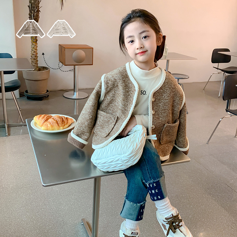 소녀 샤넬 스타일 코트 가을과 겨울 2023 새로운 서양 스타일 어린이 겨울 옷 기모 소녀 겨울 재킷 탑스토어 가기