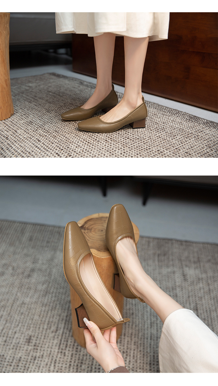 2023 봄과 여름 새로운 작은 굽 신발 심플 레이디 우아한 부드러운 가죽 비 연삭 뾰족한 단층 신발 로우 힐 하이힐스토어 가기