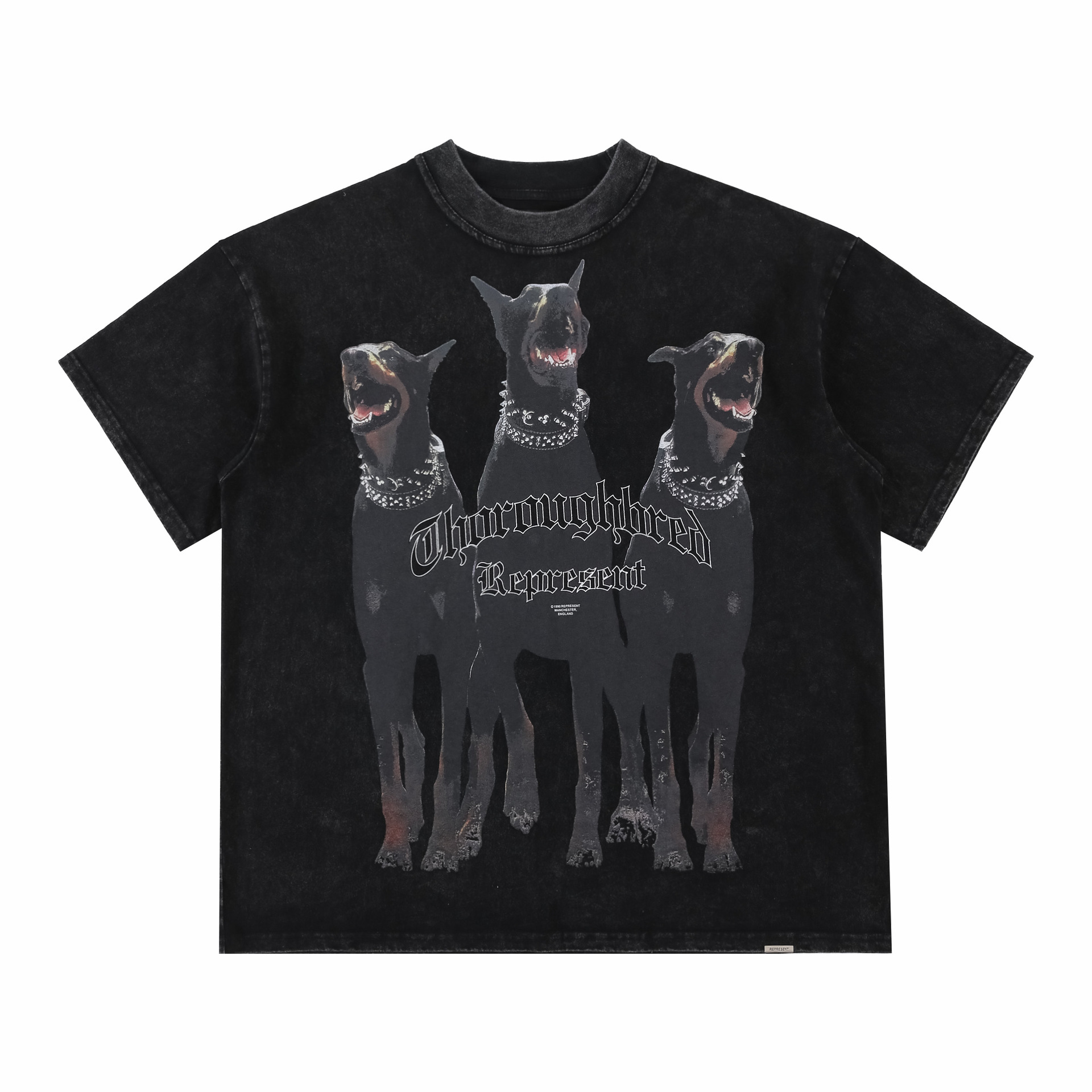 이전 아이콘 미국식 해골 골동품 복고풍 도베르만 인쇄 하이 스트리트 상어 짧은 소매 남성 티셔츠스토어 가기
