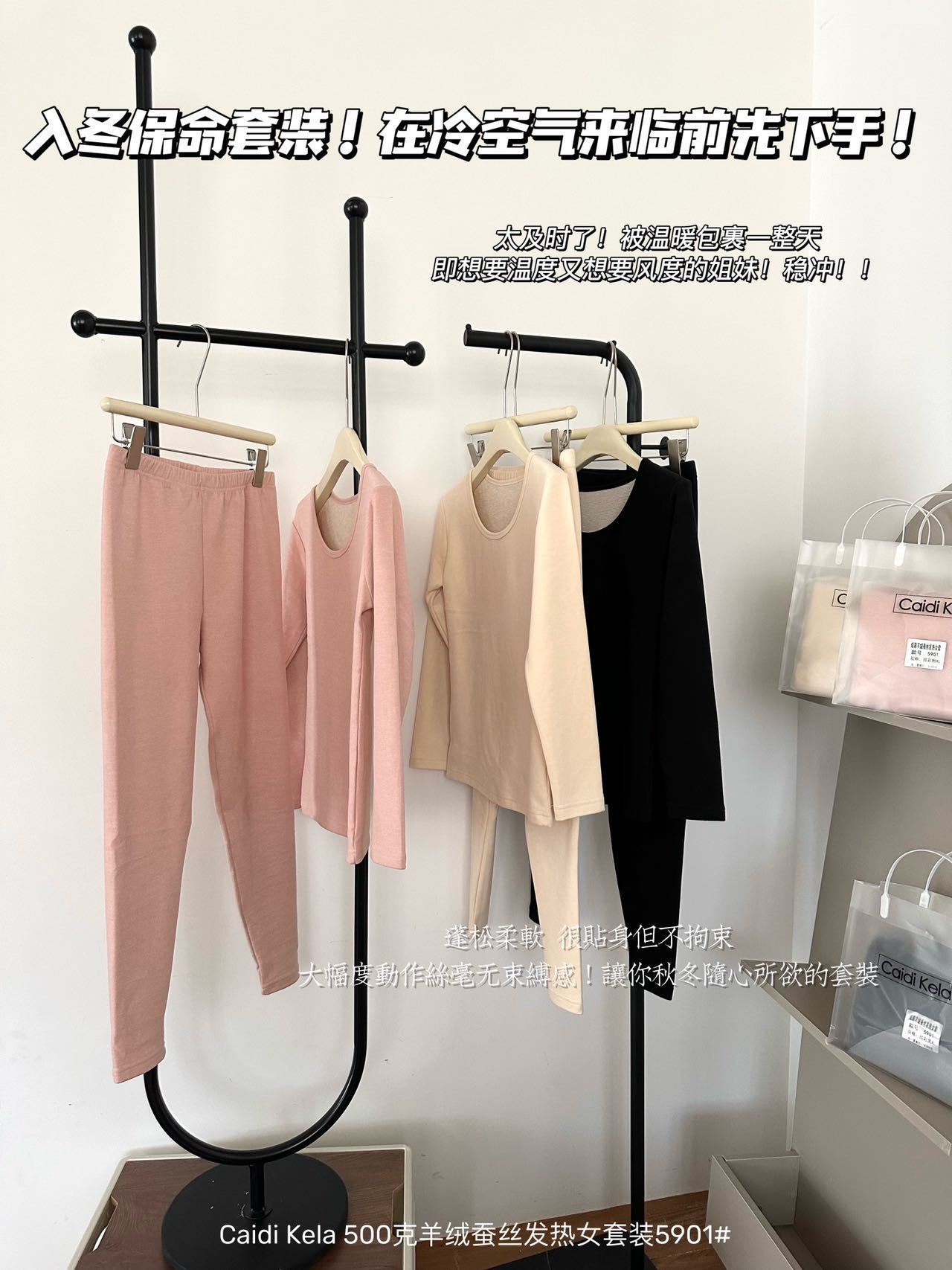 새로운 캐시미어 울 실크 난방 여성의 따뜻한 세트 원활한 보습 피부 터치 따뜻한 가을 옷 바지스토어 가기