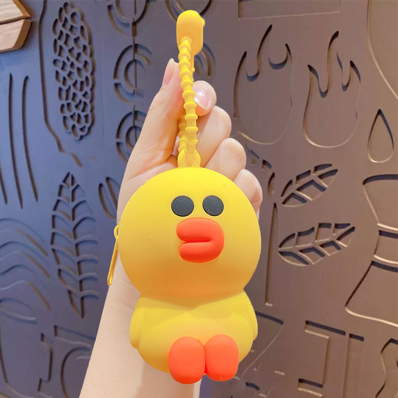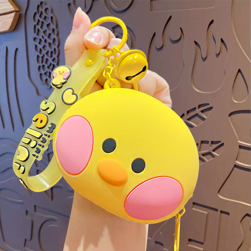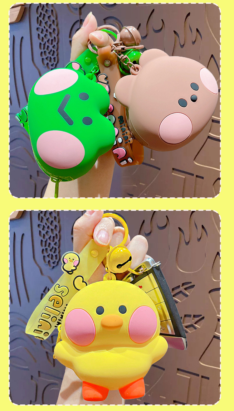 만화 노란 오리 동전 지갑 열쇠 고리 여자의 창조적 인 개구리 변경 보관 가방 자동차 가방 열쇠 고리 펜던트
