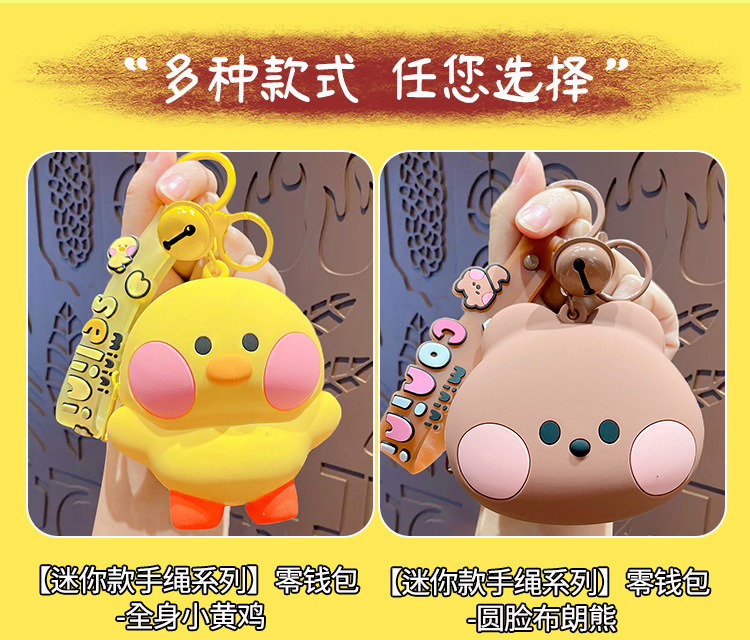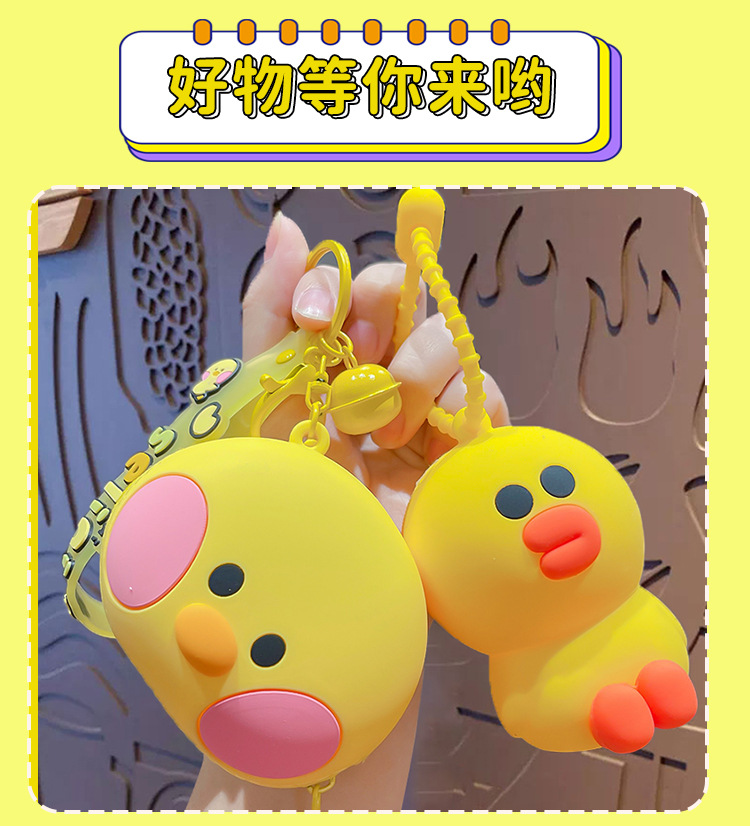 만화 노란 오리 동전 지갑 열쇠 고리 여자의 창조적 인 개구리 변경 보관 가방 자동차 가방 열쇠 고리 펜던트스토어 가기