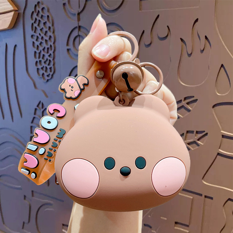 • [미니 핸드 로프 시리즈] 동전 지갑-둥근 얼굴 다크 브라운 곰