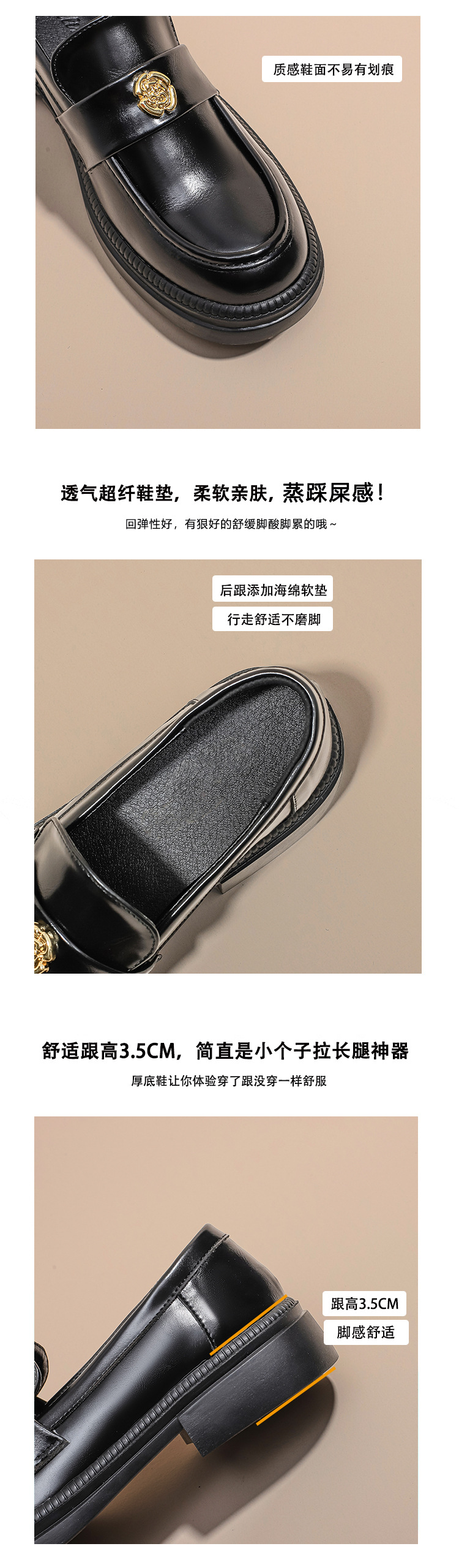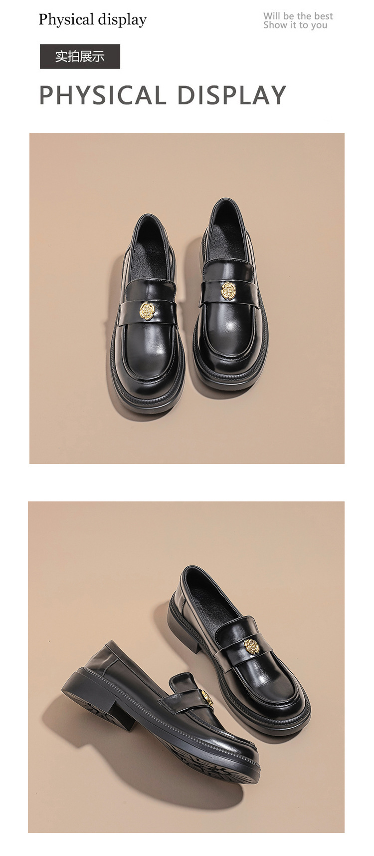 동백 꽃의 사랑 ~ 작은 금 동전 버클 두꺼운 바닥 로퍼 여성용 2023 가을 새로운 영국 스타일 싱글 신발 작은 가죽 신발스토어 가기