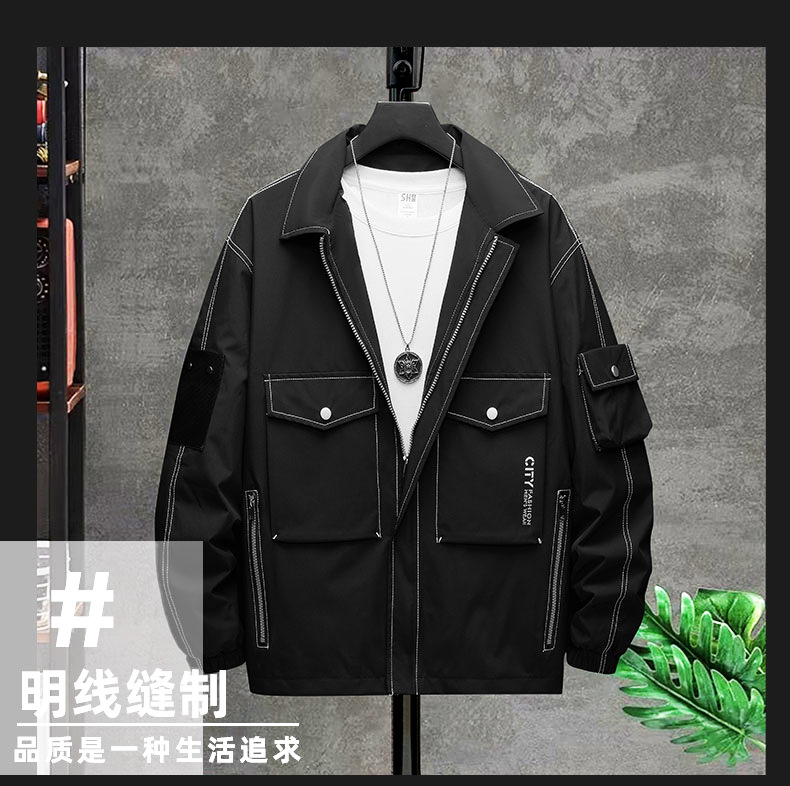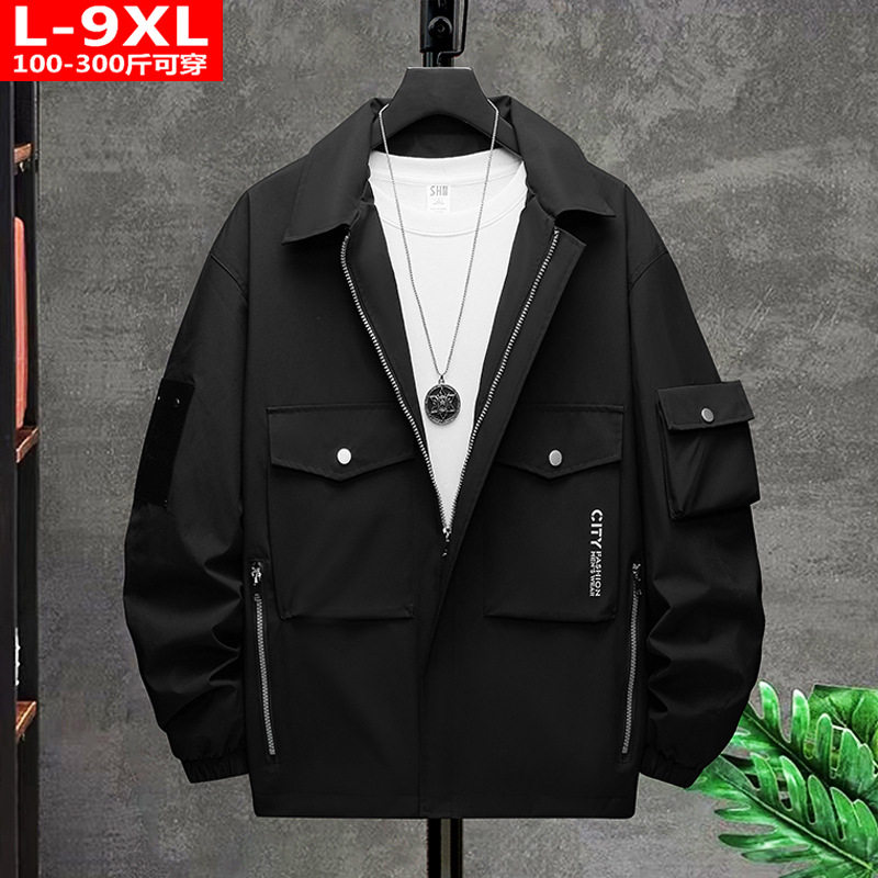 봄과 가을 유행 남자의 잘 생긴 유행 모든 매치 스퀘어 칼라 재킷 통통한 남자의 플러스 플러스 사이즈 느슨한 캐주얼 재킷스토어 가기