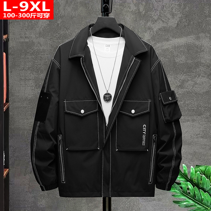 봄과 가을 유행 남자의 잘 생긴 유행 모든 매치 스퀘어 칼라 재킷 통통한 남자의 플러스 플러스 사이즈 느슨한 캐주얼 재킷