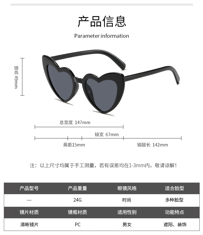 새로운 유럽과 미국의 레트로 인 소녀 사랑 선글라스 비치 하트 생일 사진 크로스 보더 패션 선글라스