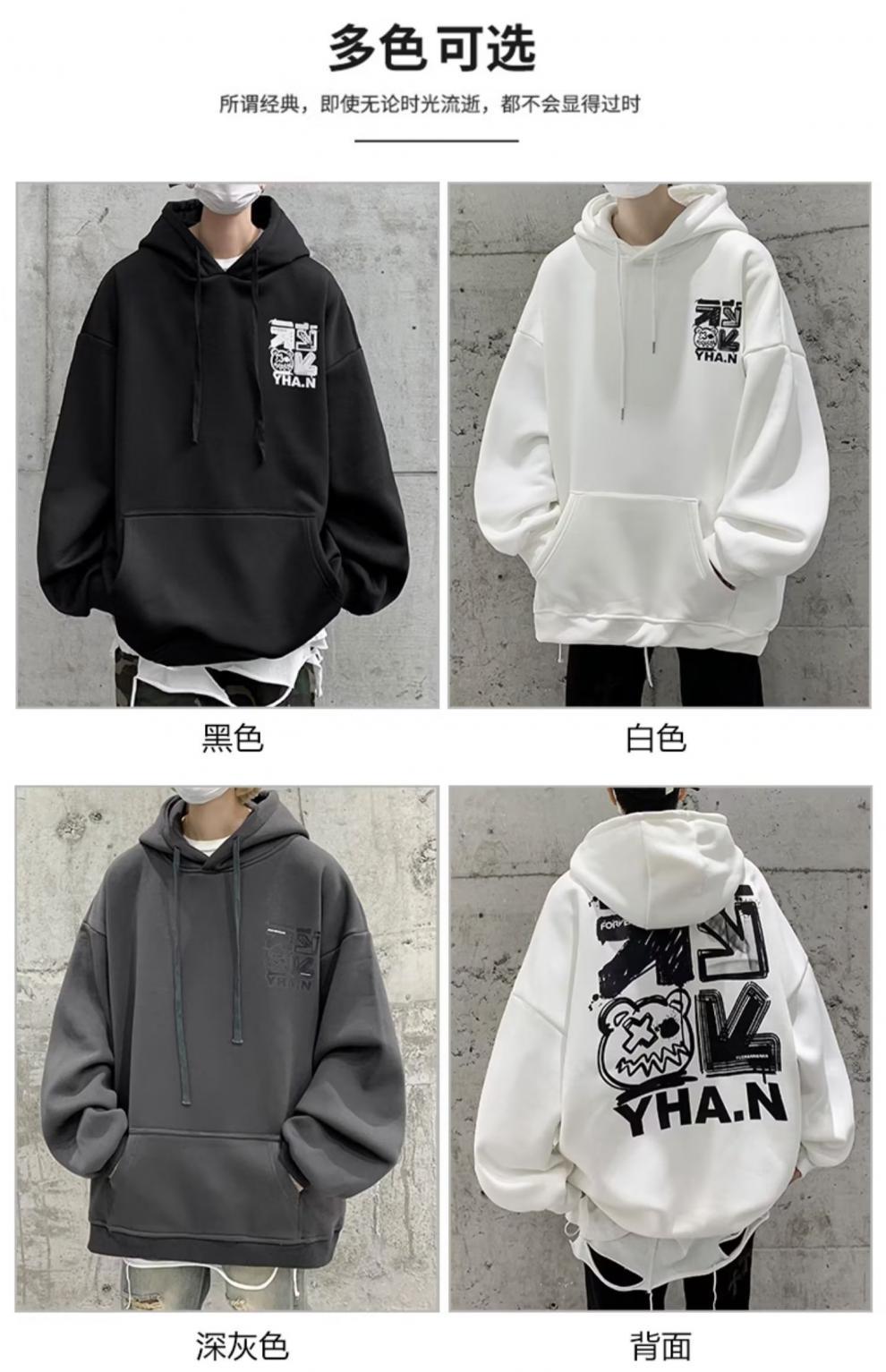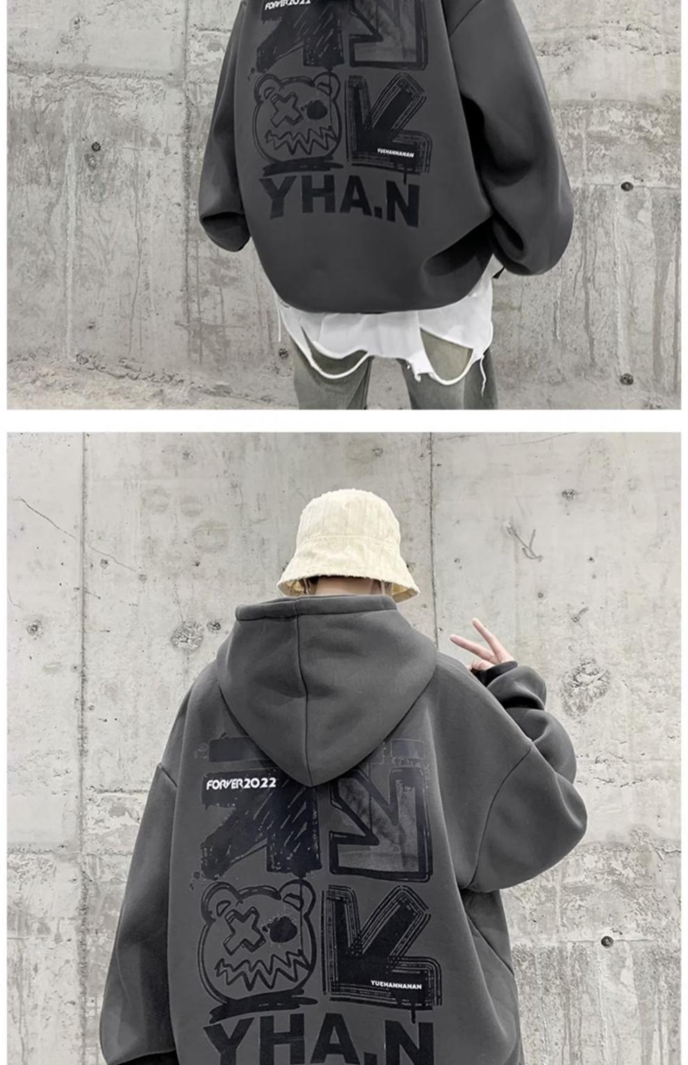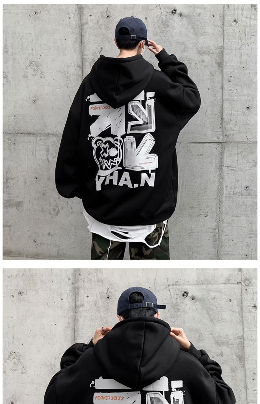 플러스 사이즈 기모 후드 스웨터 남자의 가을과 겨울 힙합 패션 브랜드 힙합 더피 잘 생긴 미국 스타일 어퍼 느슨한 재킷 남자의스토어 가기