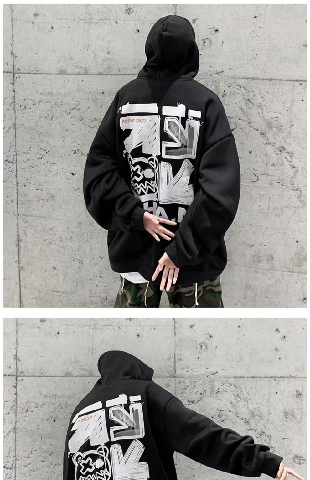 플러스 사이즈 기모 후드 스웨터 남자의 가을과 겨울 힙합 패션 브랜드 힙합 더피 잘 생긴 미국 스타일 어퍼 느슨한 재킷 남자의