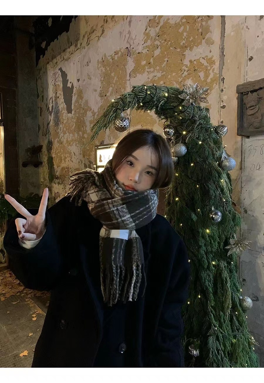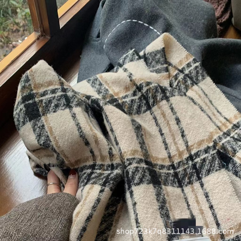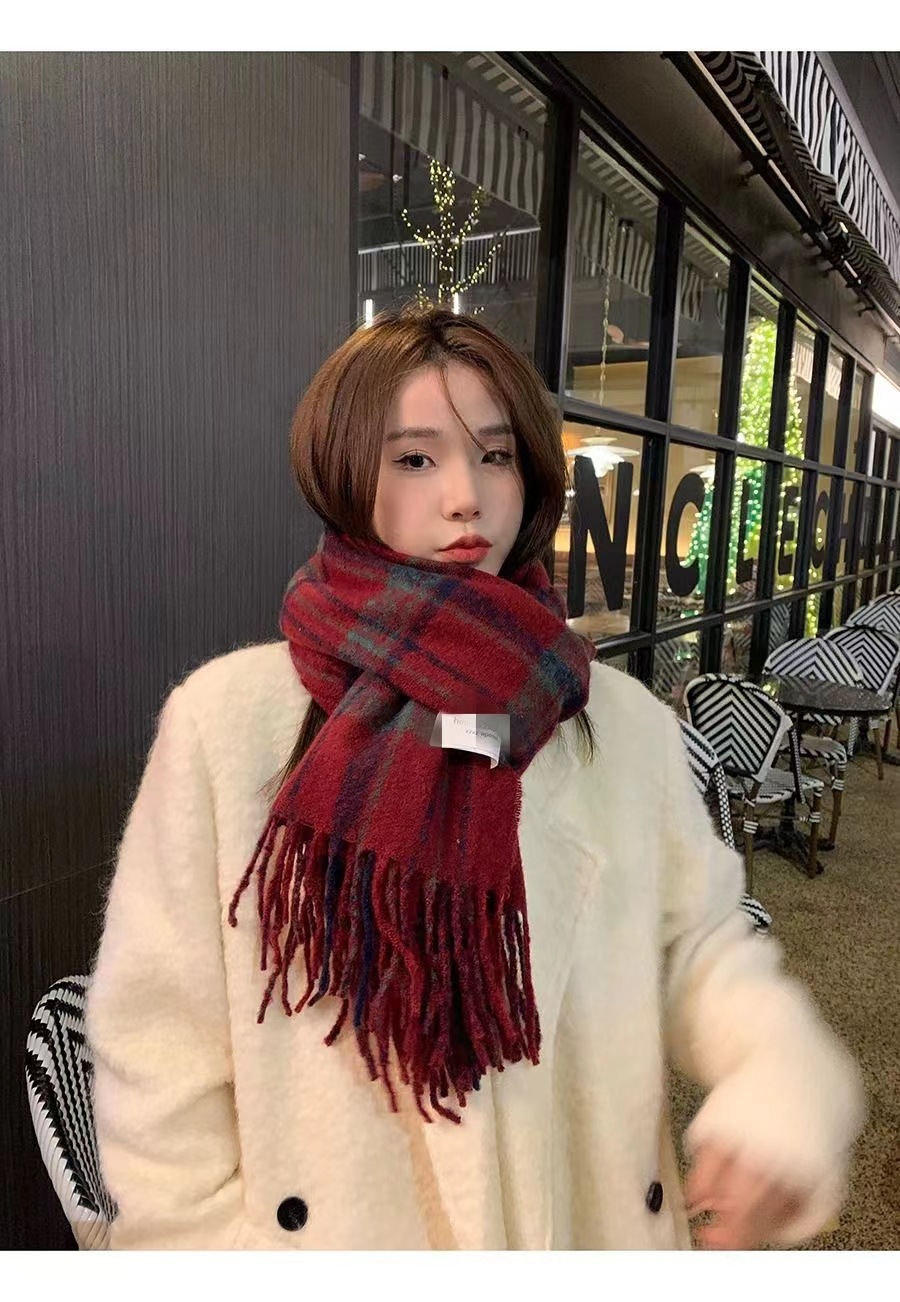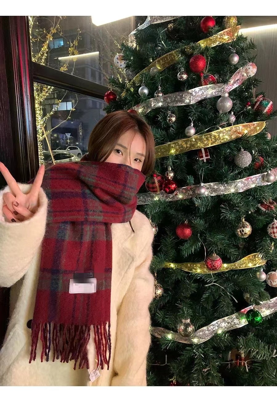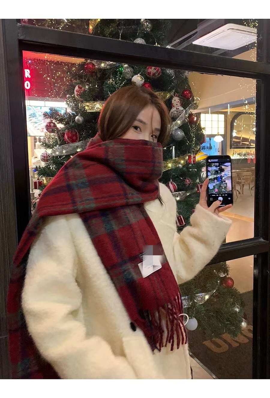 2024 한국판 양면 빨간색 체크무늬 스카프 여성용 겨울 보온 숄 다용도 고급스러운 느낌 스카프 학생용 두꺼운 스카프스토어 가기