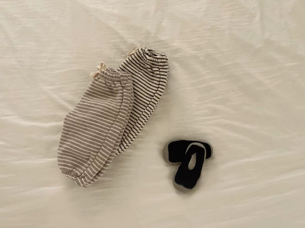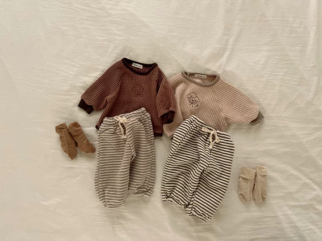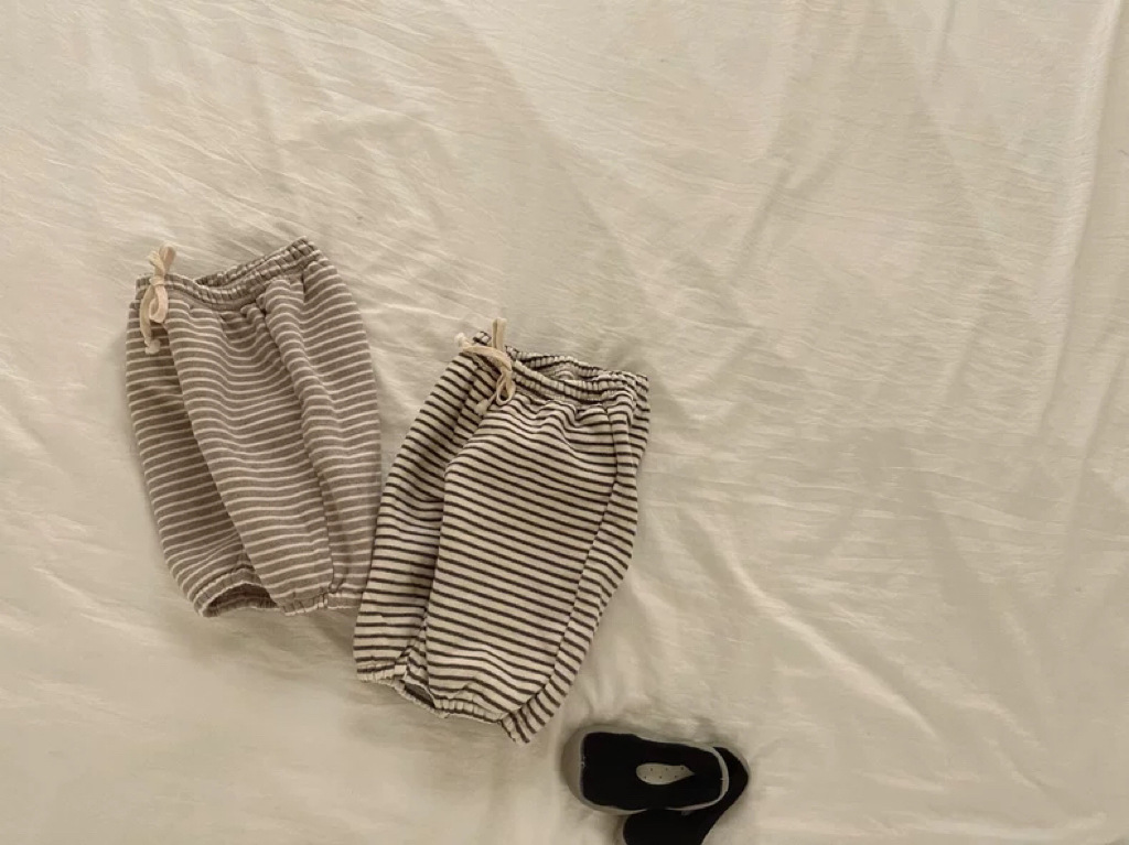 한국 스타일 봄, 가을, 겨울 스트라이프 기모 바지 신상품
