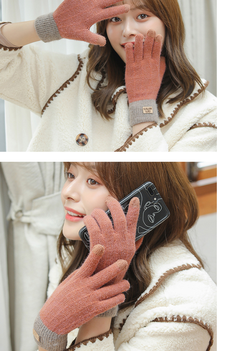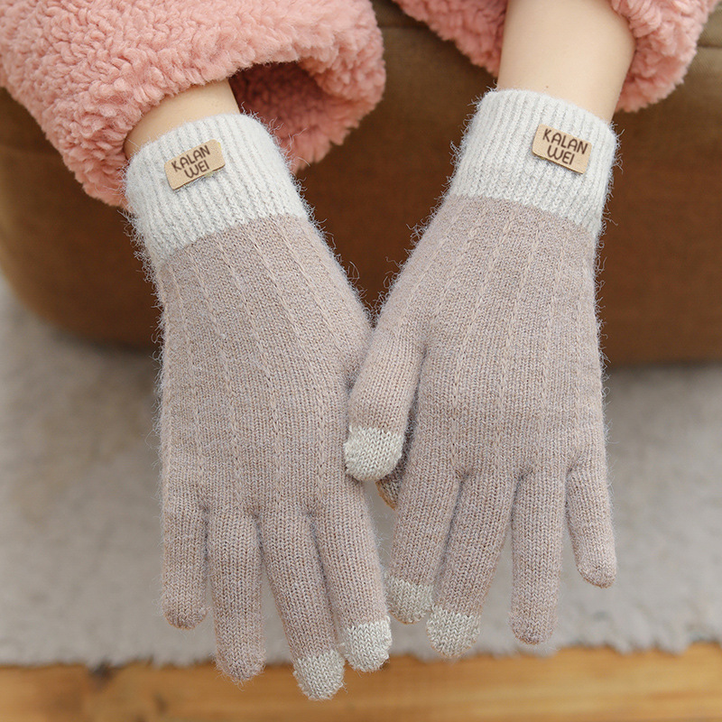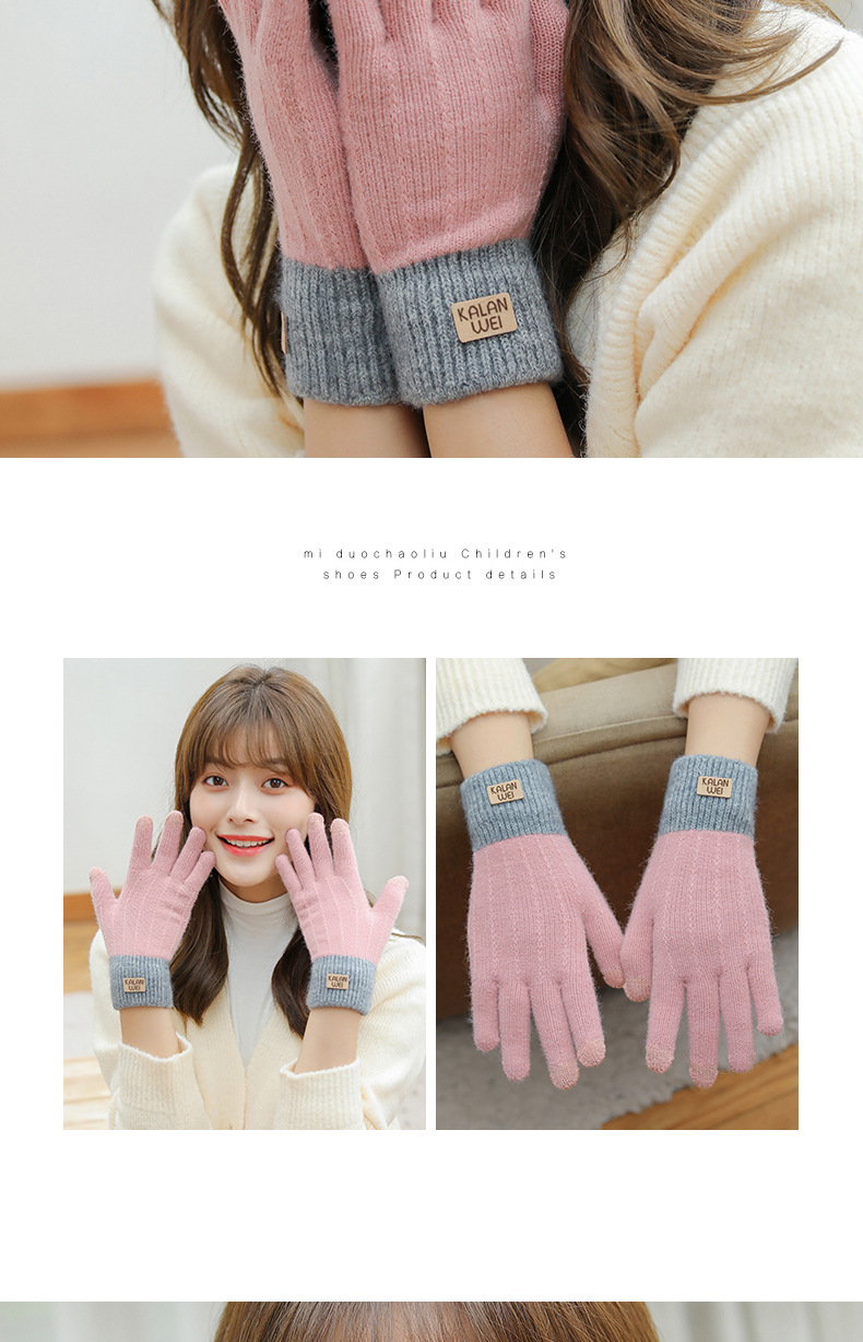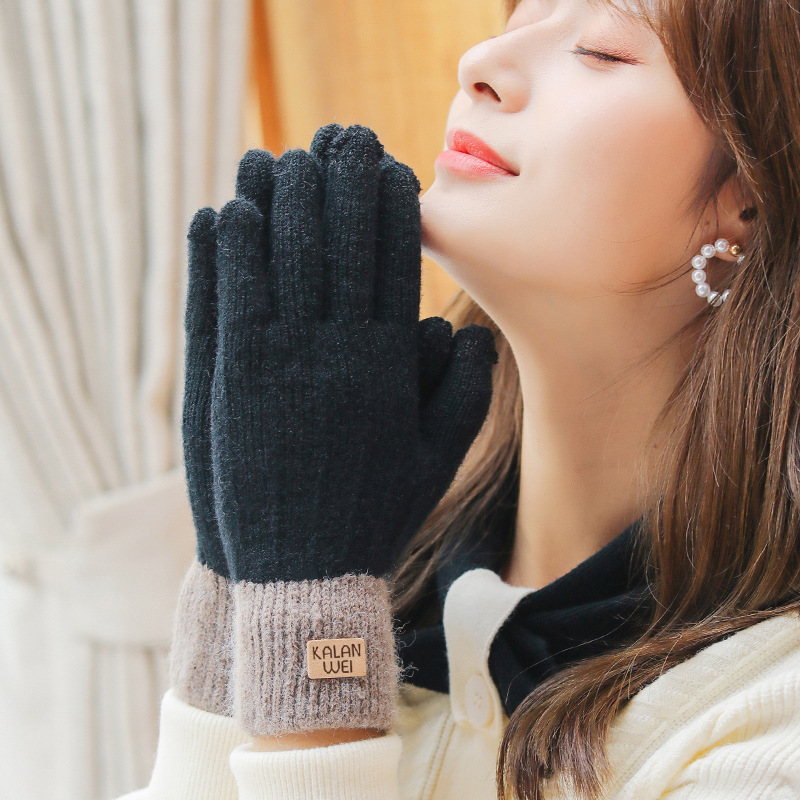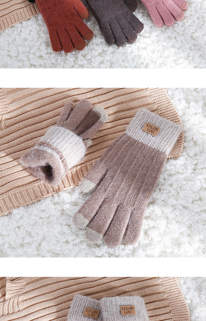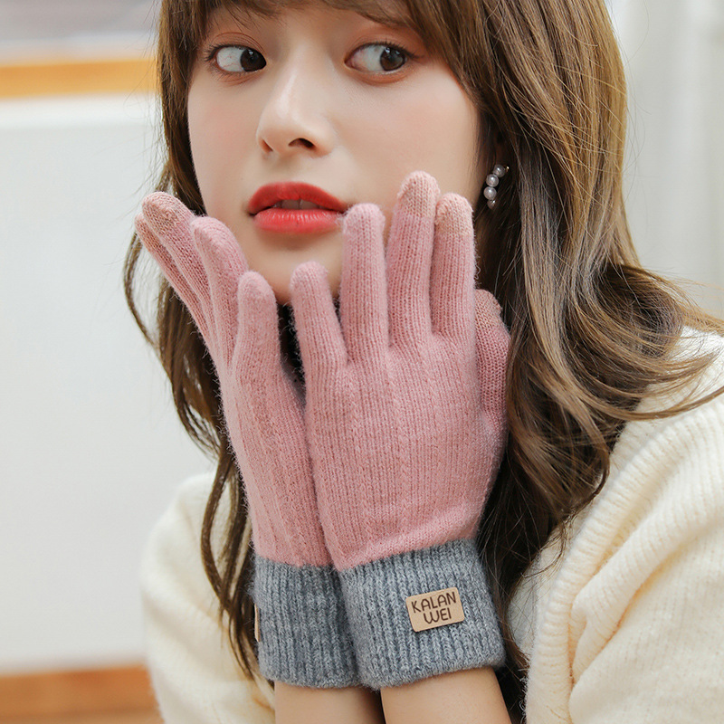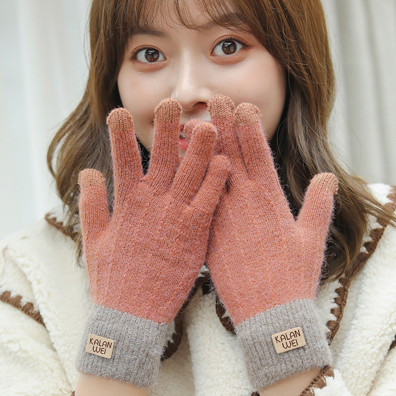 터치 스크린 따뜻한 장갑 여자의 겨울 한국식 가을과 겨울 야외 여자의 기모 두꺼운 방한 니트 스레드 장갑 재고스토어 가기