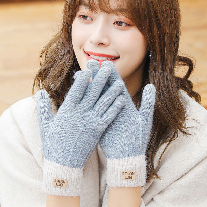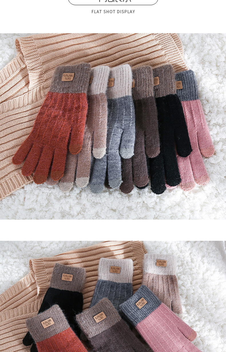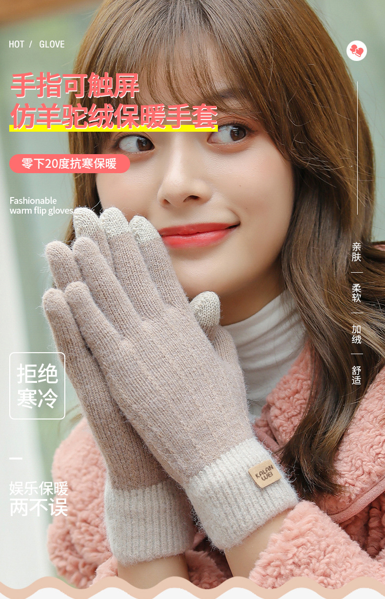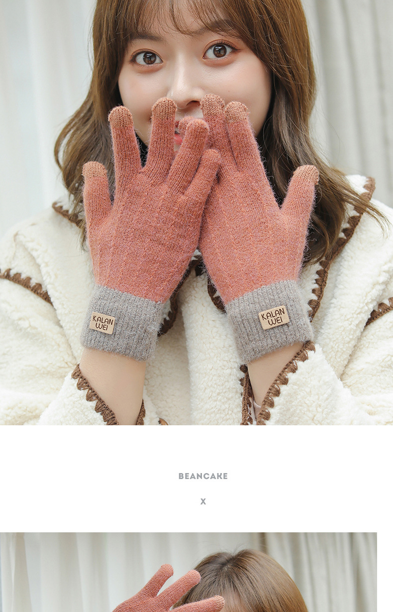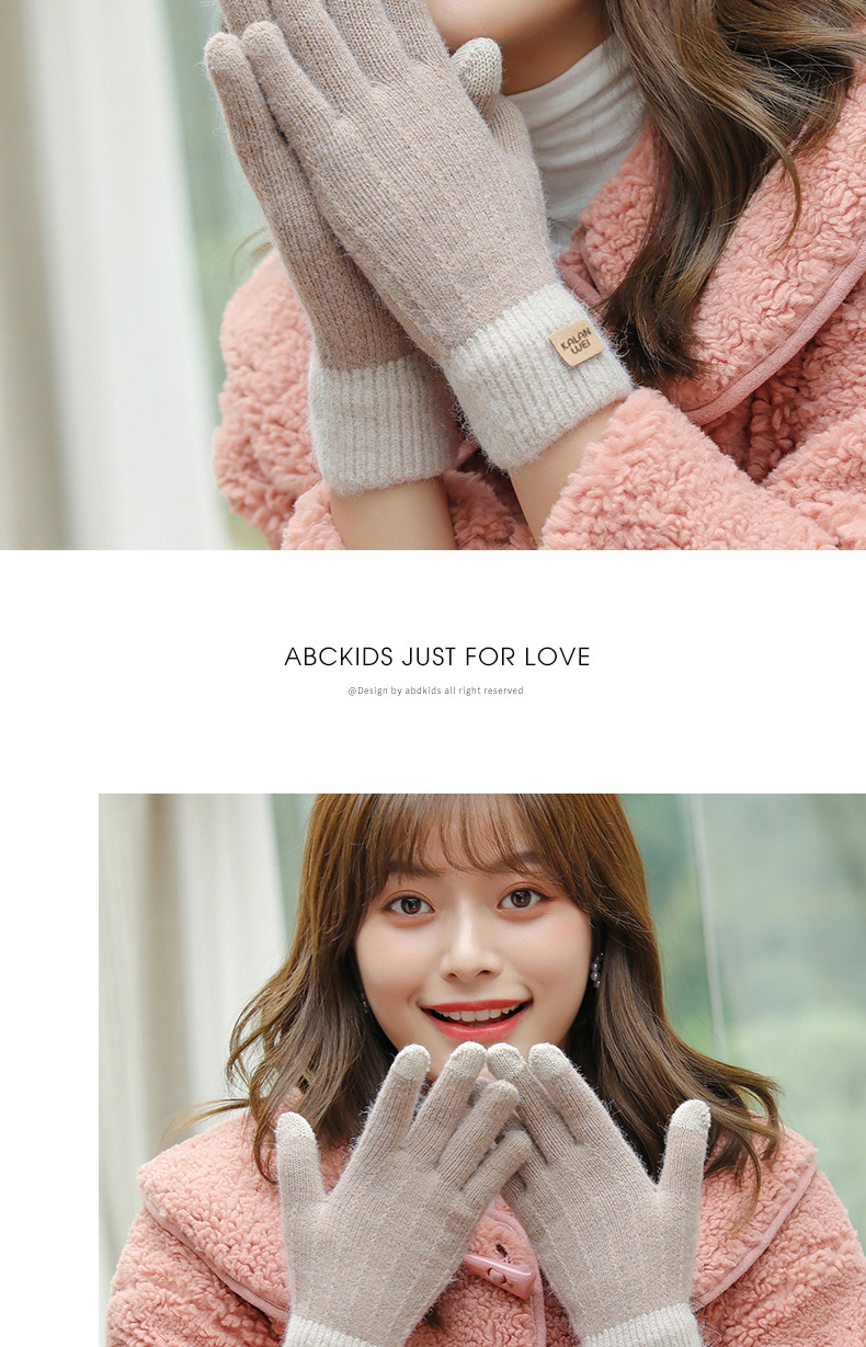 터치 스크린 따뜻한 장갑 여자의 겨울 한국식 가을과 겨울 야외 여자의 기모 두꺼운 방한 니트 스레드 장갑 재고스토어 가기