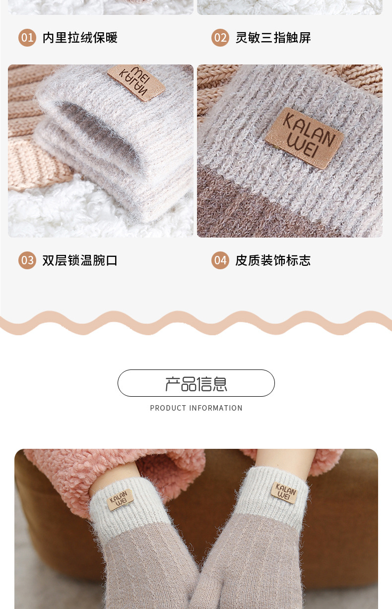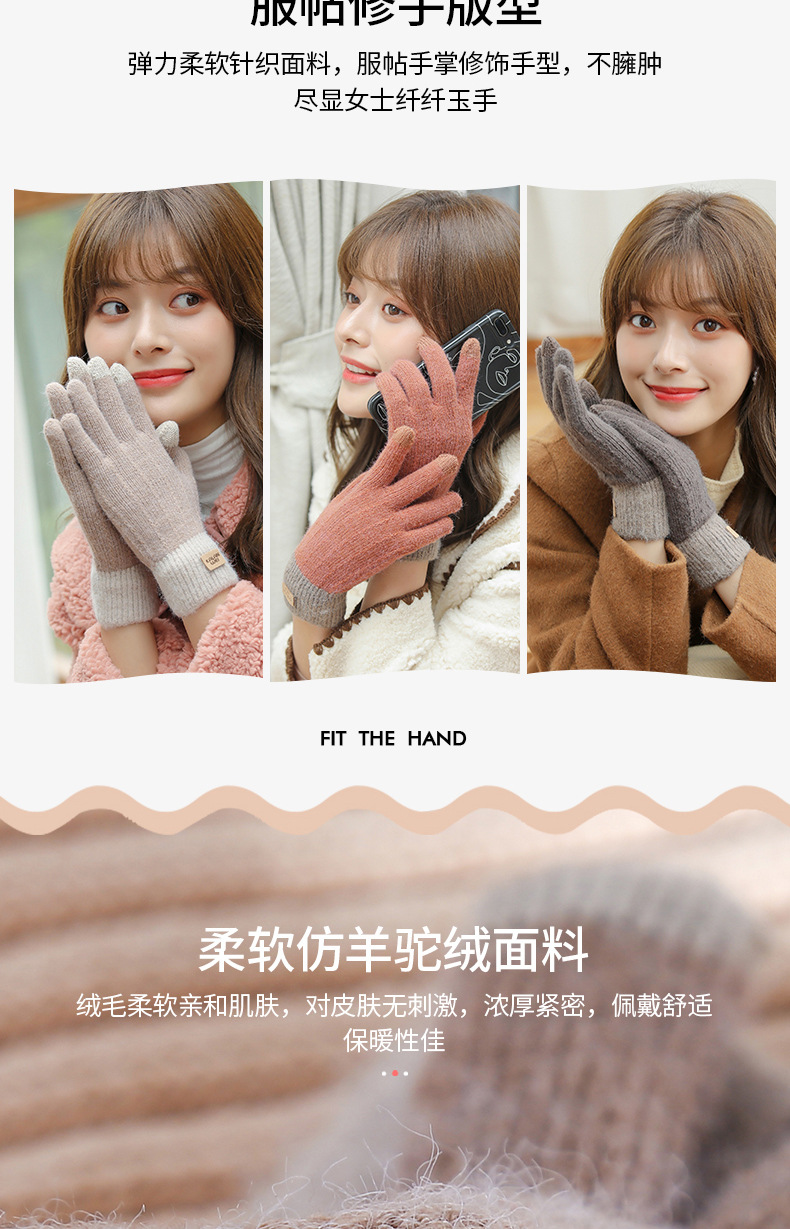 터치 스크린 따뜻한 장갑 여자의 겨울 한국식 가을과 겨울 야외 여자의 기모 두꺼운 방한 니트 스레드 장갑 재고
