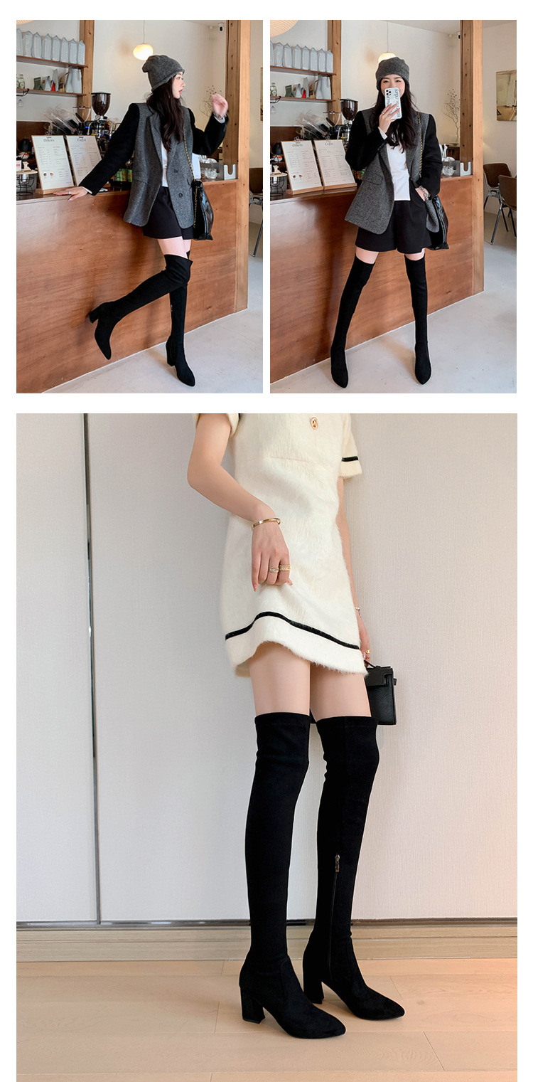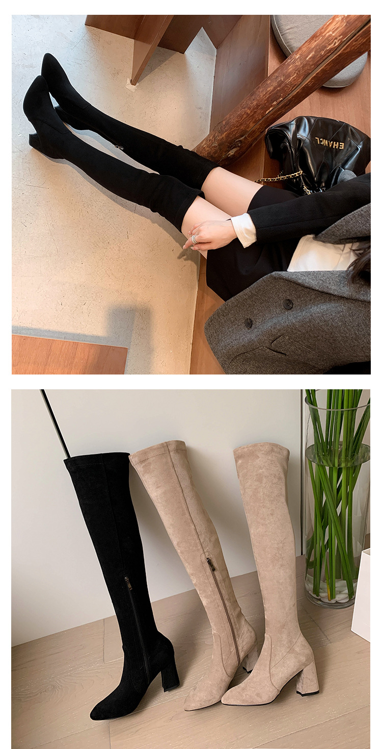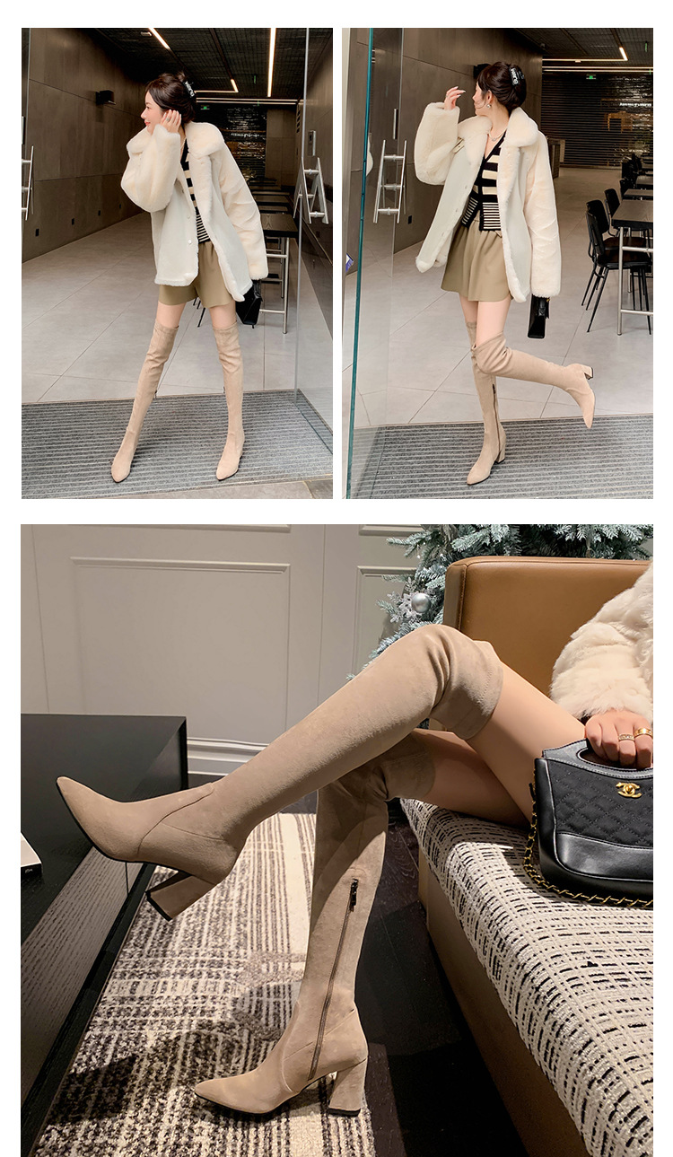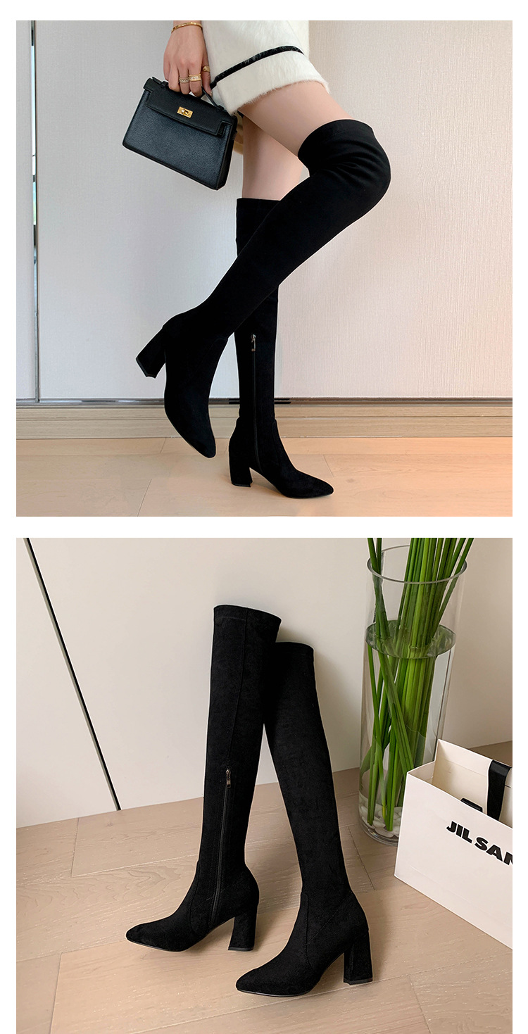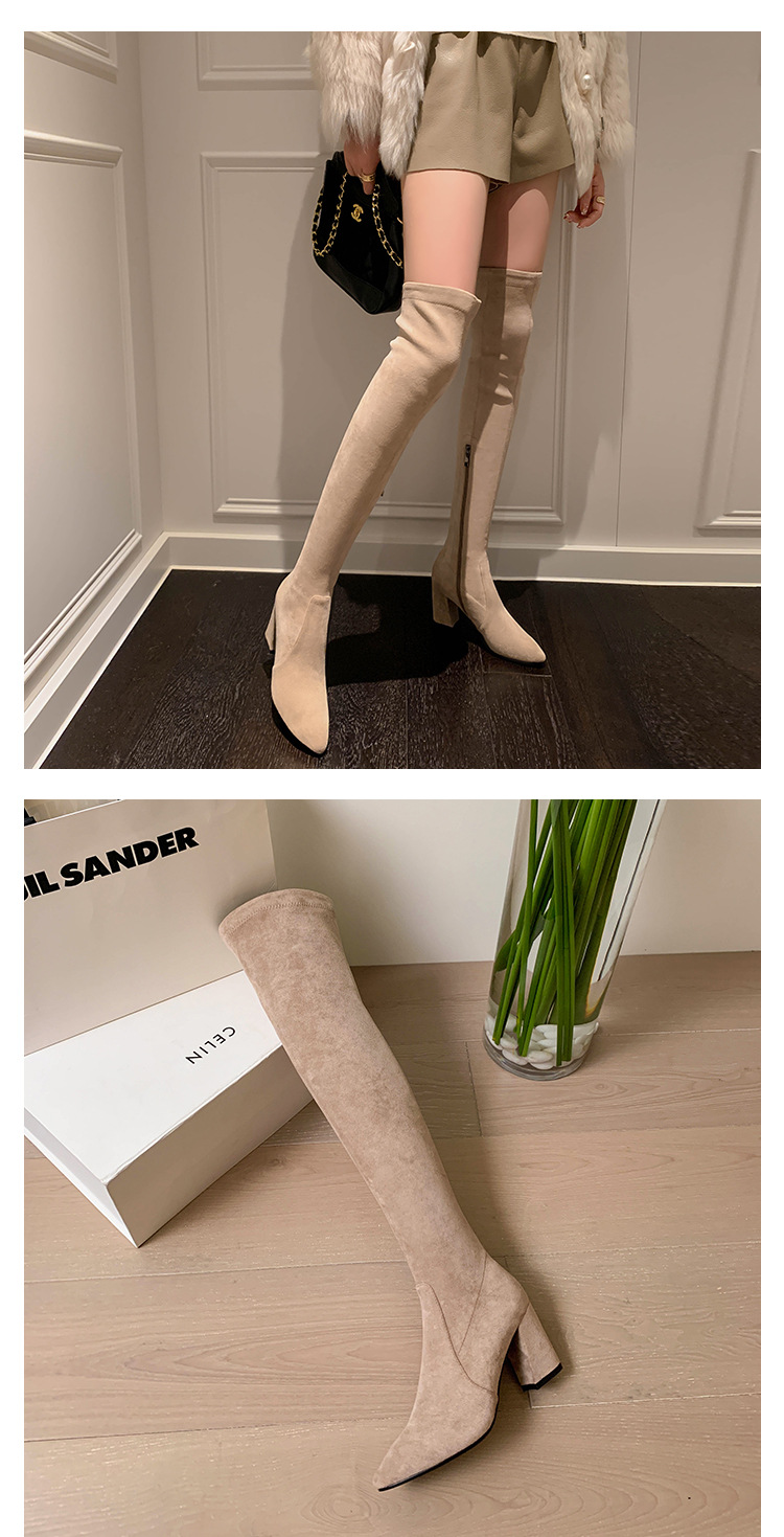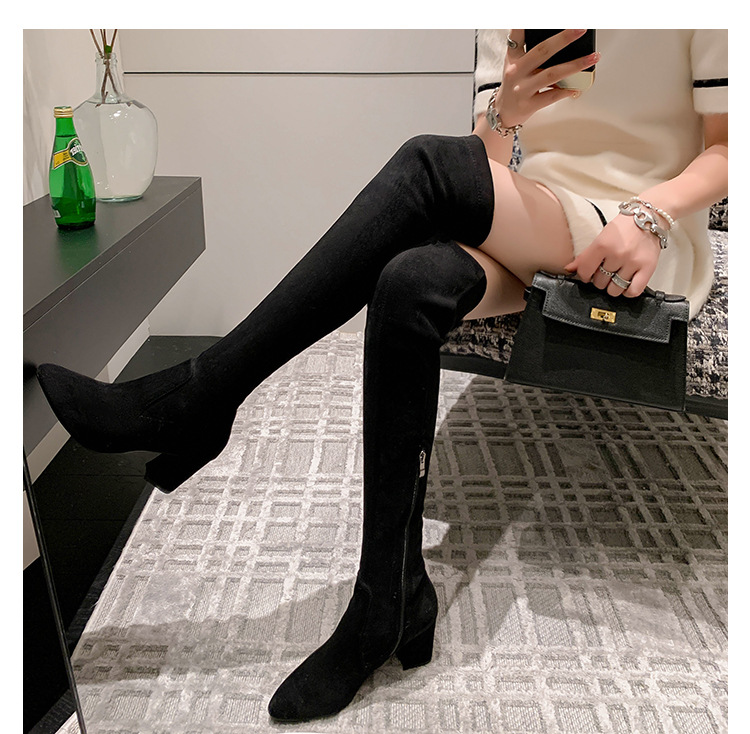 디자이너 Kun 무릎 부츠 여성의 가을과 겨울 새로운 뾰족한 두꺼운 굽 높은 스트레치 무릎 부츠 작은 부츠스토어 가기