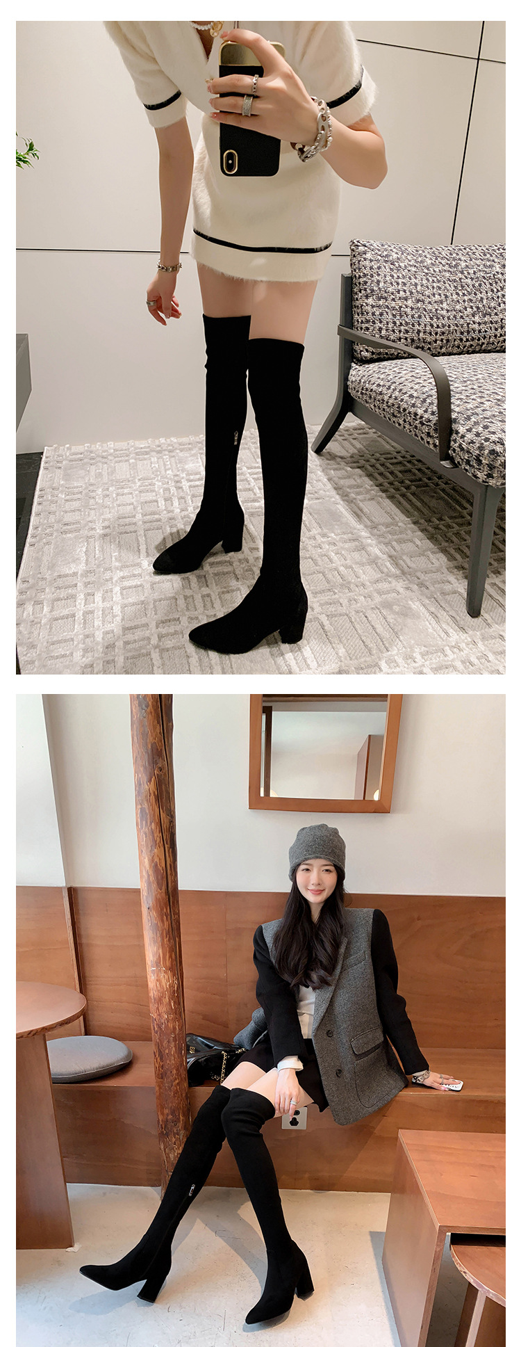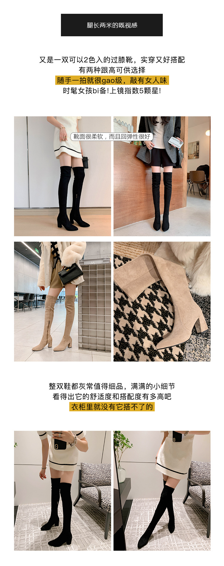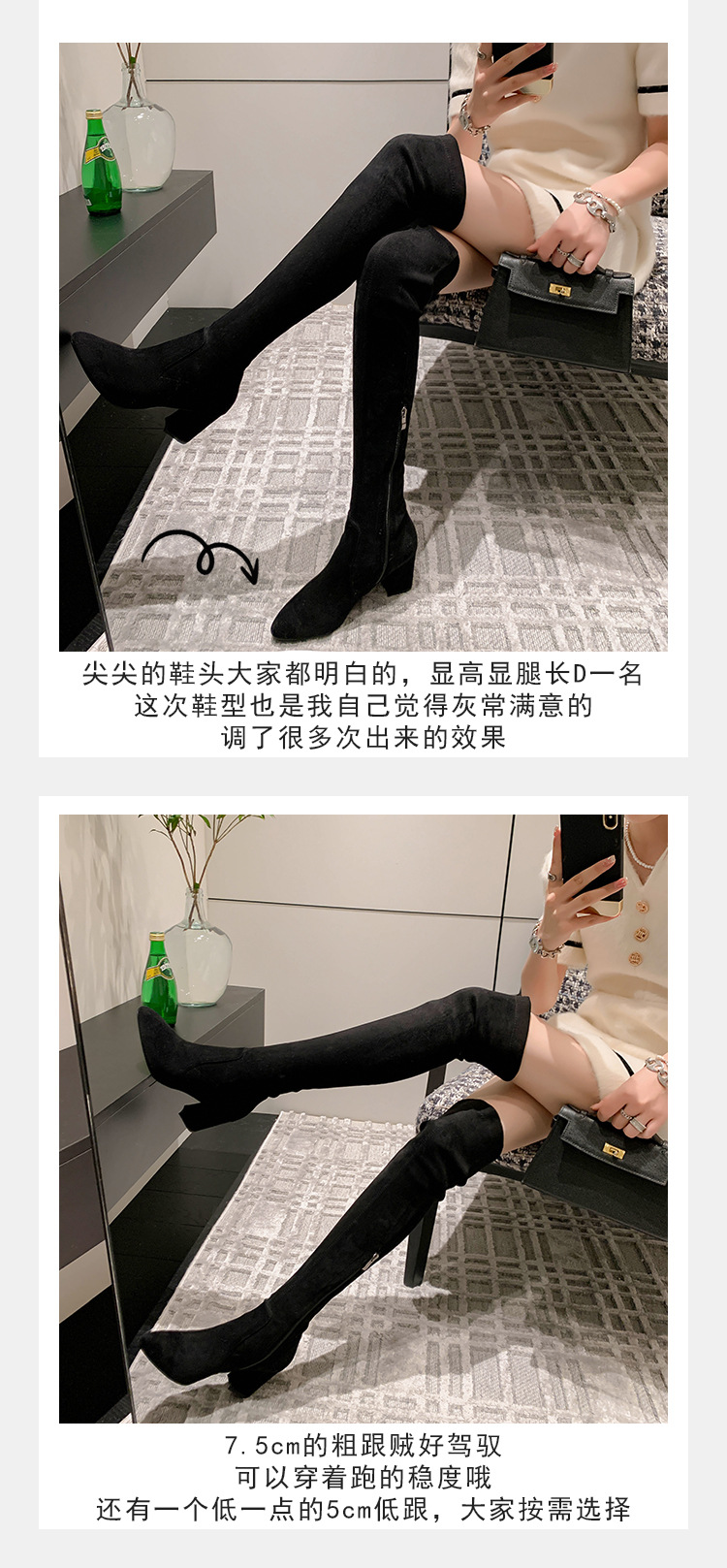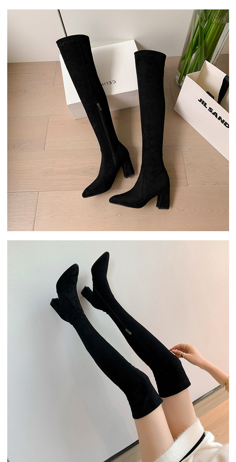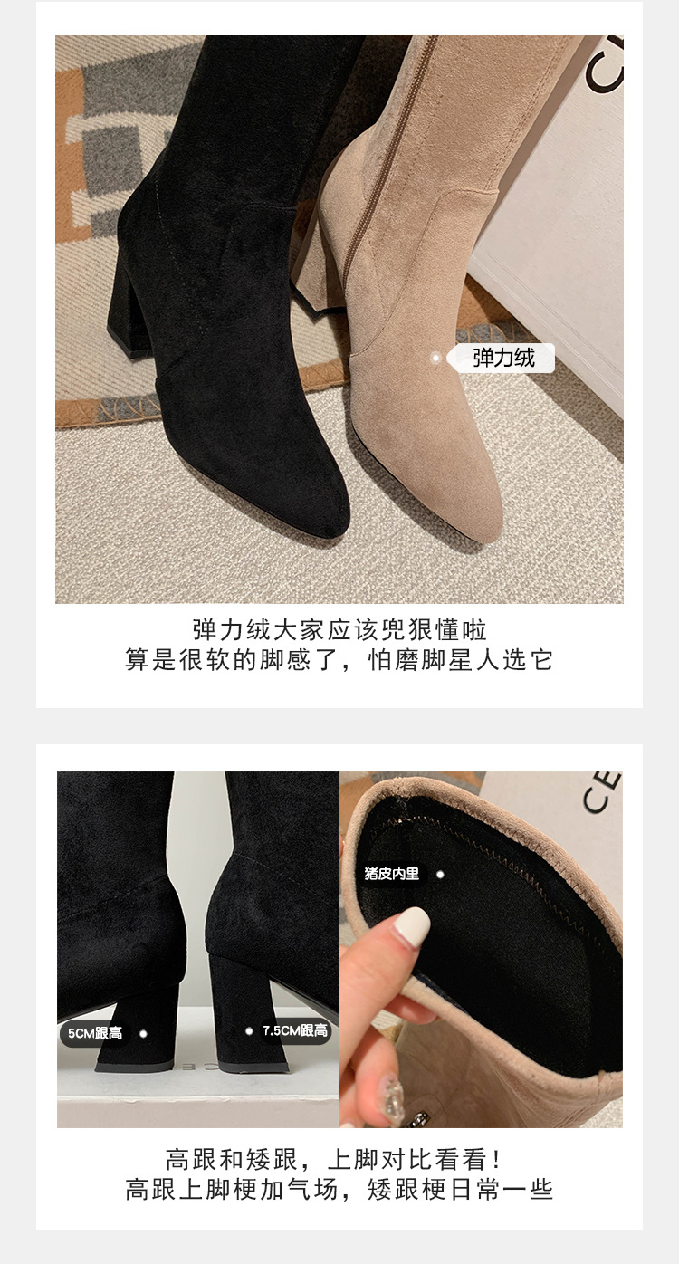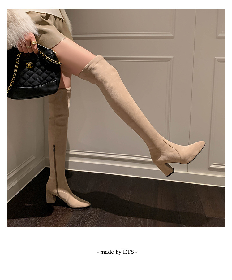 디자이너 Kun 무릎 부츠 여성의 가을과 겨울 새로운 뾰족한 두꺼운 굽 높은 스트레치 무릎 부츠 작은 부츠스토어 가기
