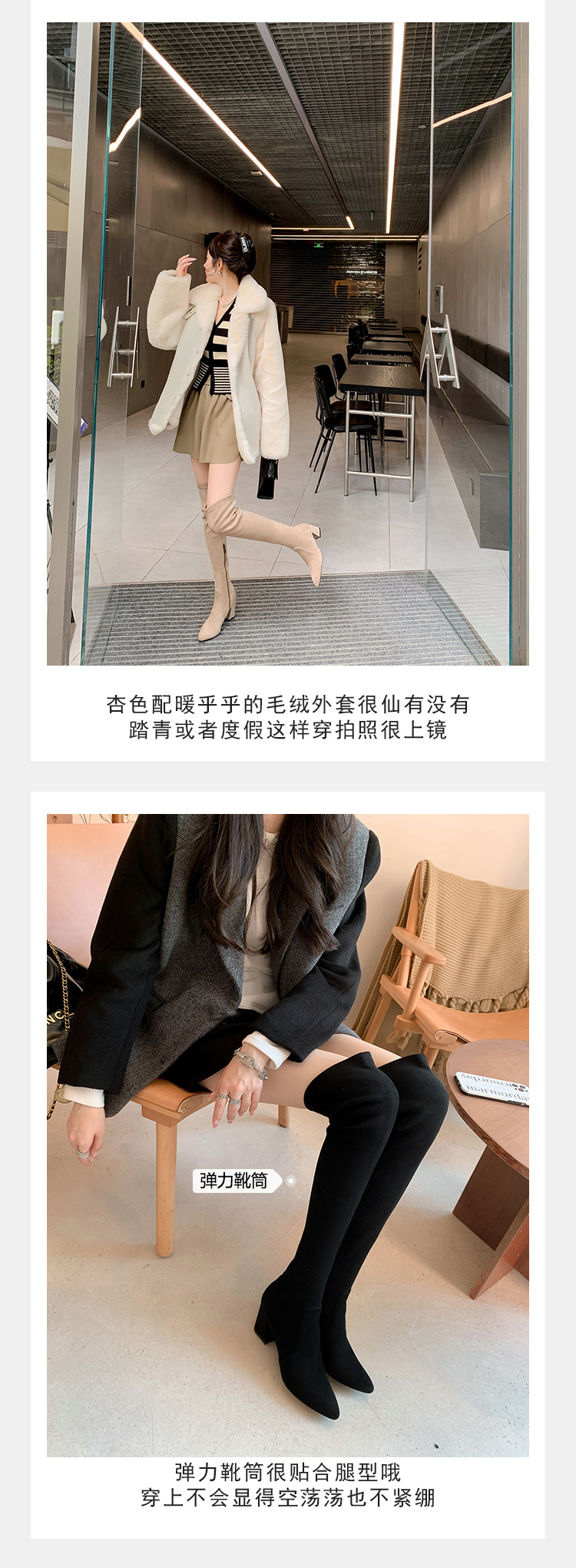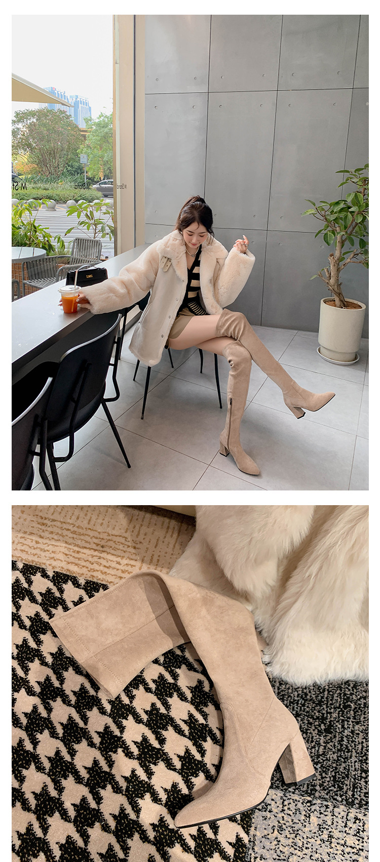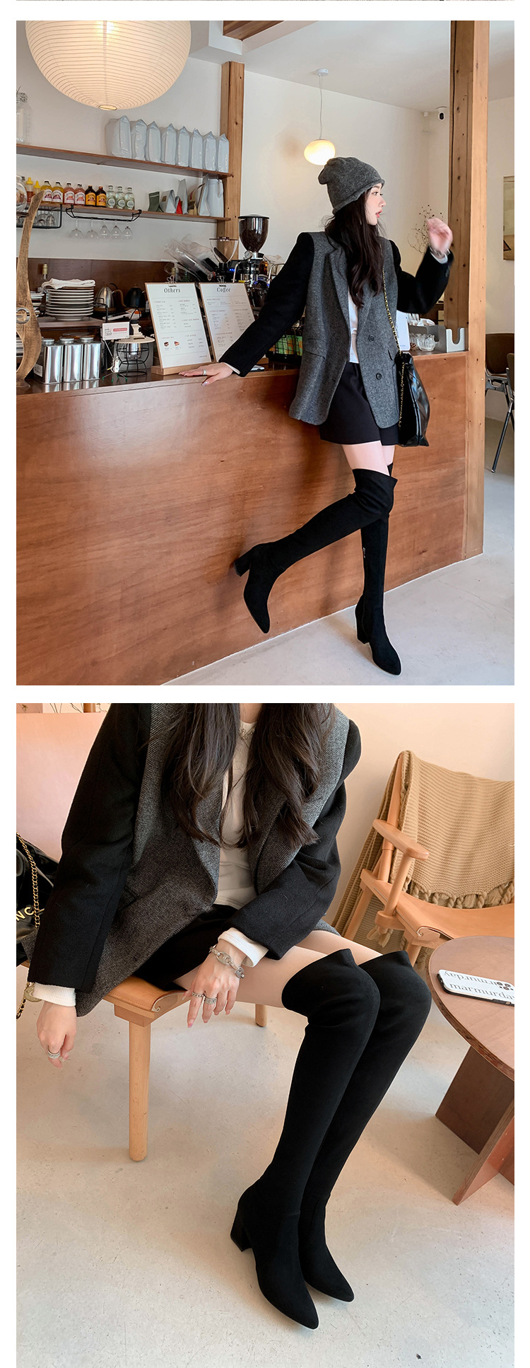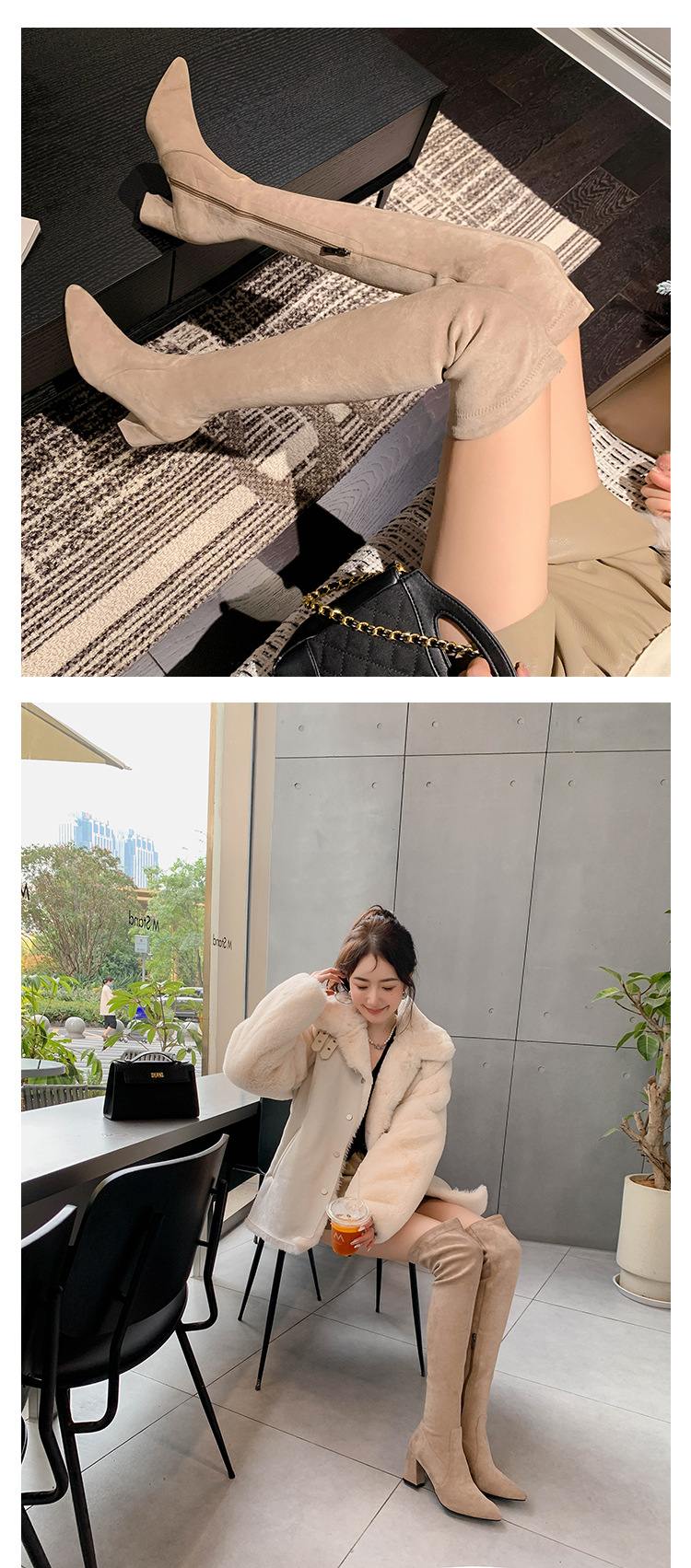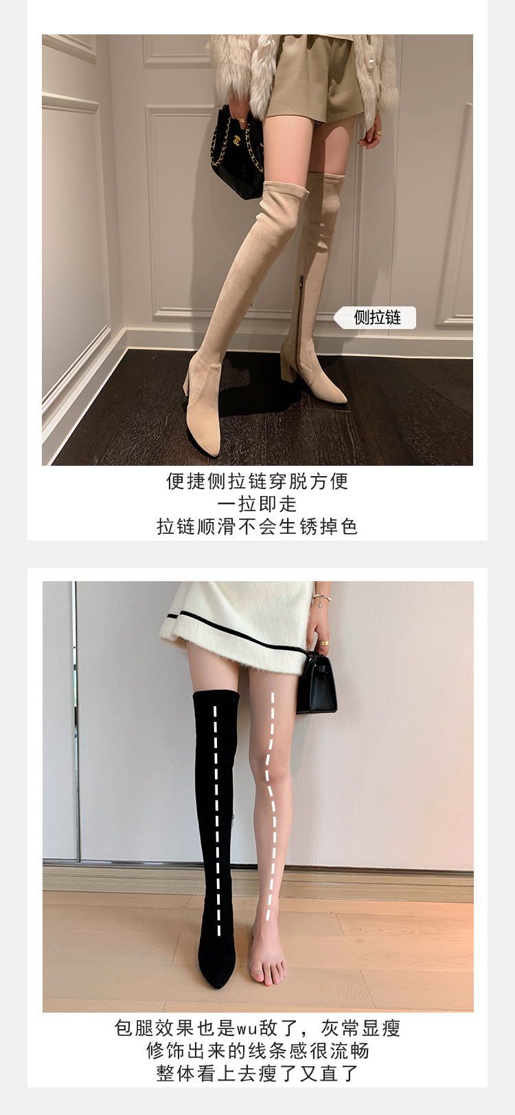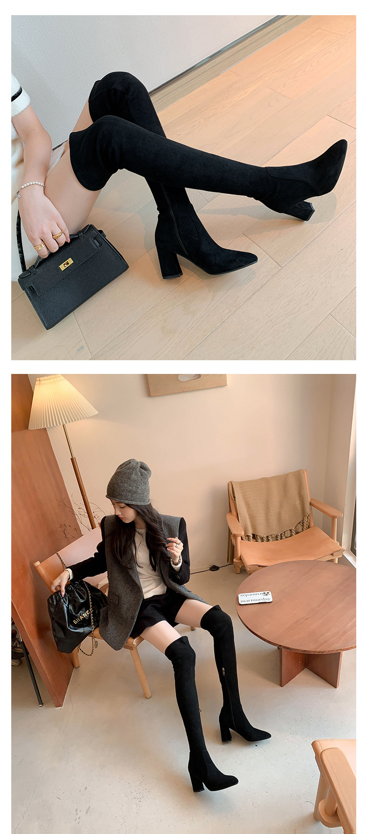 디자이너 Kun 무릎 부츠 여성의 가을과 겨울 새로운 뾰족한 두꺼운 굽 높은 스트레치 무릎 부츠 작은 부츠스토어 가기