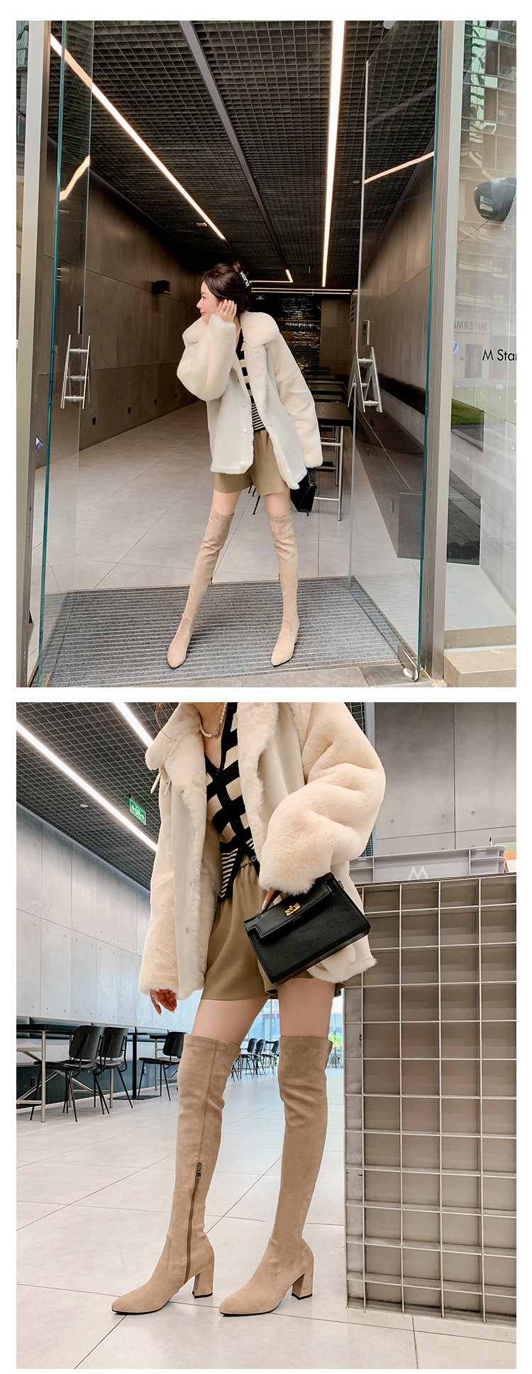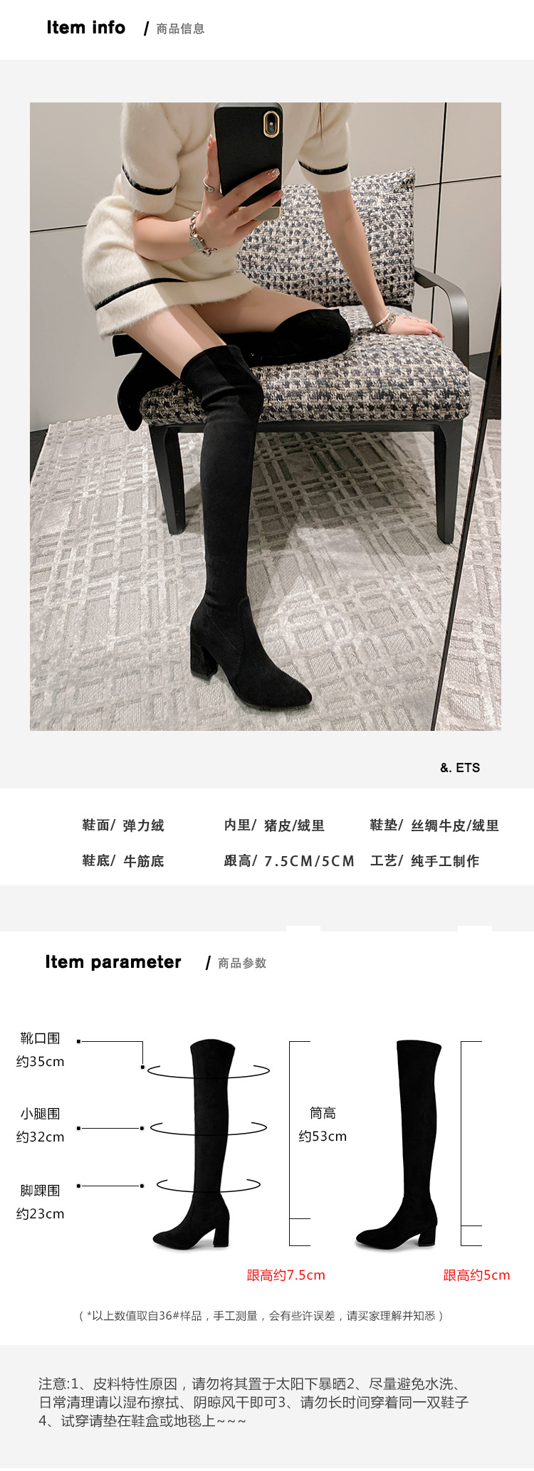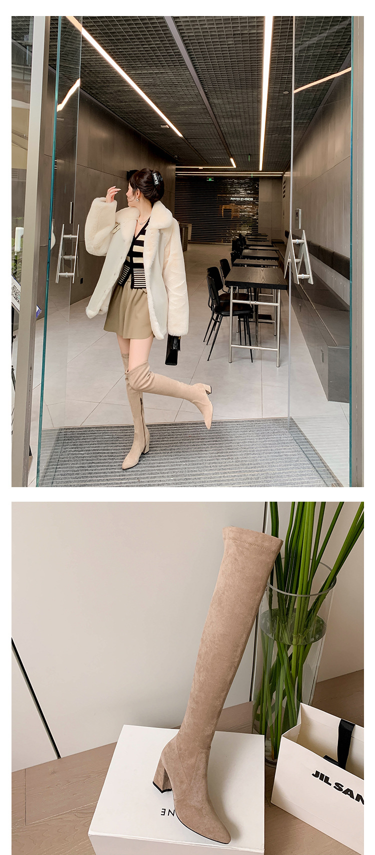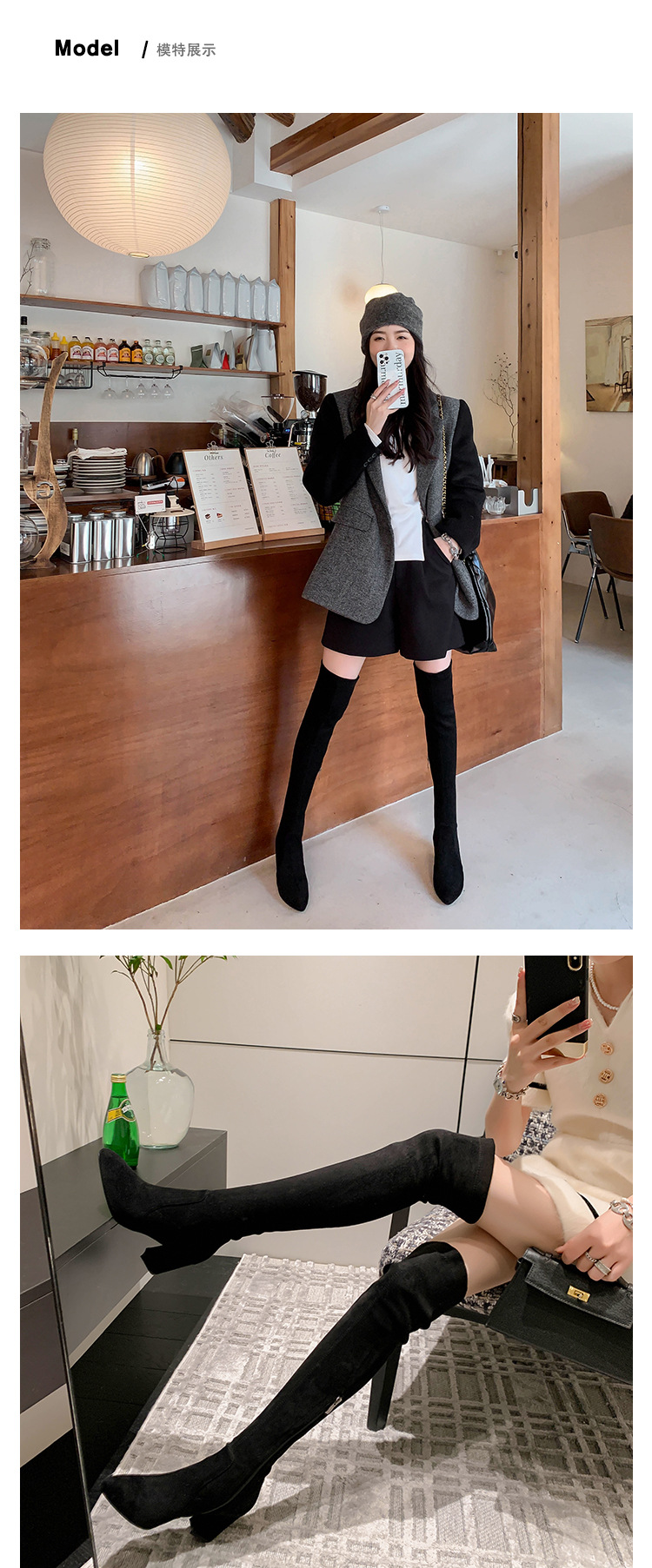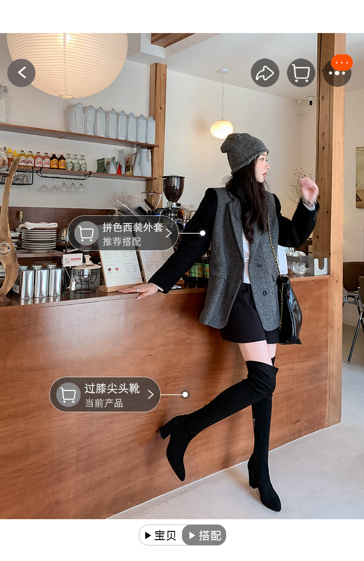 디자이너 Kun 무릎 부츠 여성의 가을과 겨울 새로운 뾰족한 두꺼운 굽 높은 스트레치 무릎 부츠 작은 부츠스토어 가기
